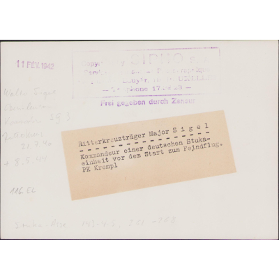 Very nice press photograph in very good condition of Knights Cross winner Major Walter Sigel