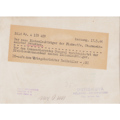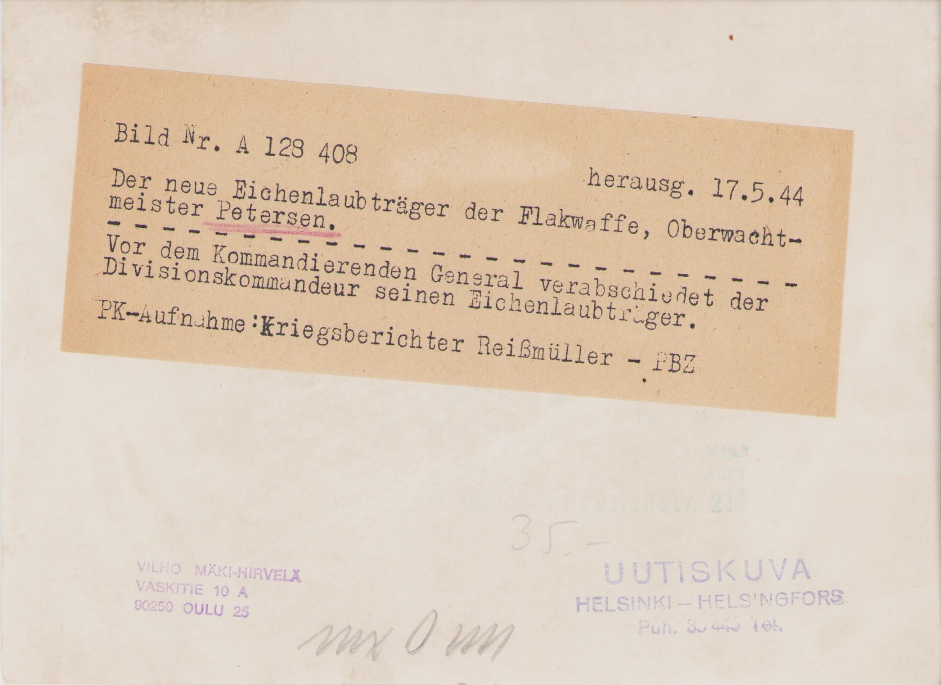 Very nice press photograph in very good condition of Knights Cross winner Oberwachtmeister Fritz Petersen