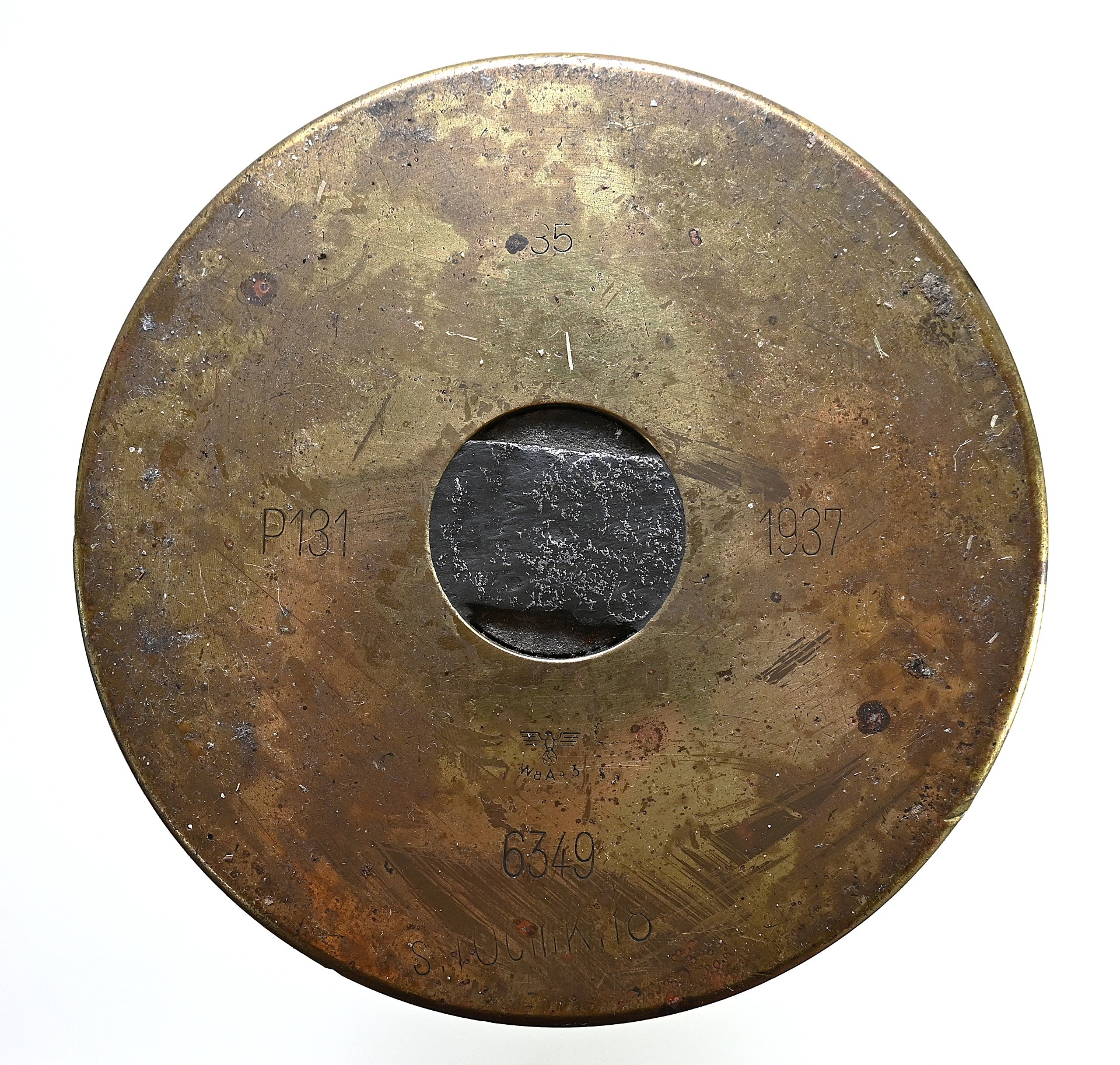 The casing shows overall normal signs of wear. It's rock solid and has no damages. Markings on the bottom are clearly visible. Made in 1937. These were for the 'schwere 10cm Kanone 18' (see last photo'.