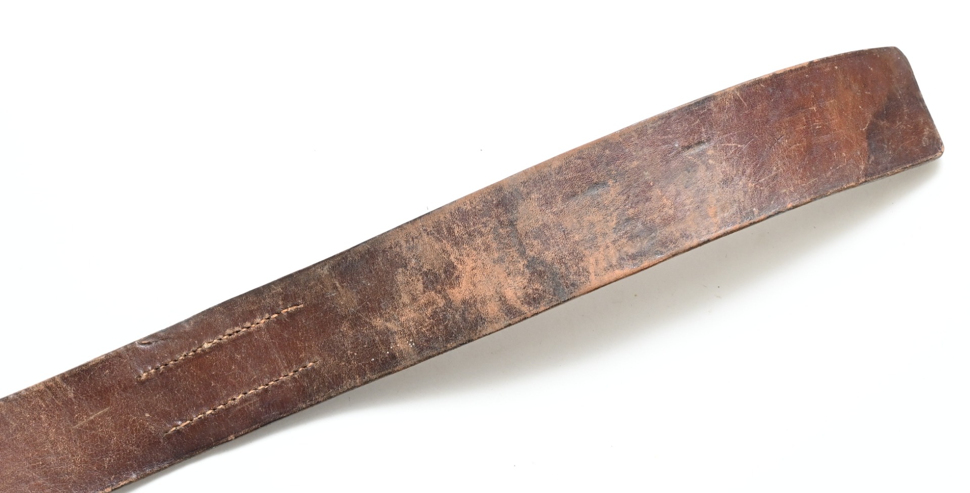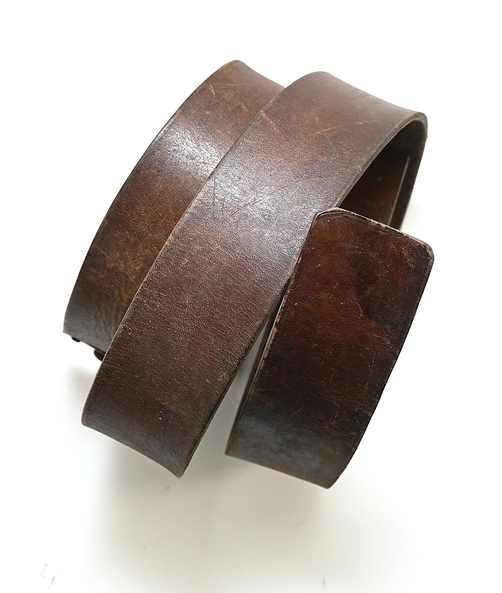 The belt shows overall normal signs of wear. The leather is supple and solid. The length of the belt is approx 100cms.