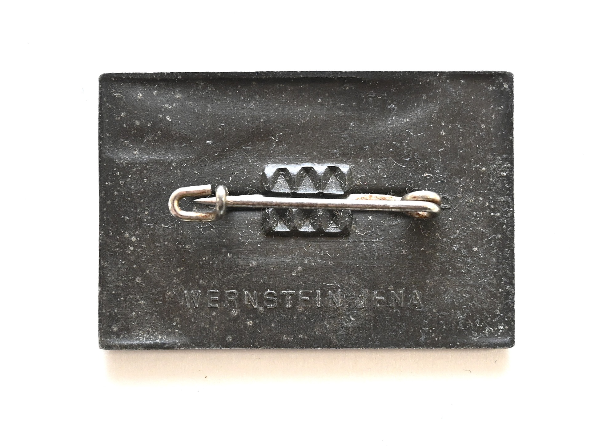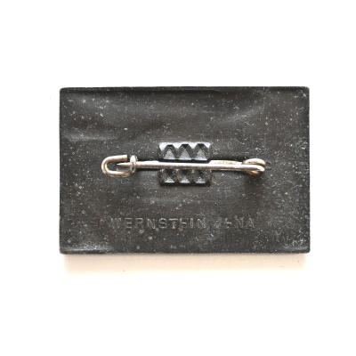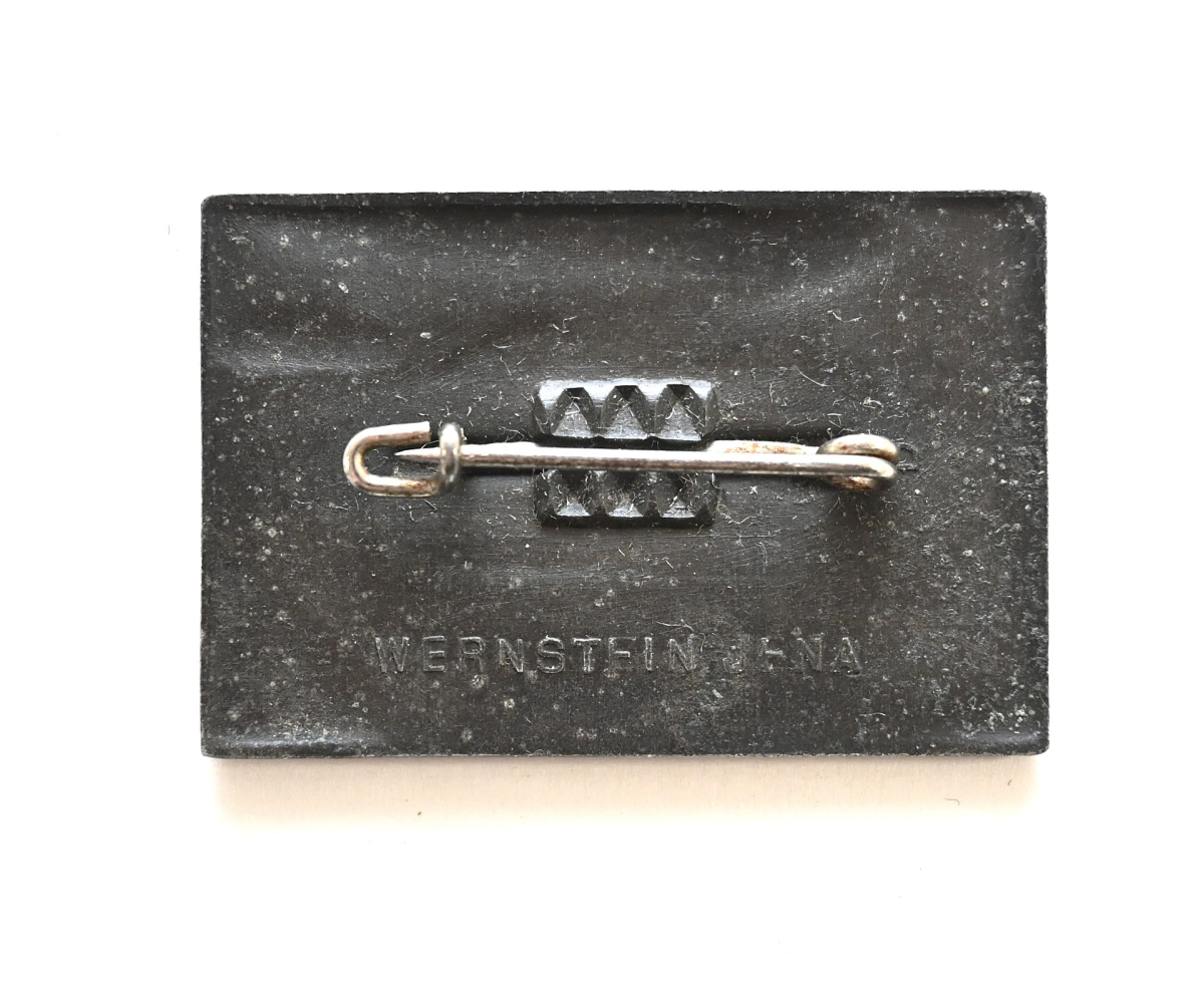 The badge shows overall normal signs of wear. Complete with working safety pin on the back. Marked by the maker 'Wernstein' from Jena.