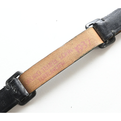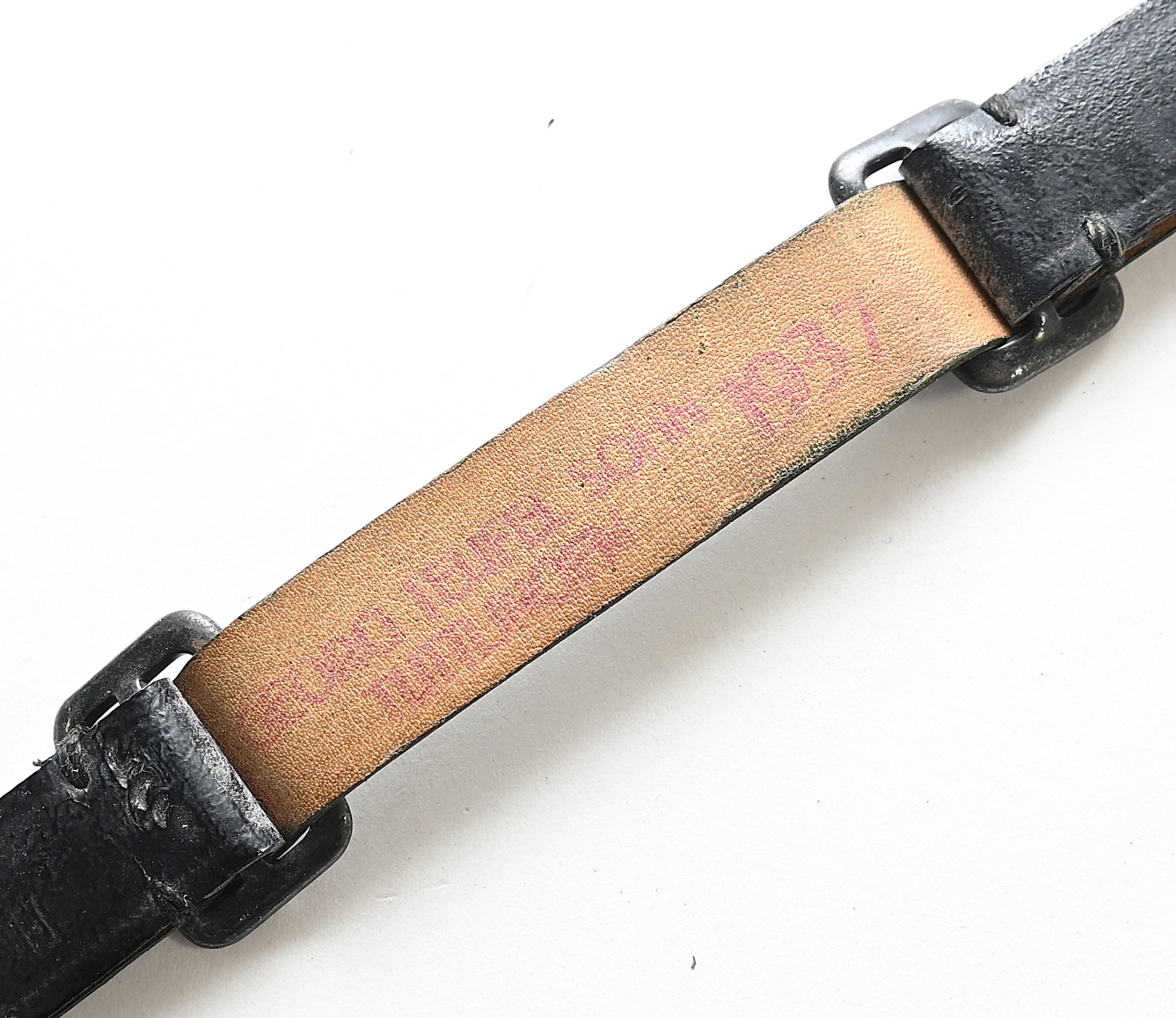 The strap shows overall normal signs of wear. The total length (now) is approx. 33cms. Nicely marked by the maker and dated 1937.