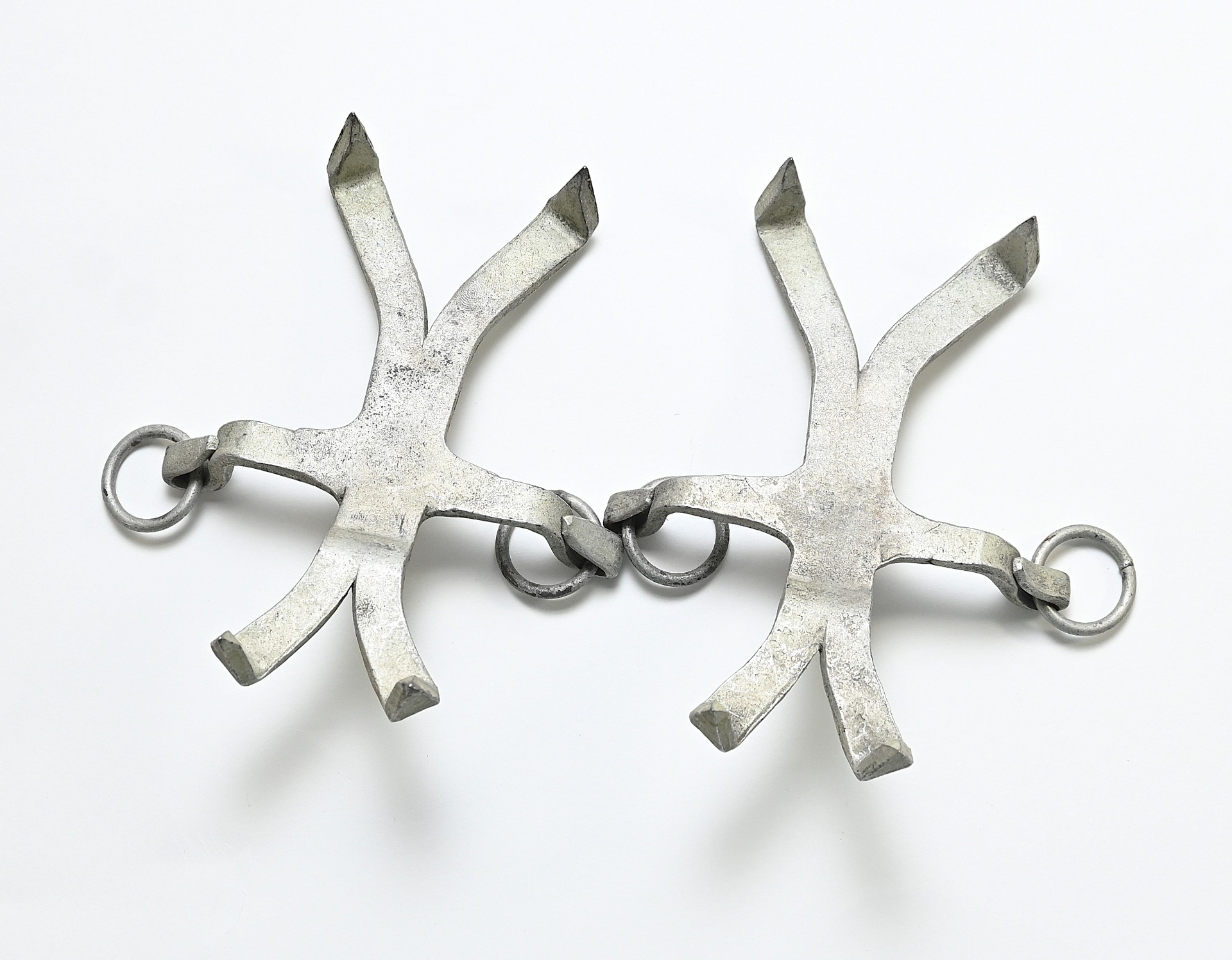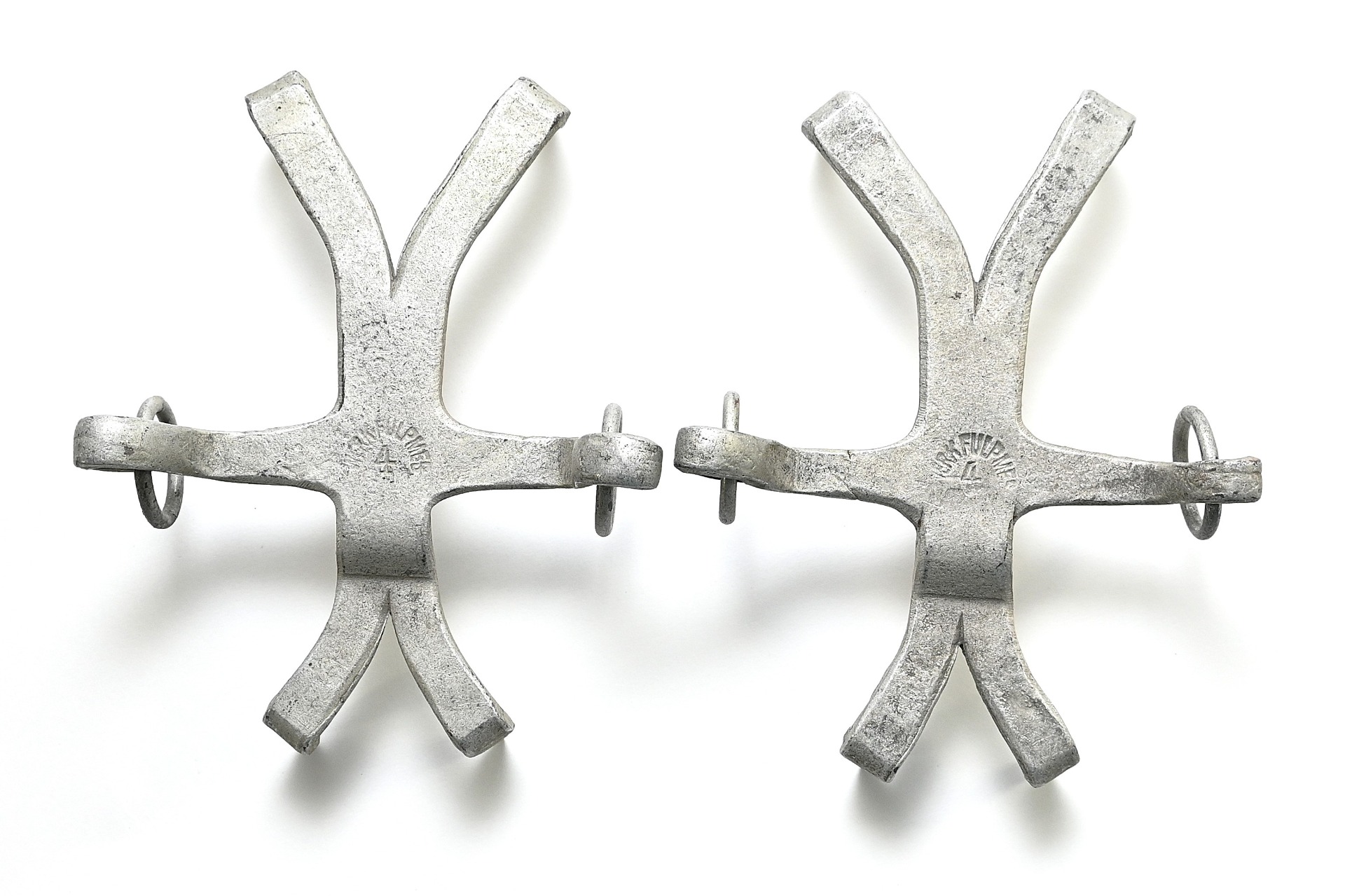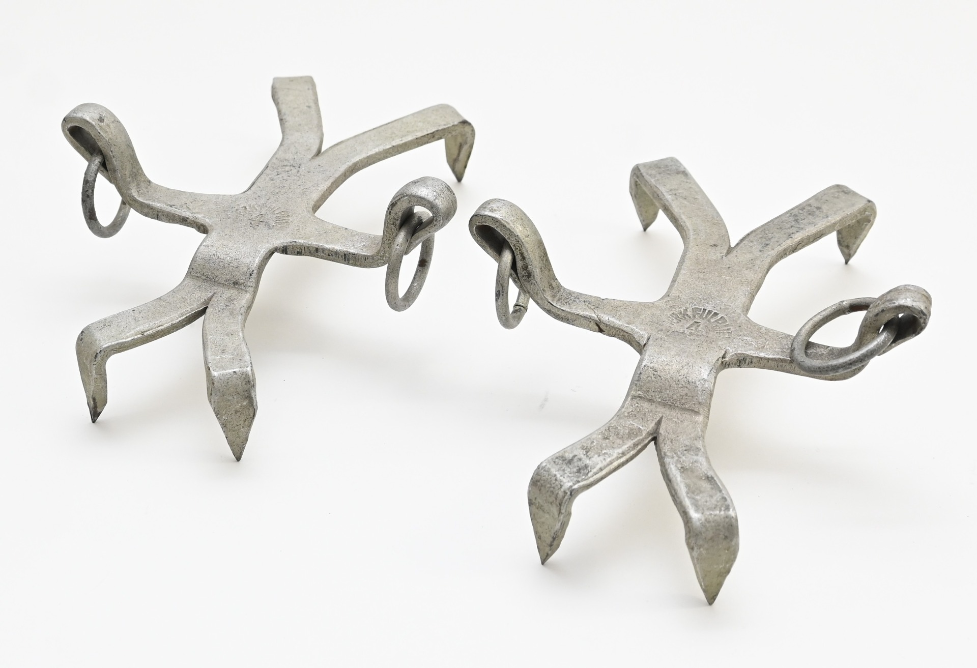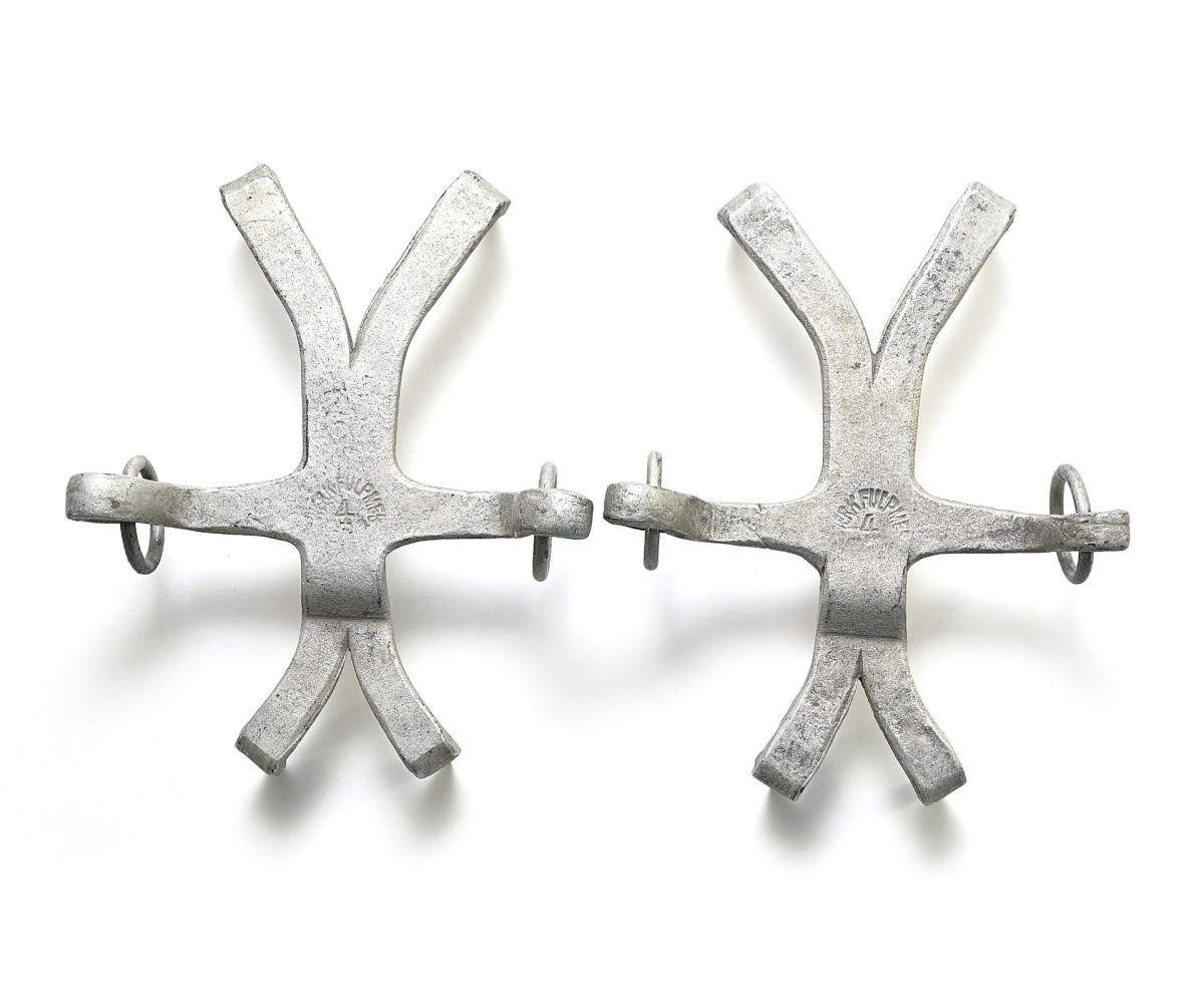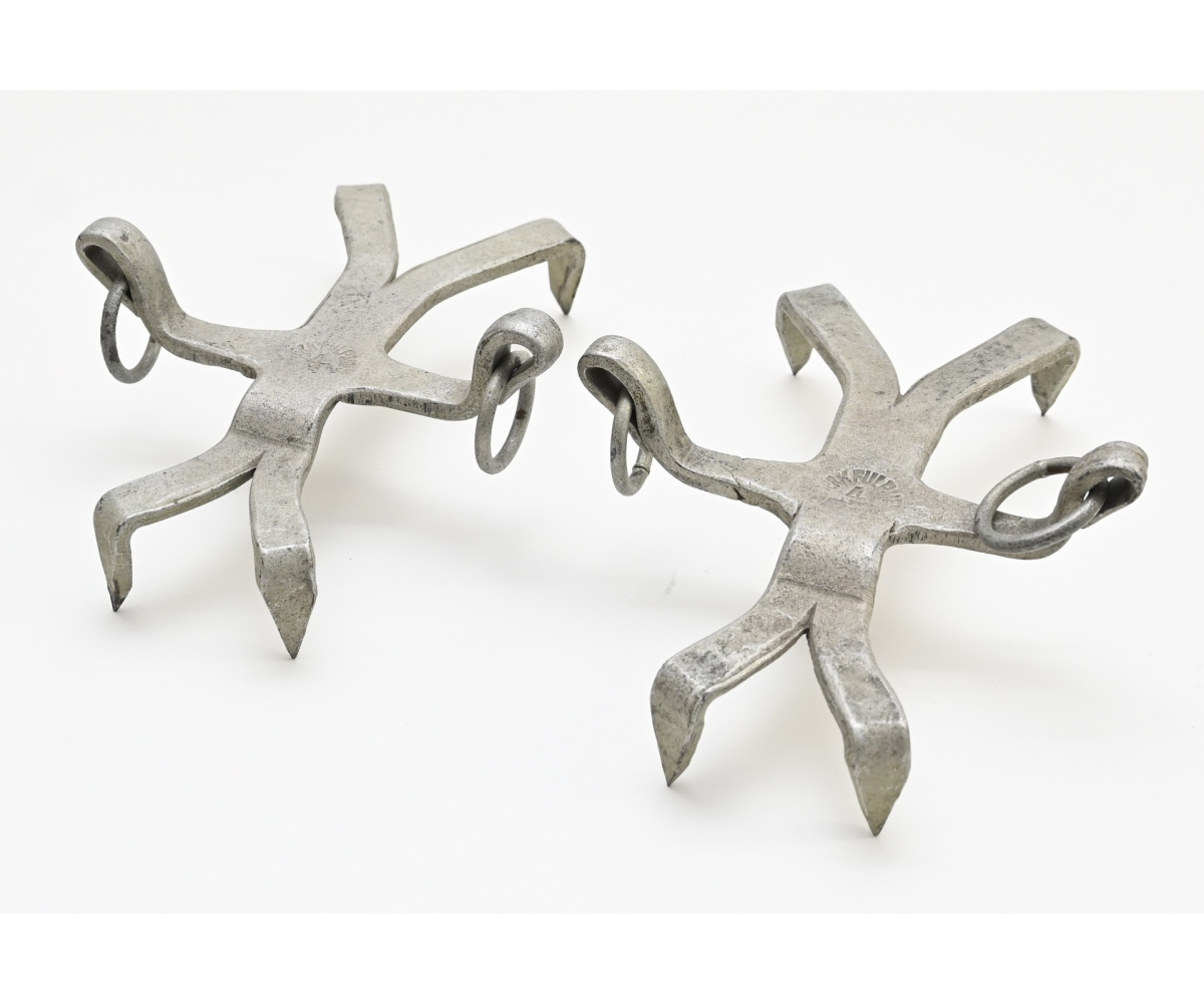 The set shows overall normal signs of wear. Nicely marked with 'Werk Fulpmes 4'. These shorter ones were used on grass slopes for extra gripp and were already in use by mountain troops in the First World War.