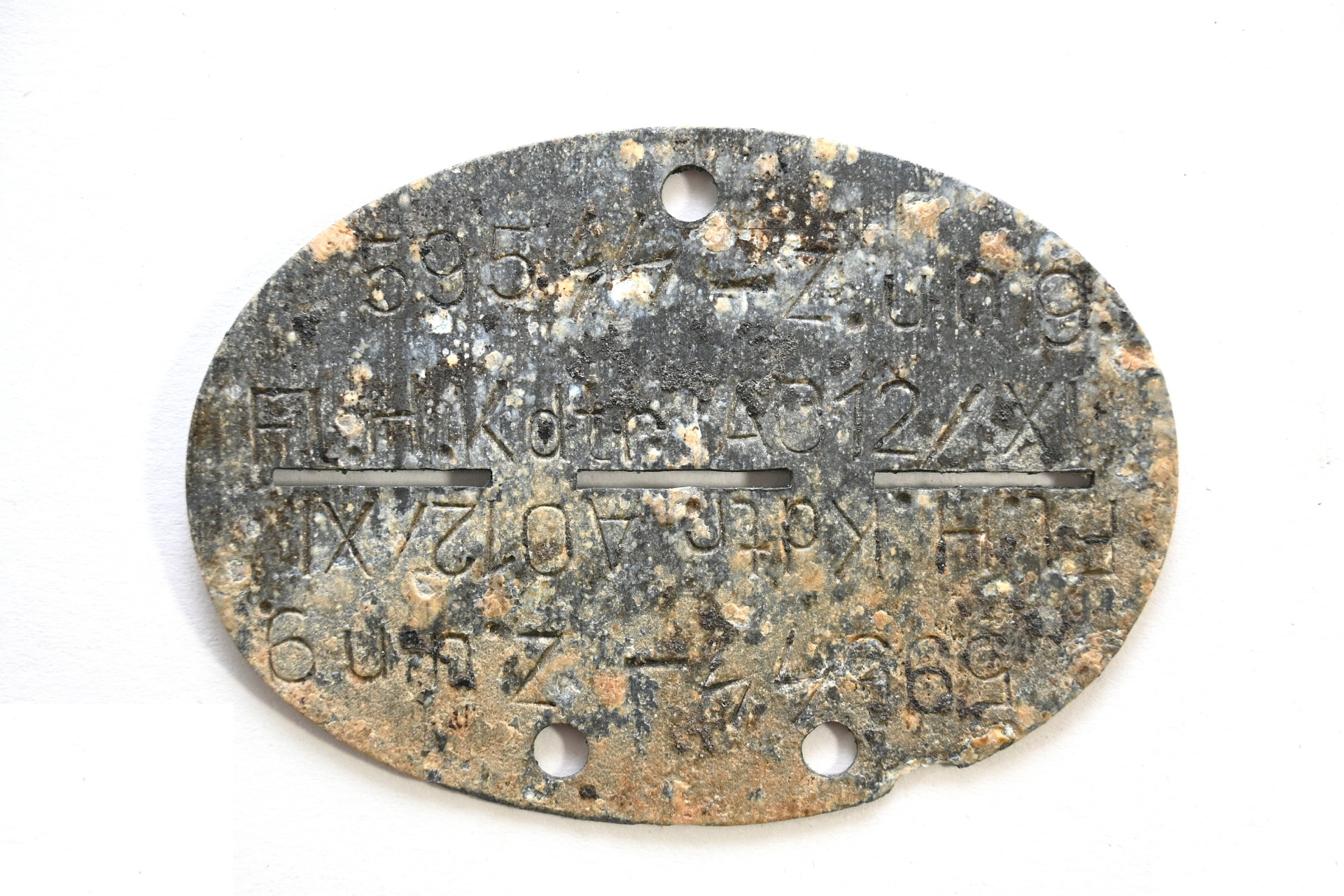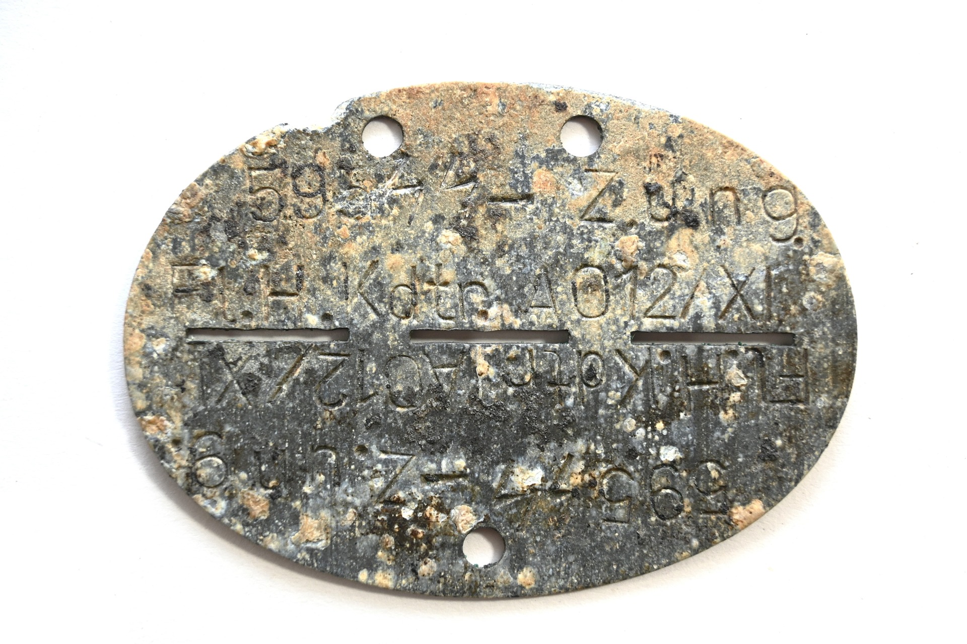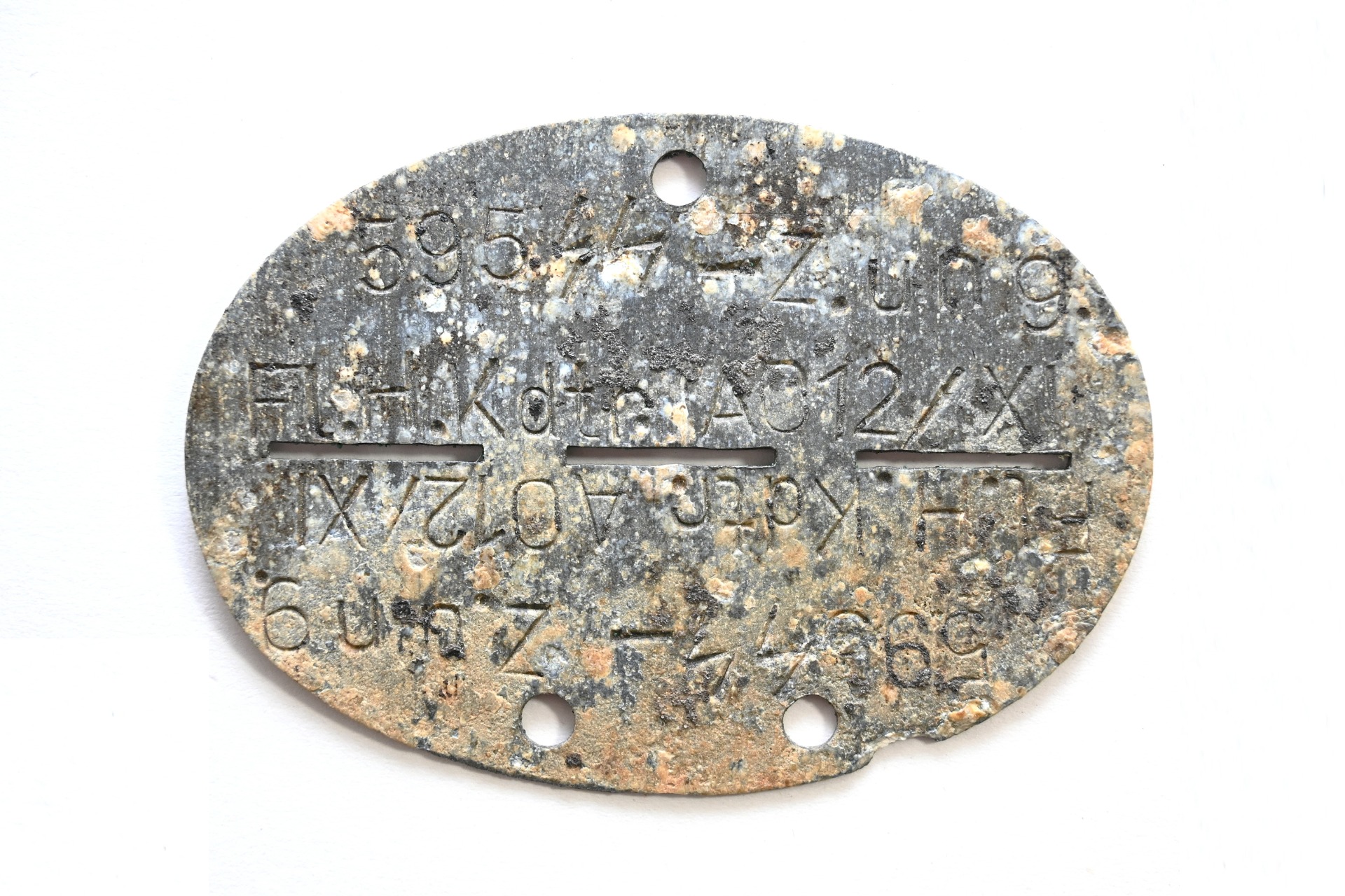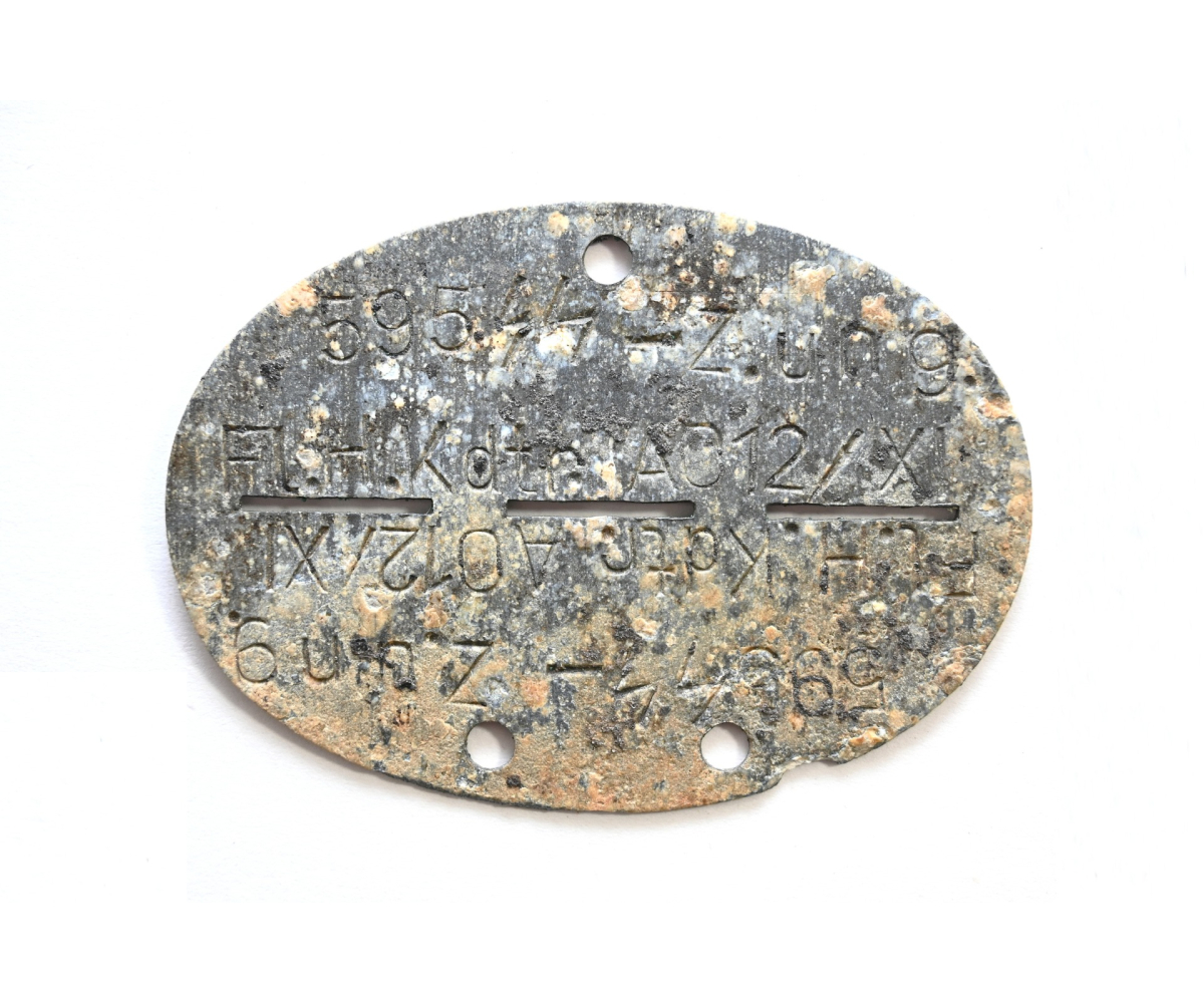 The tag or 'Erkennungsmarke' shows overall signs of wear. It belonged to a SS-Zöglinge or Jugend/youth member who operated on the Fliegerhorst Kommandantur AO12/XI. These tags were issued to young recruits who were deployed in Luftwaffe facilities and/or as a Luftwaffe Flakhelfer and were too young for the Waffen-ss. As soon as they were old enough, they were to be transferred to SS units.