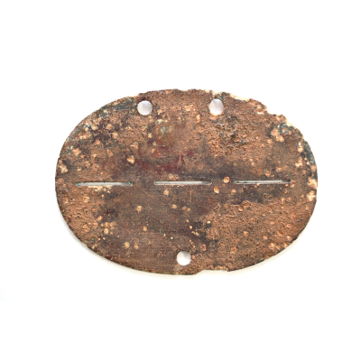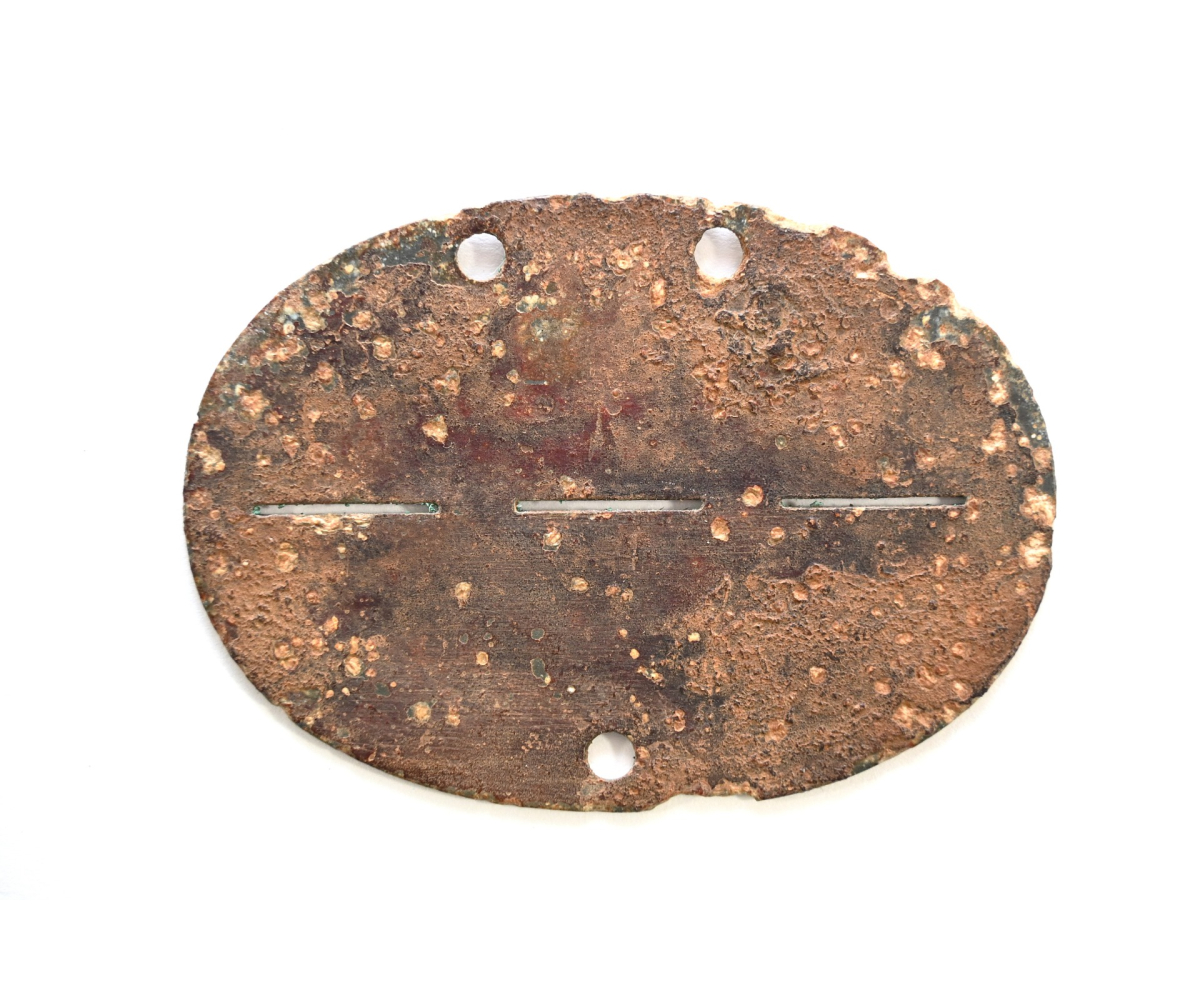 Zinc Wehrmacht Grenadier related ID-tag in worn condition.