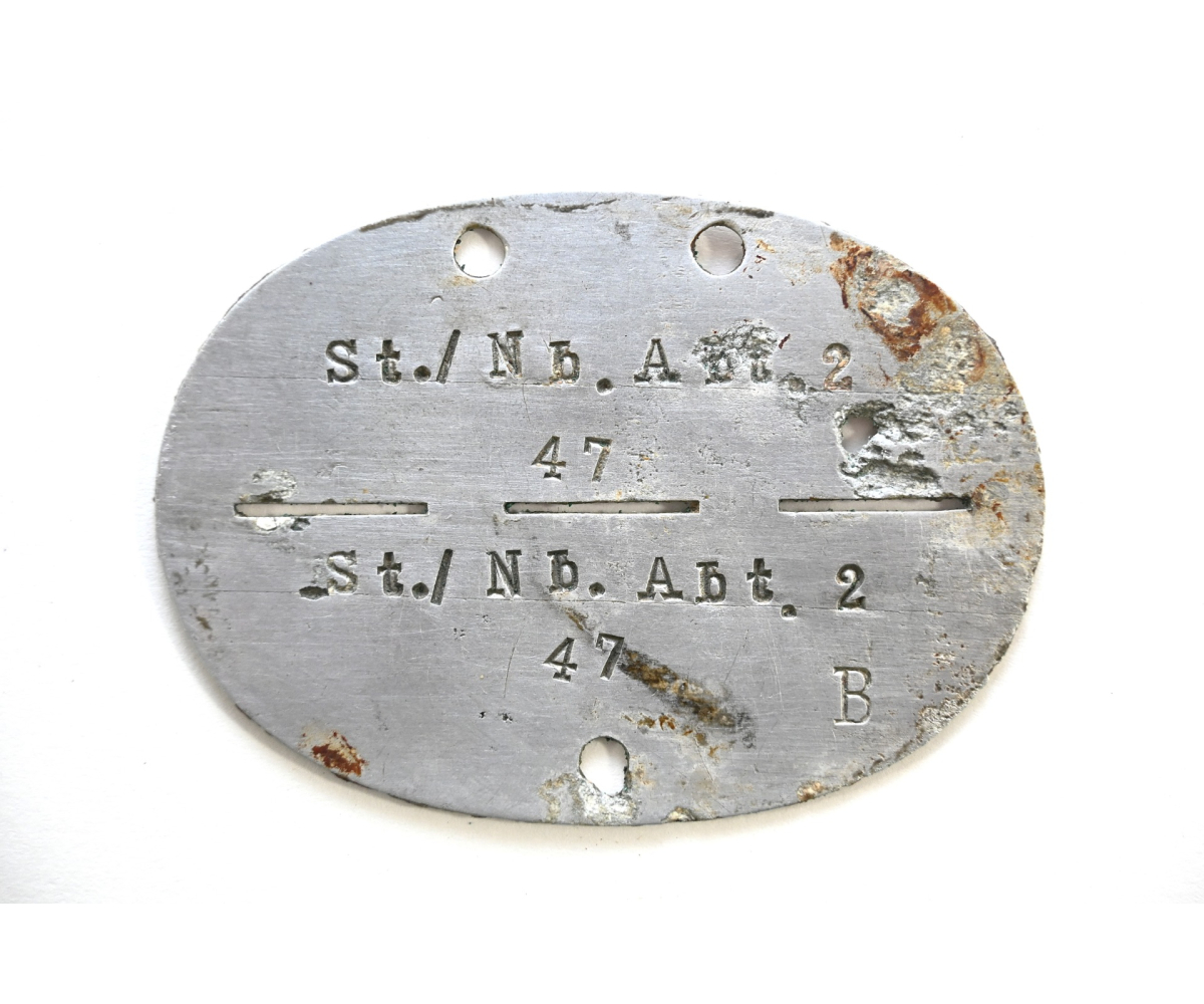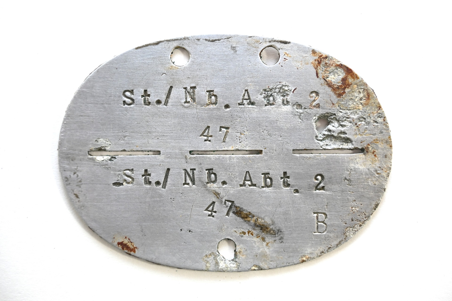 The tag or 'Erkennungsmarke' shows overall signs of wear. It belonged to a soldier/nco who served within the Stab/Nebel Abteilung 2. The abteilung was formed in 1935.