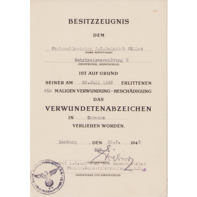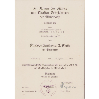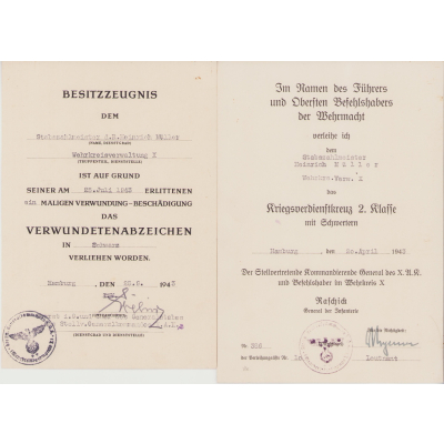 Very nice set of Wehrkreisverwalung X related award documents in used, but very good condition.