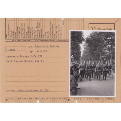 The photo was taken by Professor Buchner of the 7.Infanterie-Division. The card measures 15cm*21cm. On the back there the writting reads 'WK VII- Reihe 1 - Bildstelle Ic'.