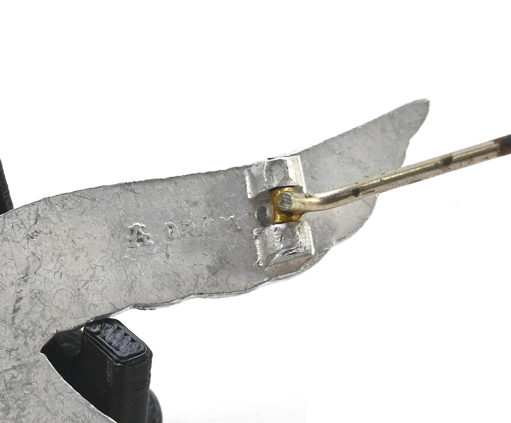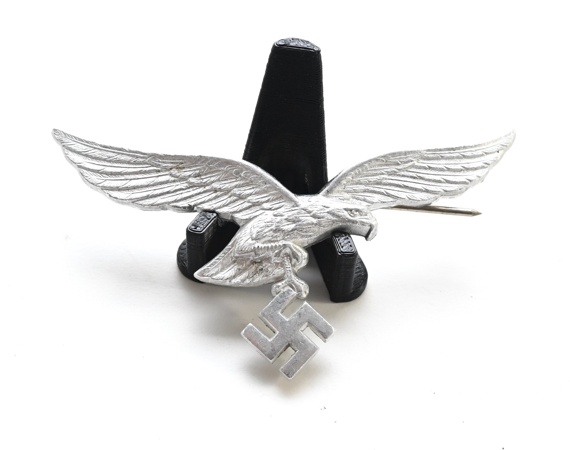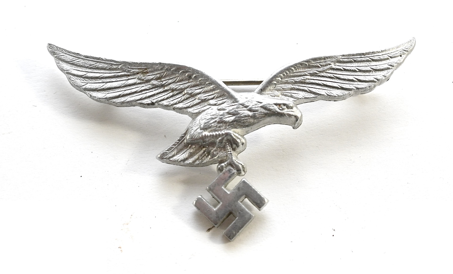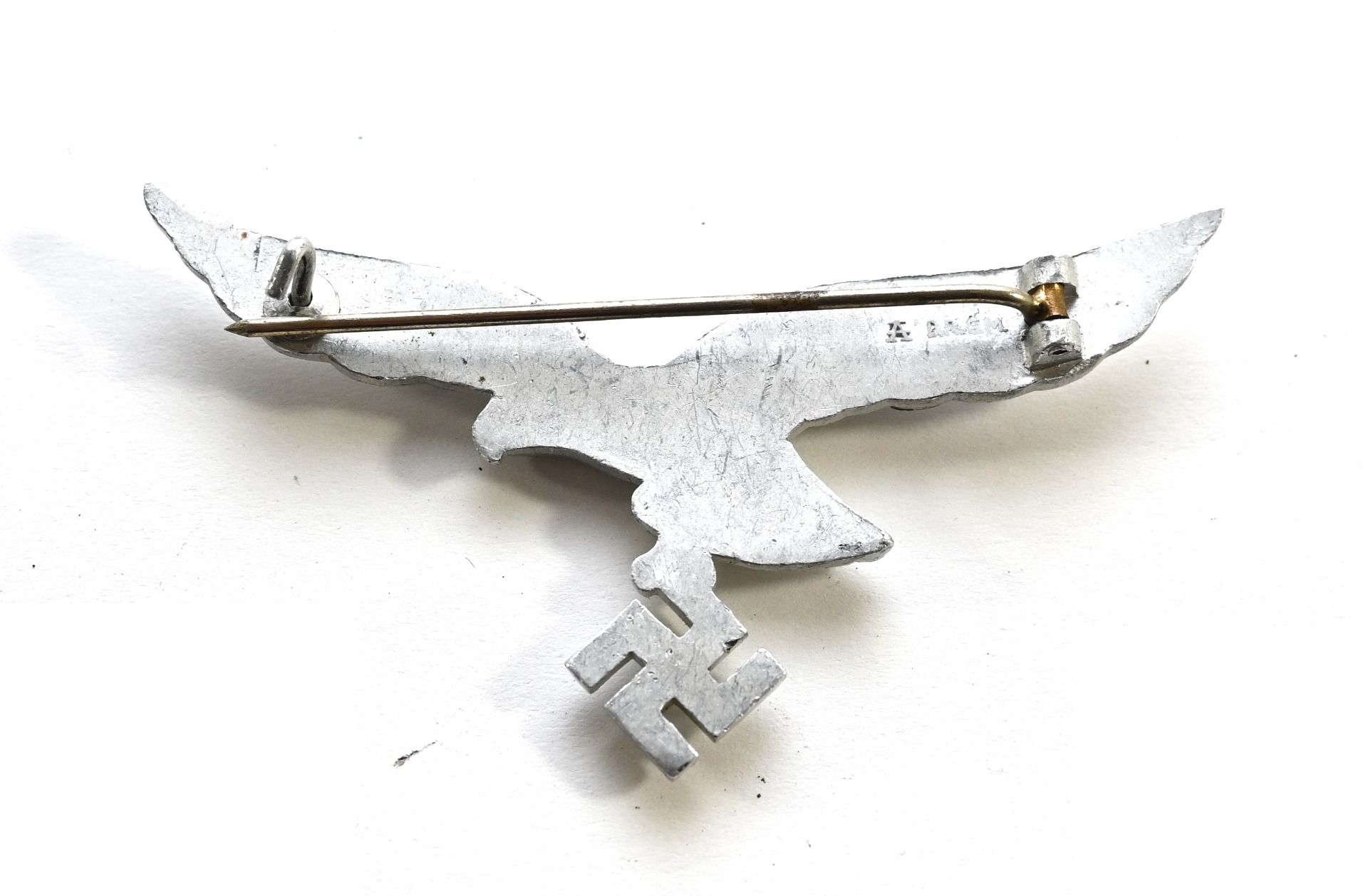 All of it's finish is present and complete with pin and catch on the back. The catch is slightly curved upwards. The breast eagle is 'D.R.G.M' and maker marked on the back.