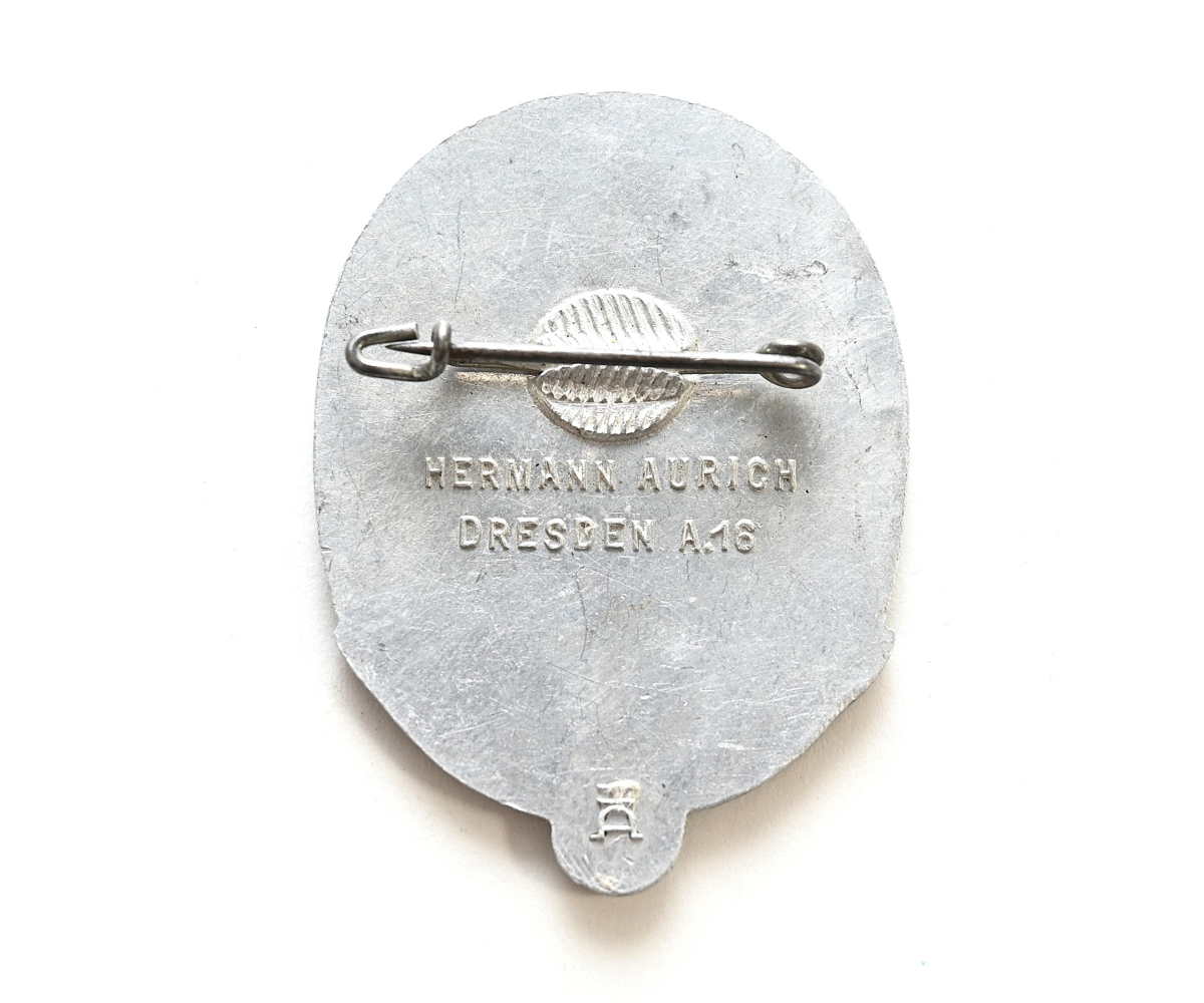 The badge shows overall normal signs of wear. Nicely maker marked by 'Hermann Aurich' from 'Dresden'.