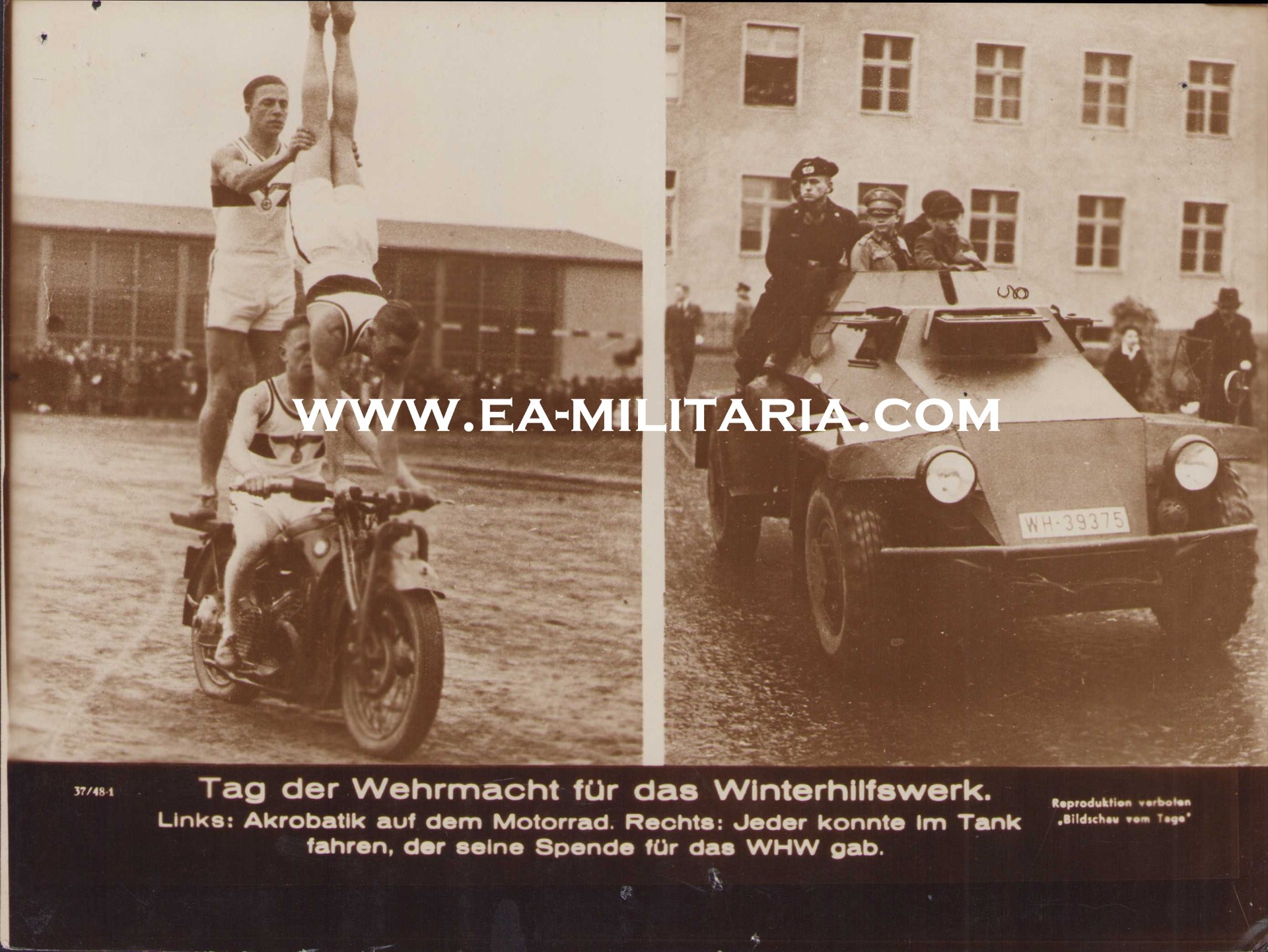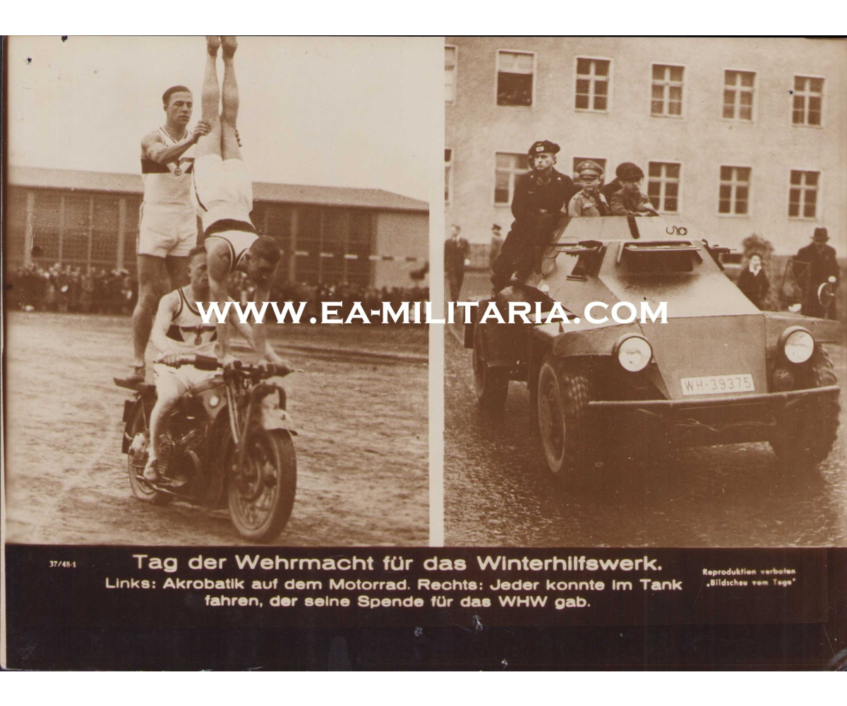 Very nice Tag der Wehrmacht für das Winterhilfswerk related press photo in used, but good condition.