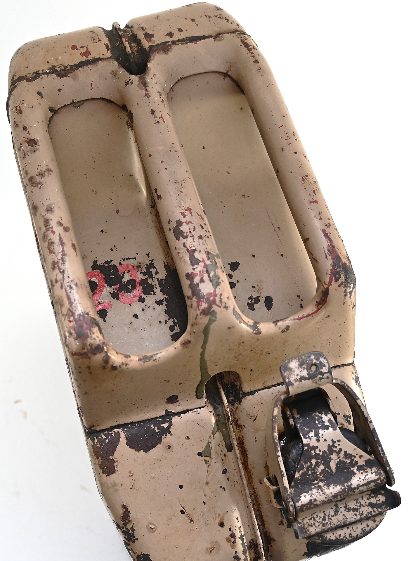 Very nice tan colored Wehrmacht issued jerrycan in used, but well preserved condition.
