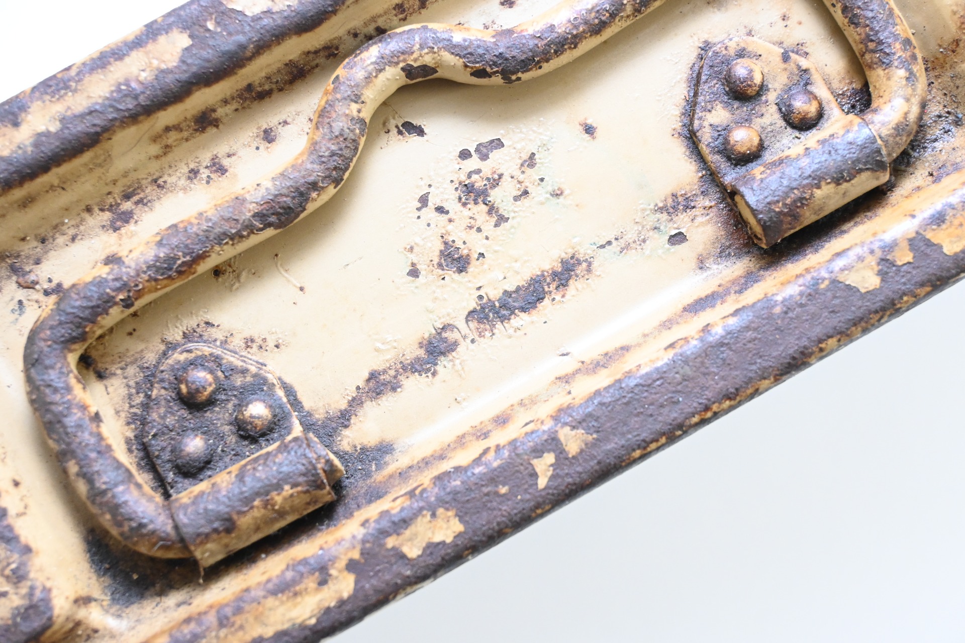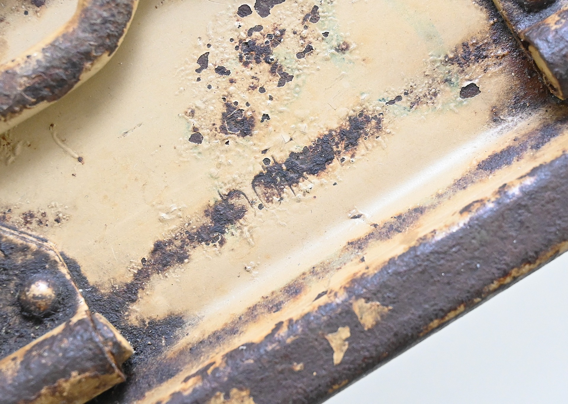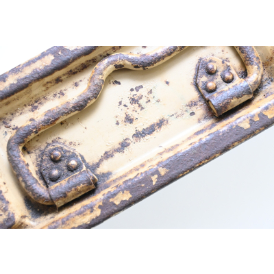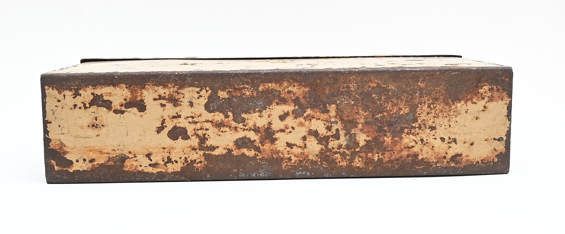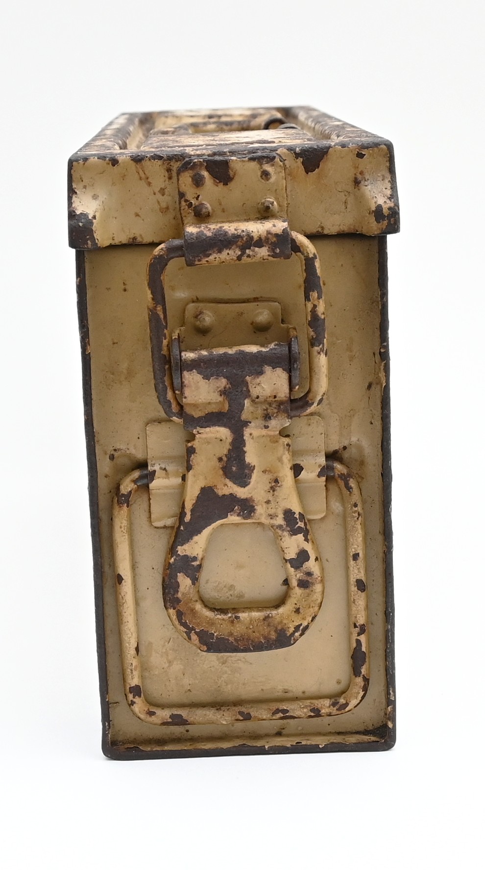 The box shows overall normal signs of wear. 85% Of its original color is still present. Marked on each side with 'Patr.Kast.41.f.MG' and a 3-letter 'bdk' code on the lid.