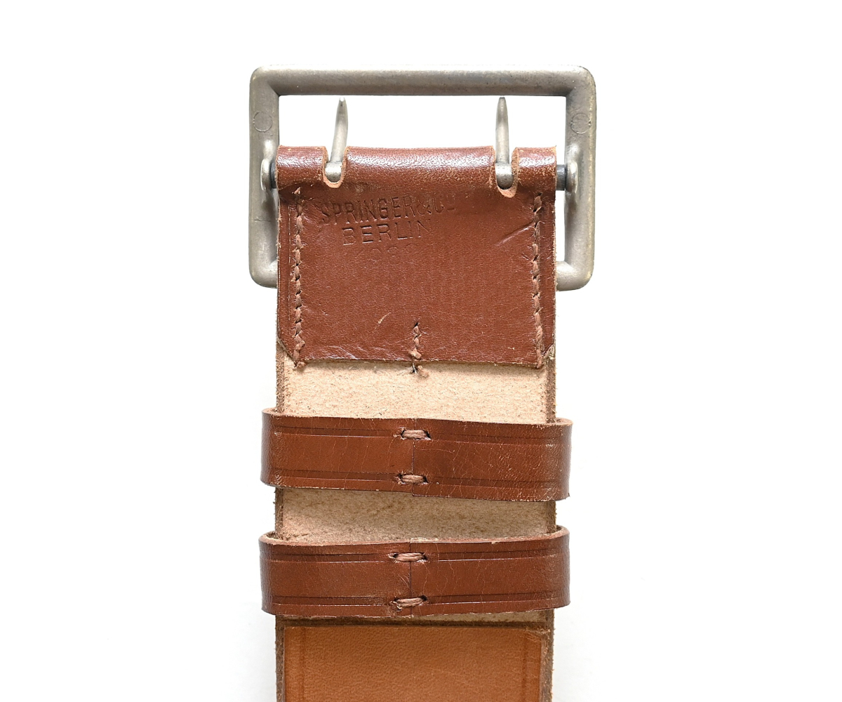 The belt shows minor signs of wear. The leather is supple and solid. The belt comes with its beltloops. Nicely marked by the maker 'Springer & Co' form Berlin and dated 1938. This high-quality example can be used for either a Heer/Luftwaffe- or NSDAP officers/führer display.