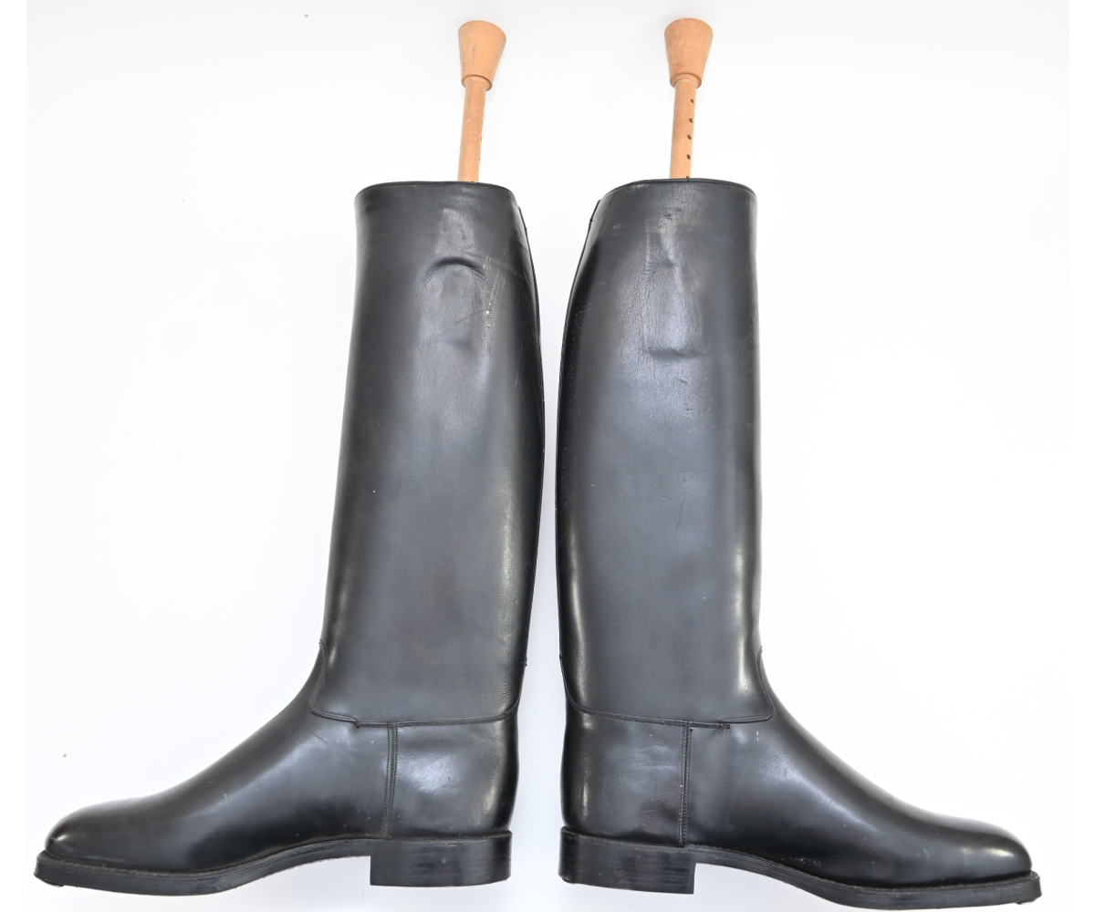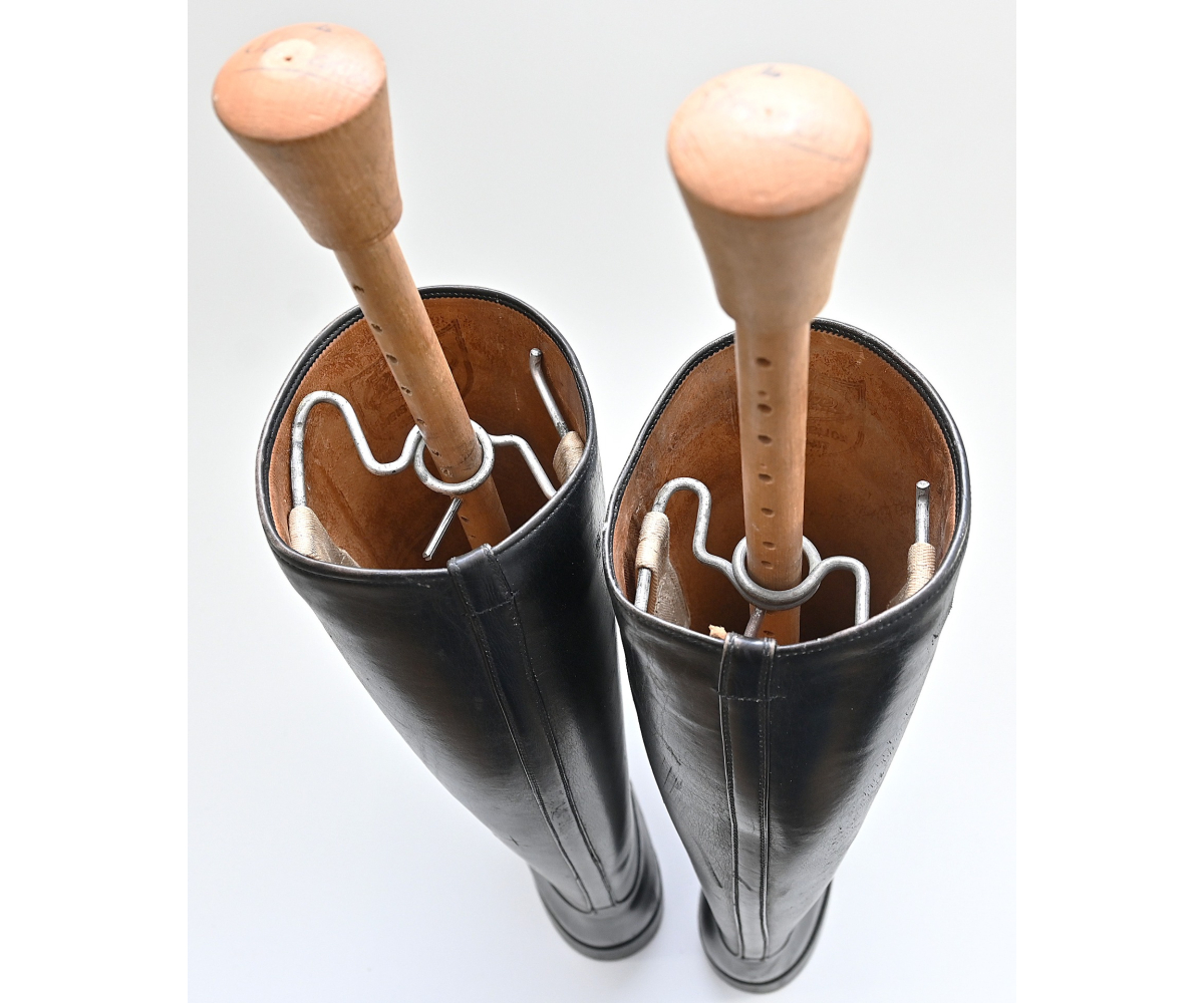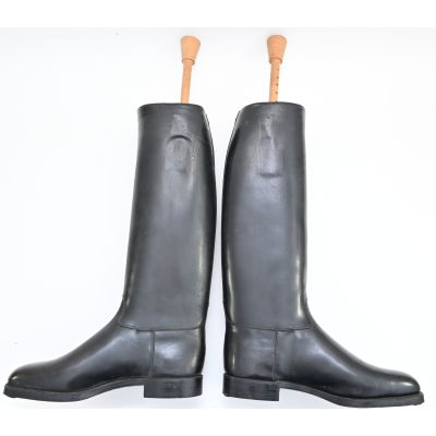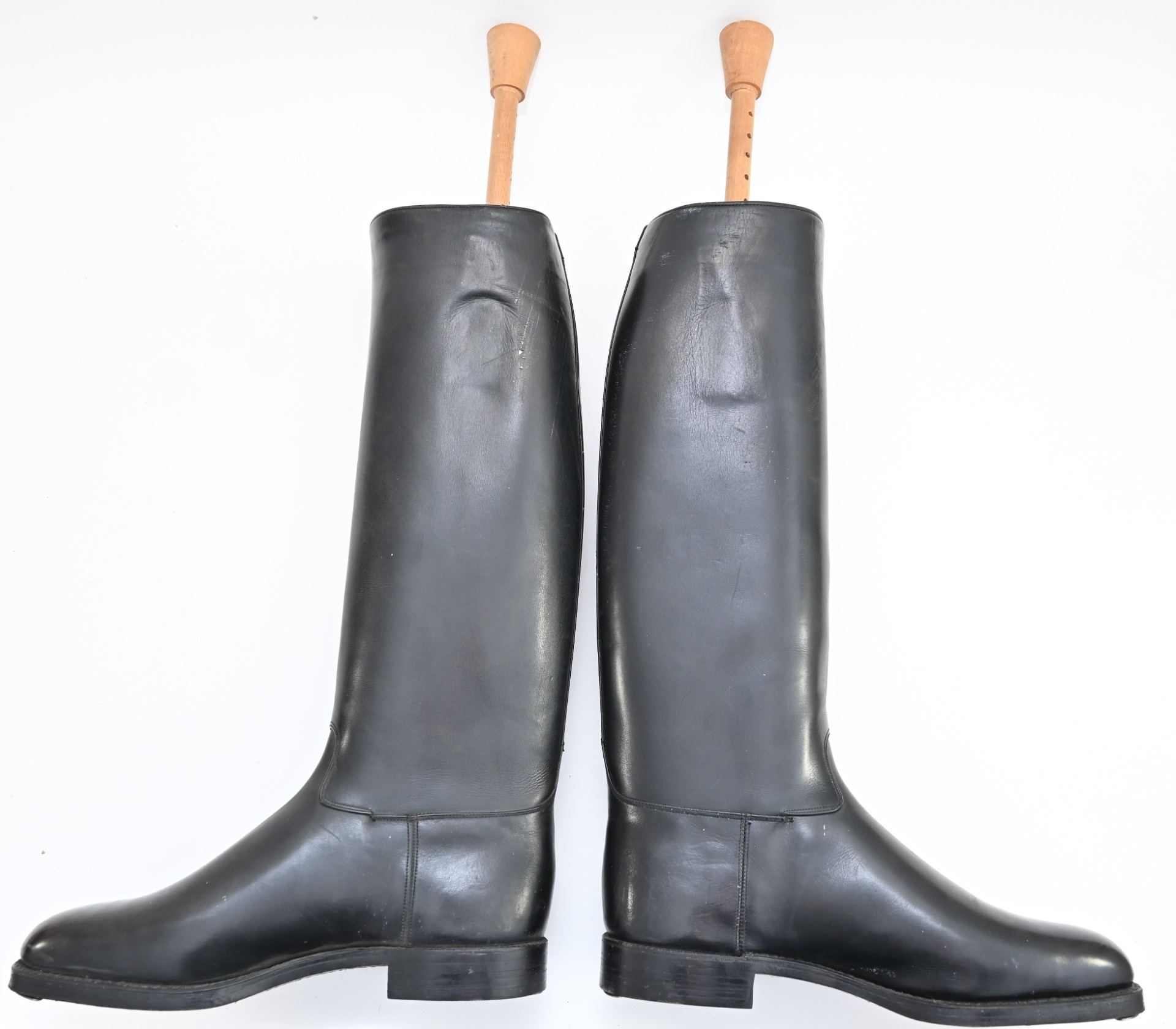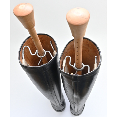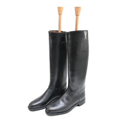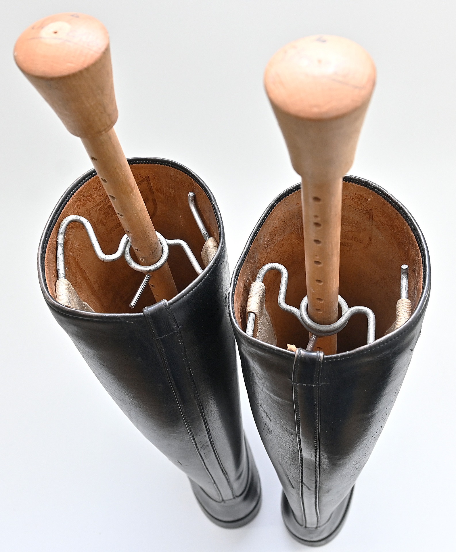 A nice pair of private purchased black leather Wehrmacht officer's boots with wooden spanners in excellent condition.