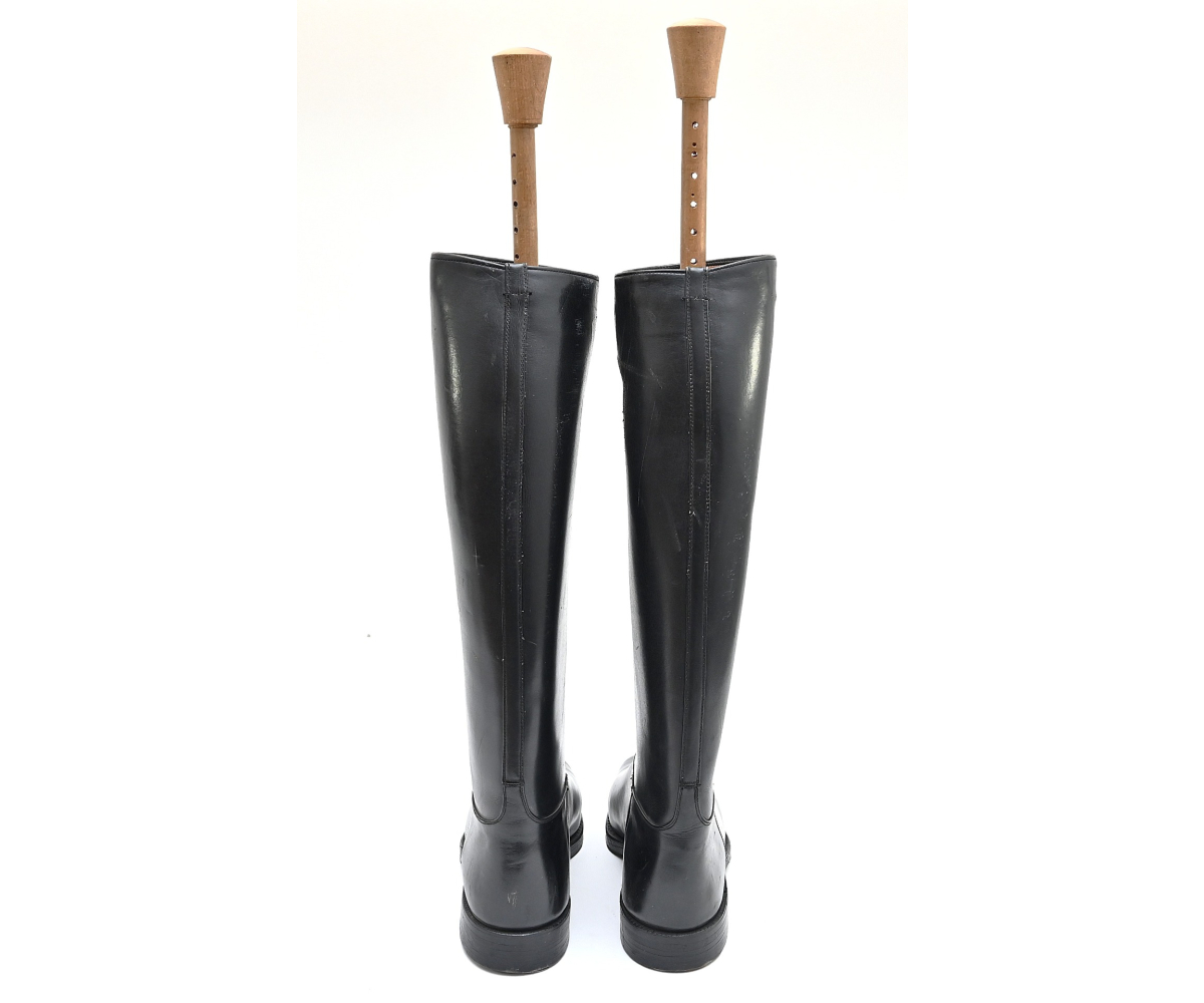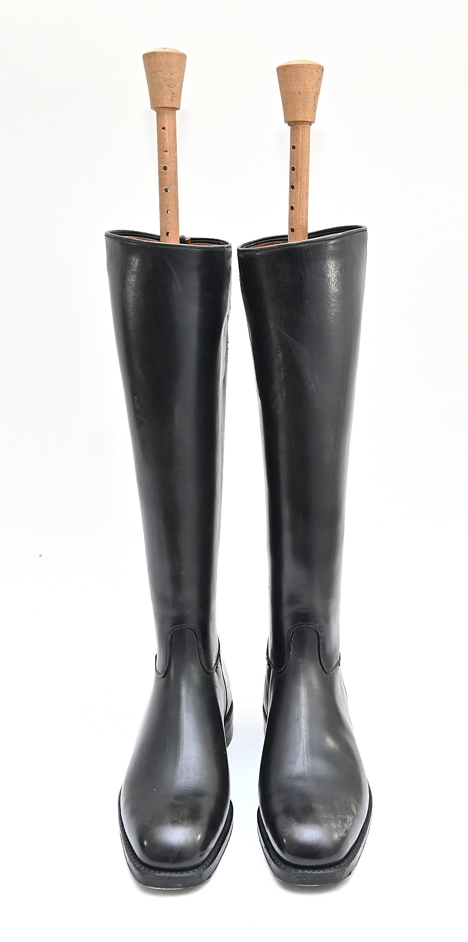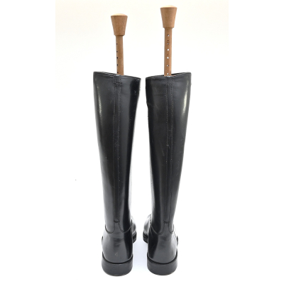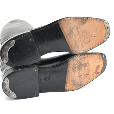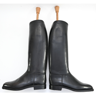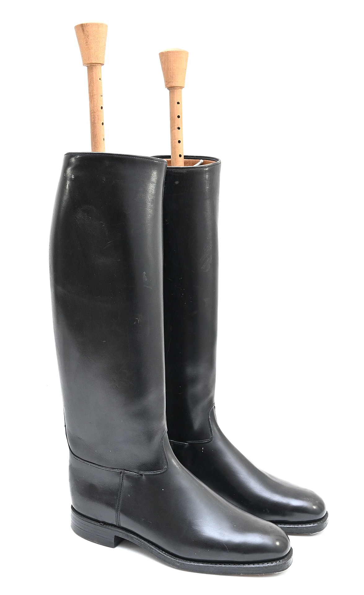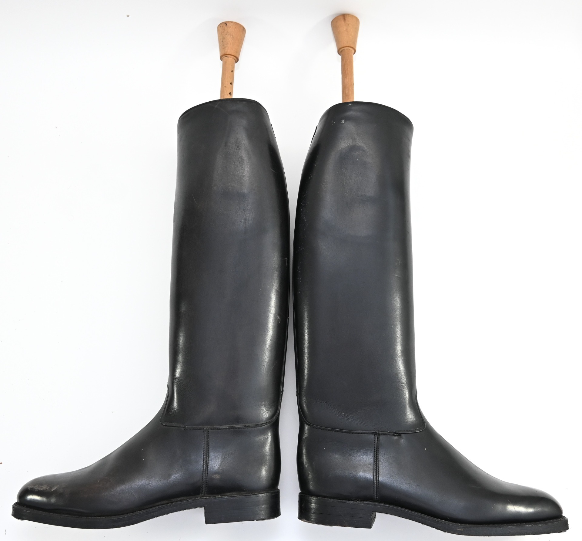A nice pair of private purchased black leather Wehrmacht officer's boots with wooden spanners in excellent condition.