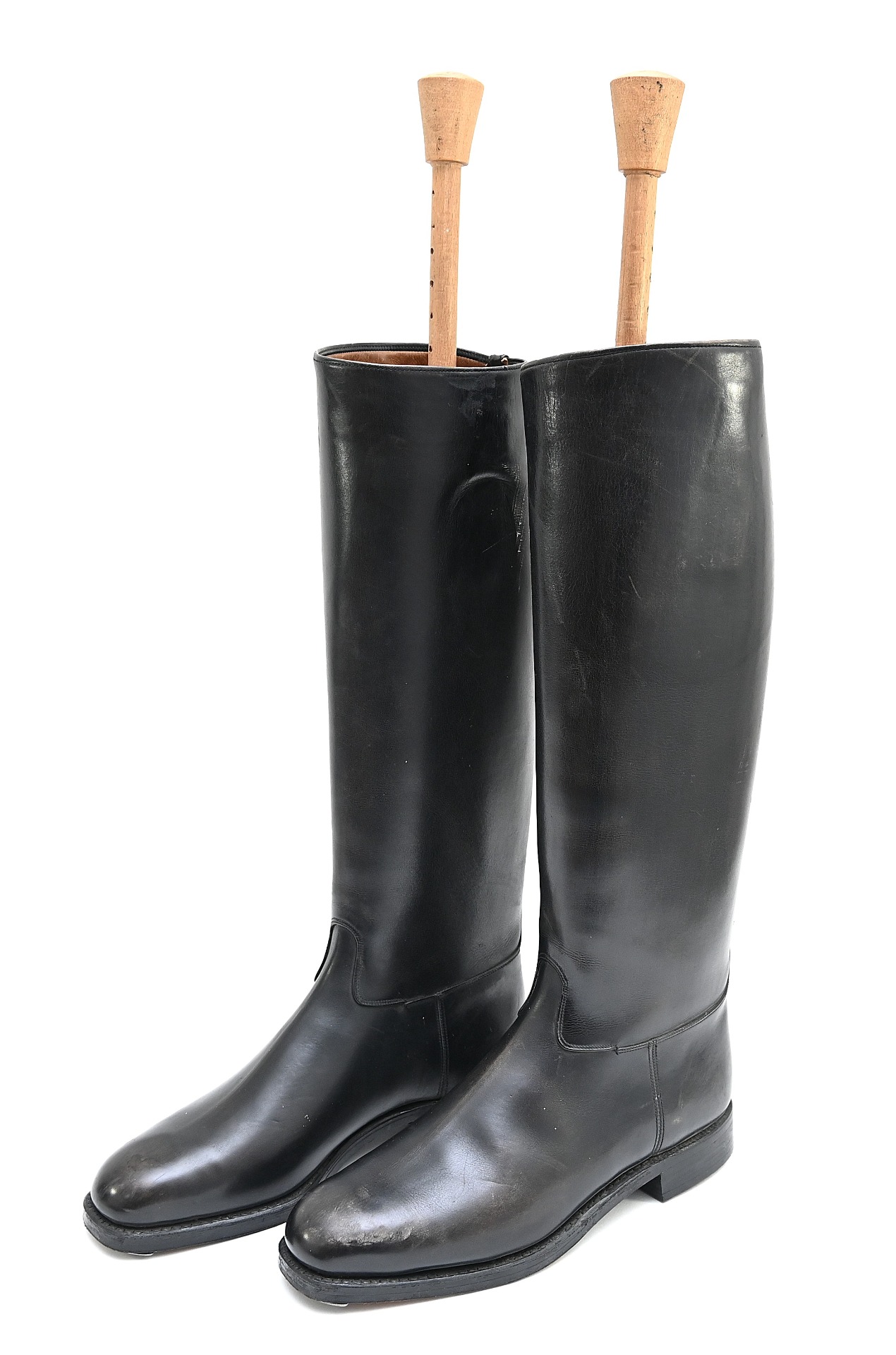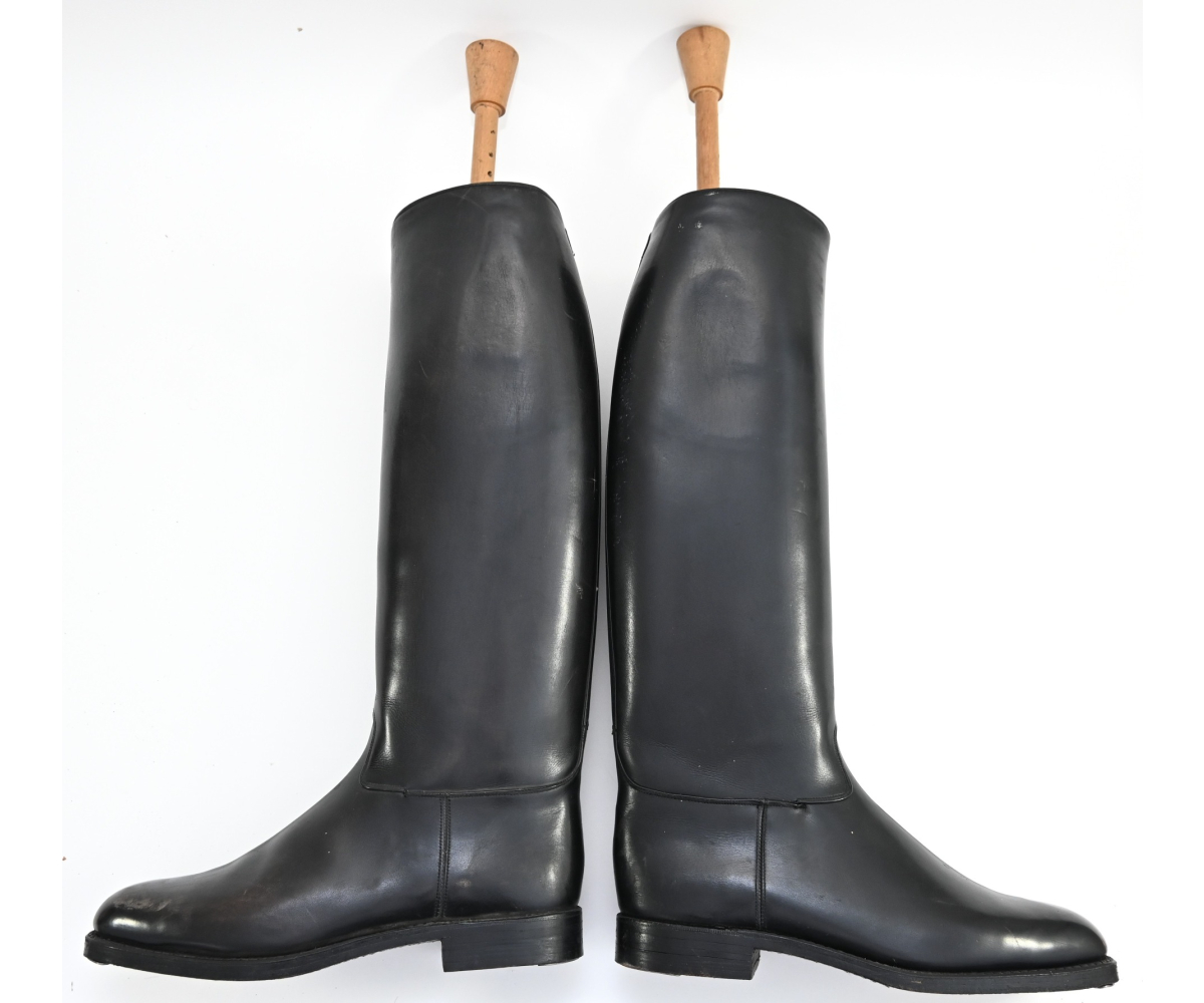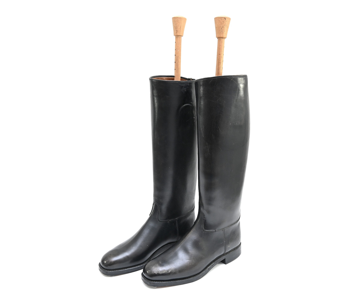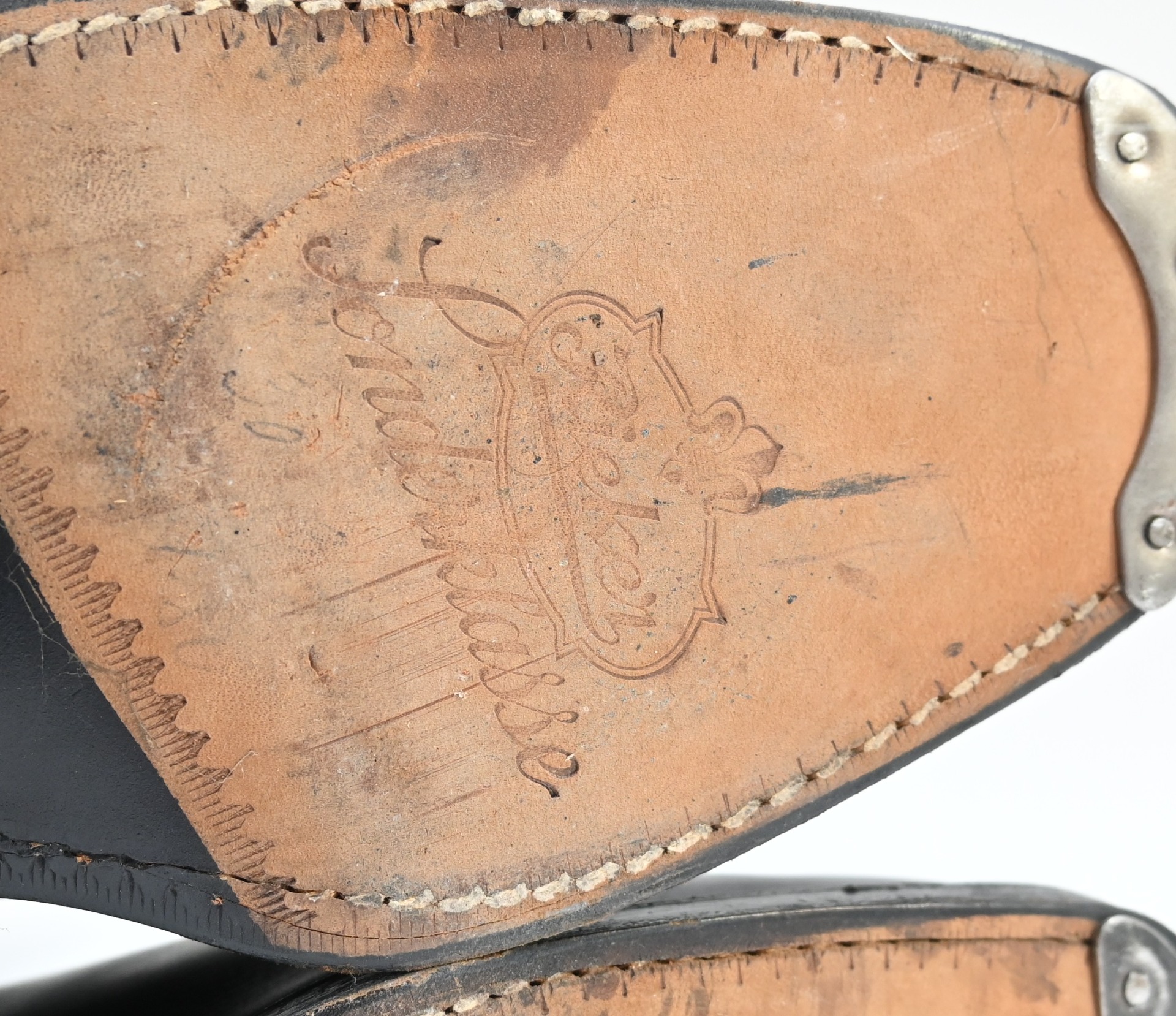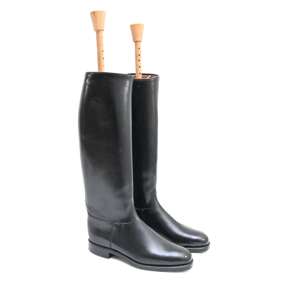 A nice pair of private purchased black leather Wehrmacht officer's boots with wooden spanners in excellent condition.