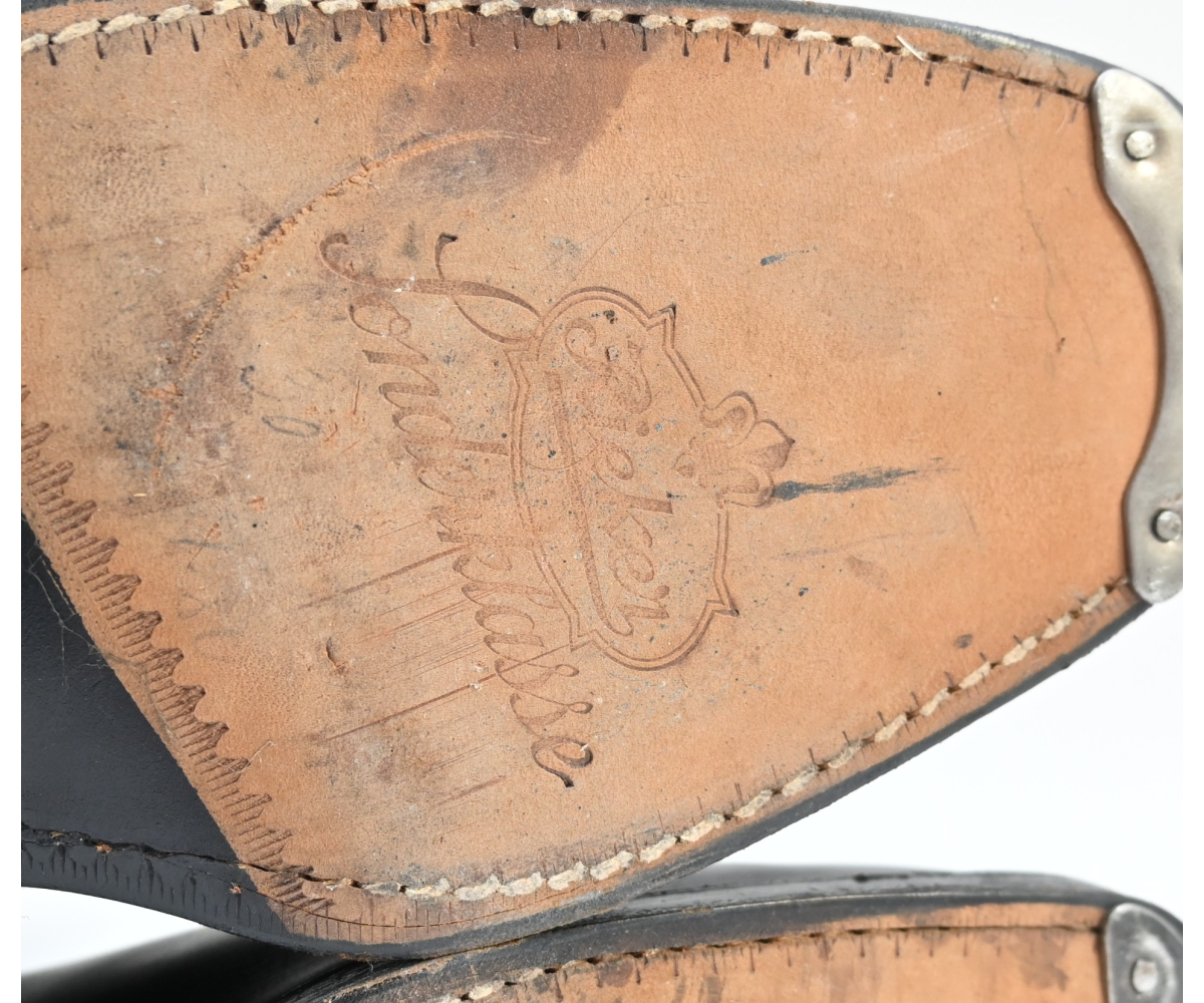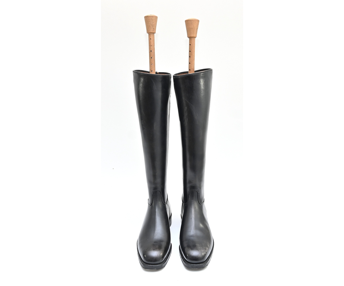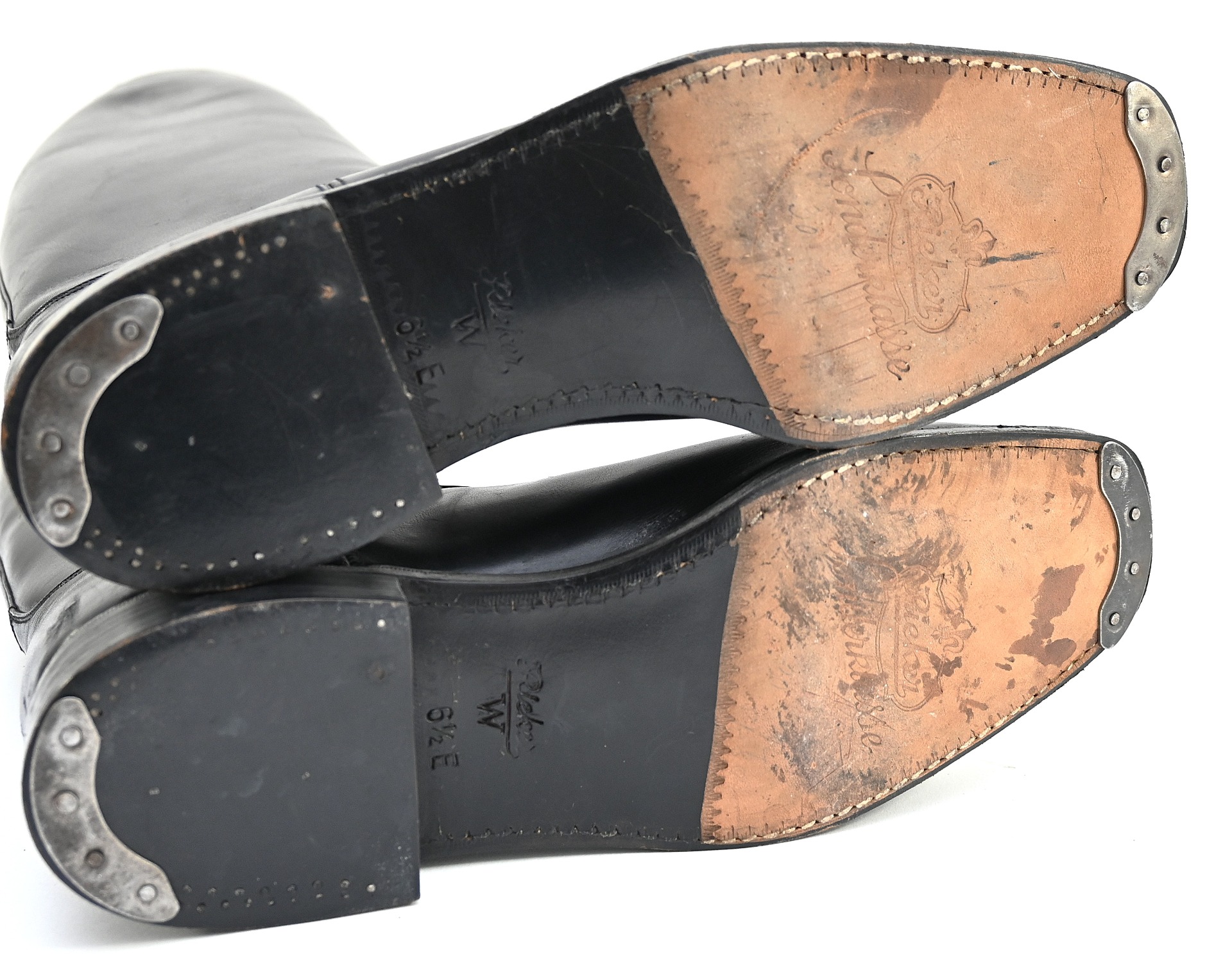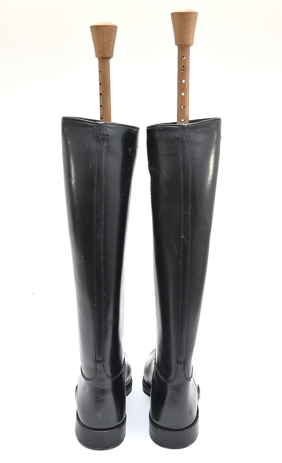 A nice pair of private purchased black leather Wehrmacht officer's boots with wooden spanners in excellent condition.