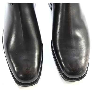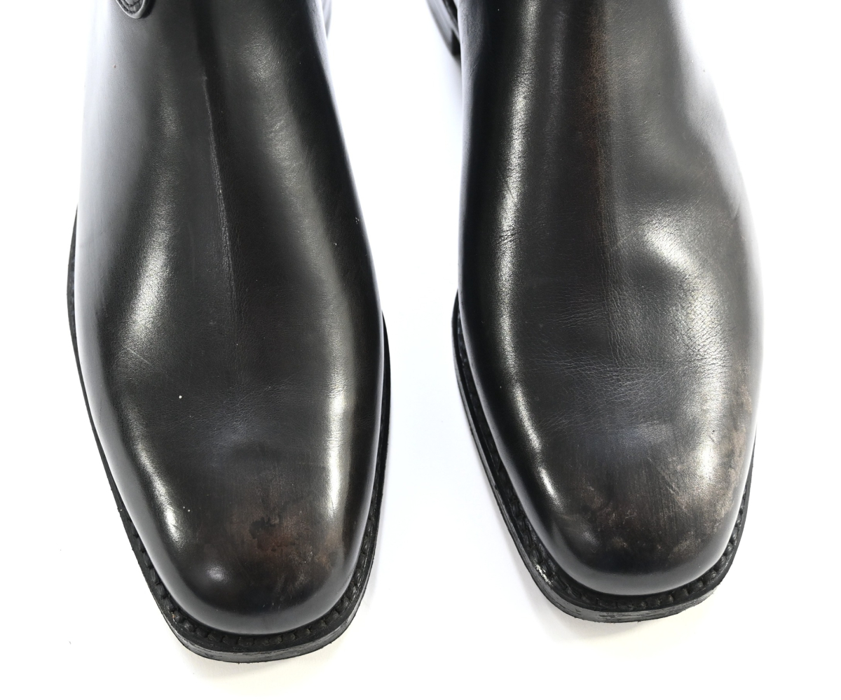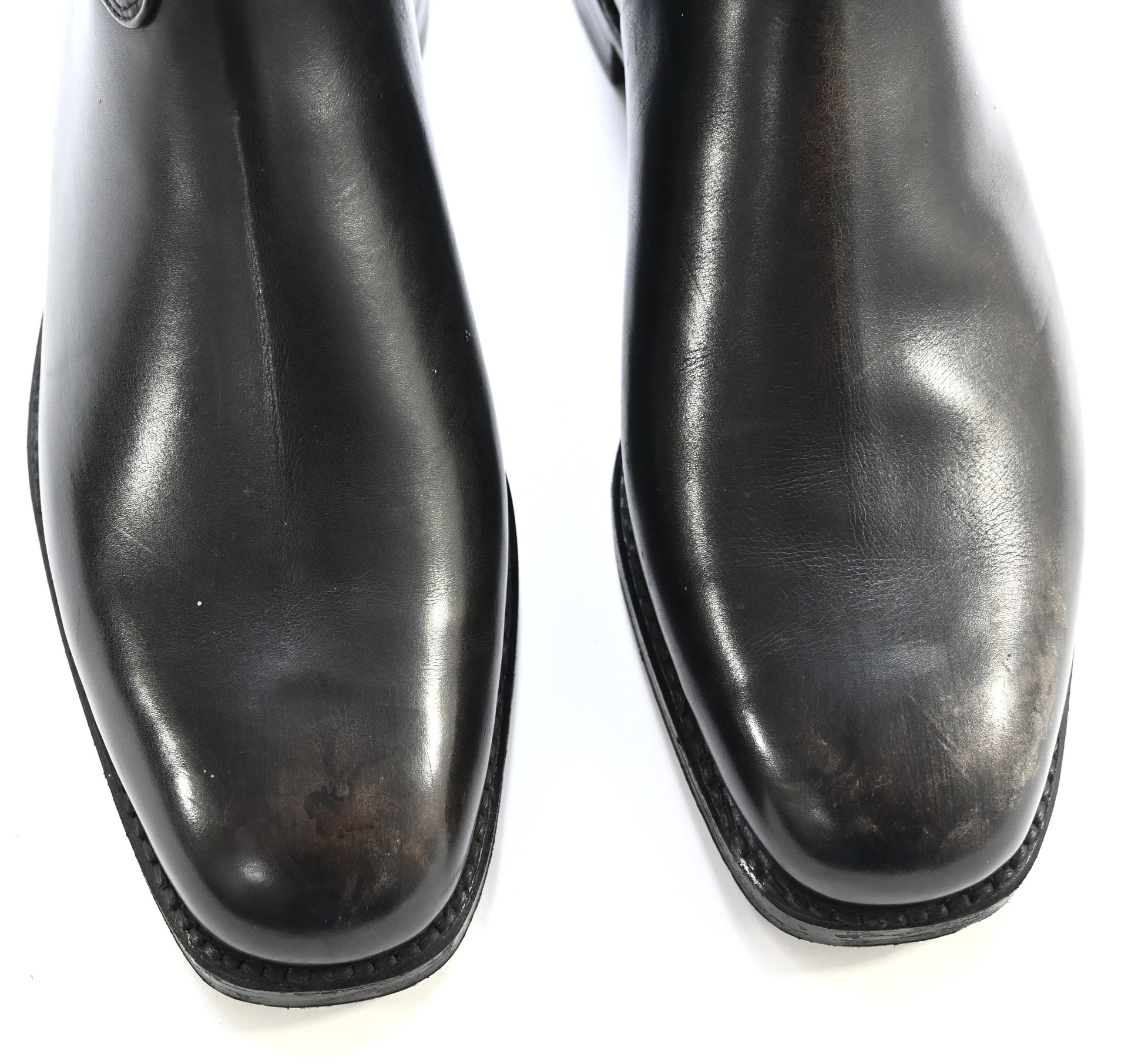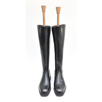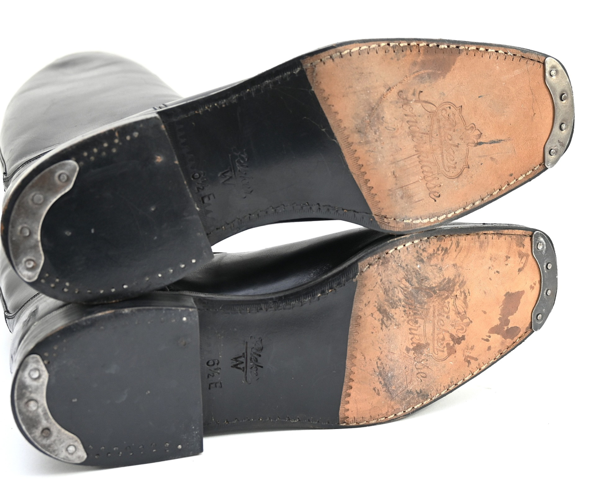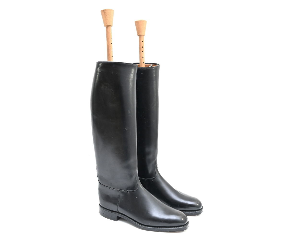A nice pair of private purchased black leather Wehrmacht officer's boots with wooden spanners in excellent condition.