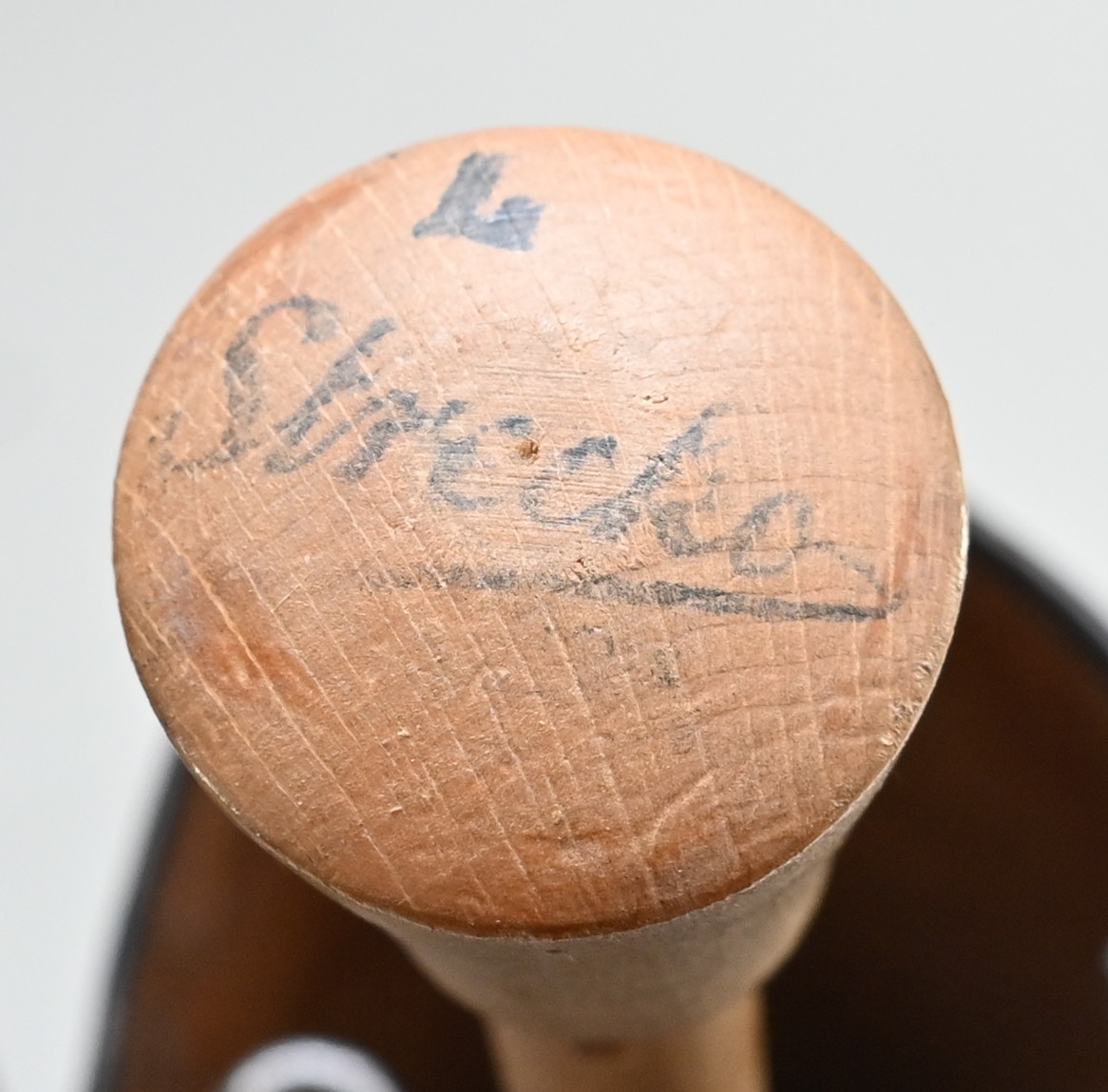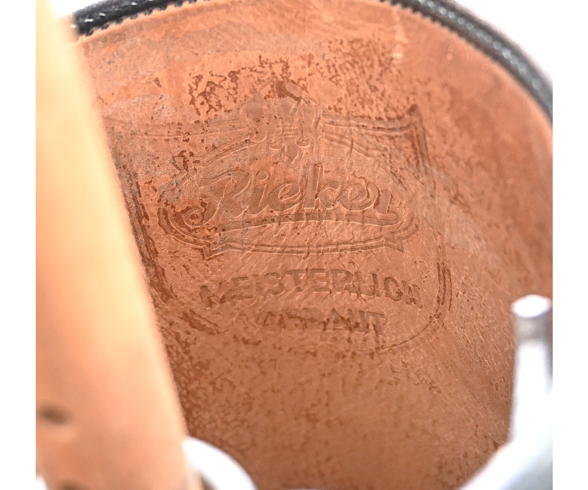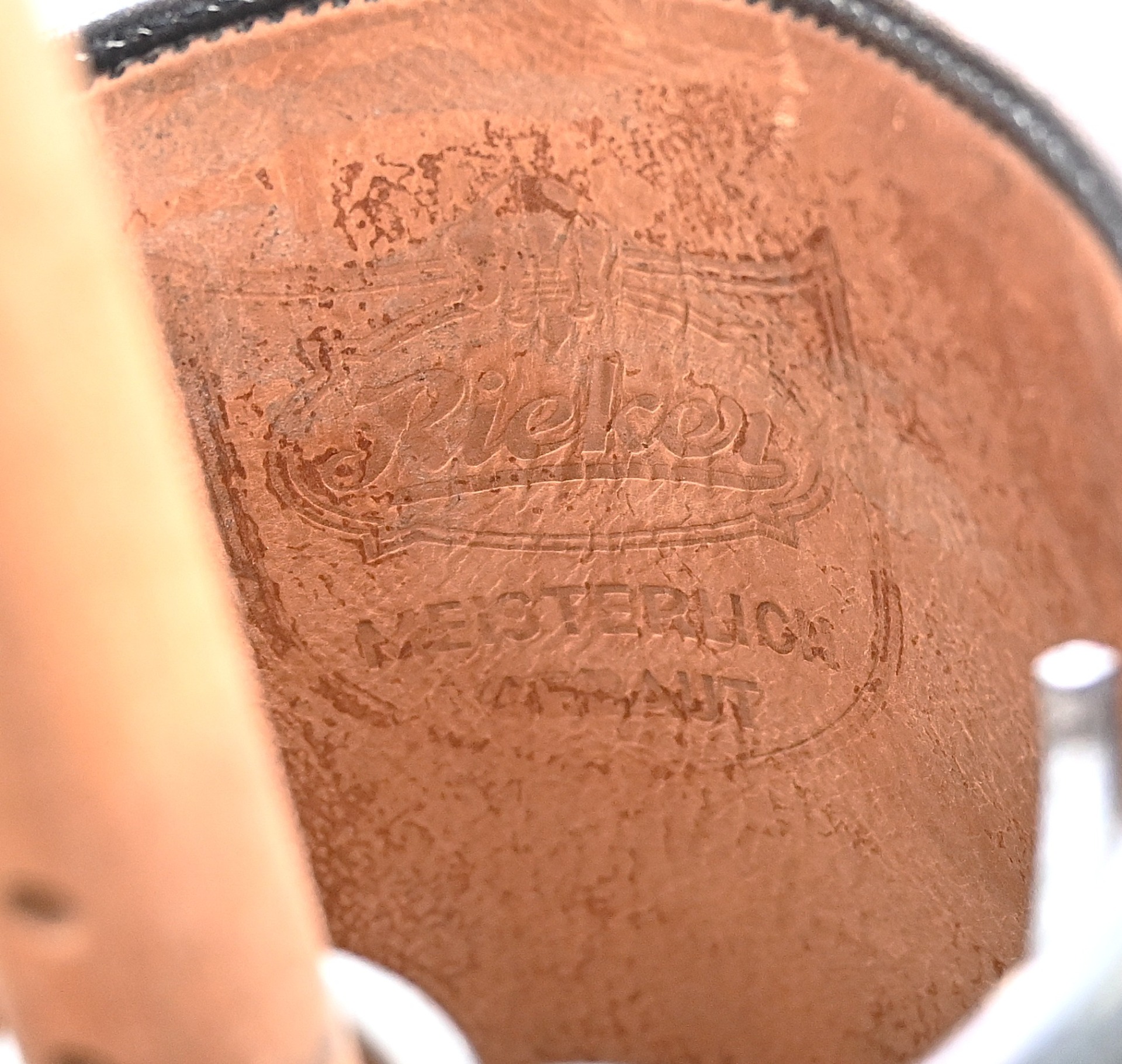 The boots or 'Stiefels' show overall minor signs of wear. The leather is supple. They are maker marked by the maker Rieker on the inside and on the soles. Each boot comes with a wooden spanner which are marked 'Strecko'.