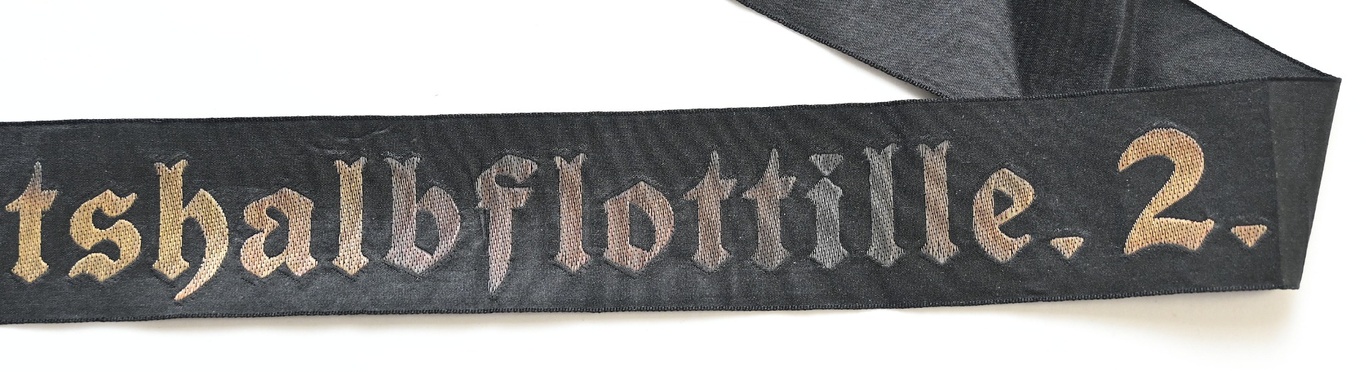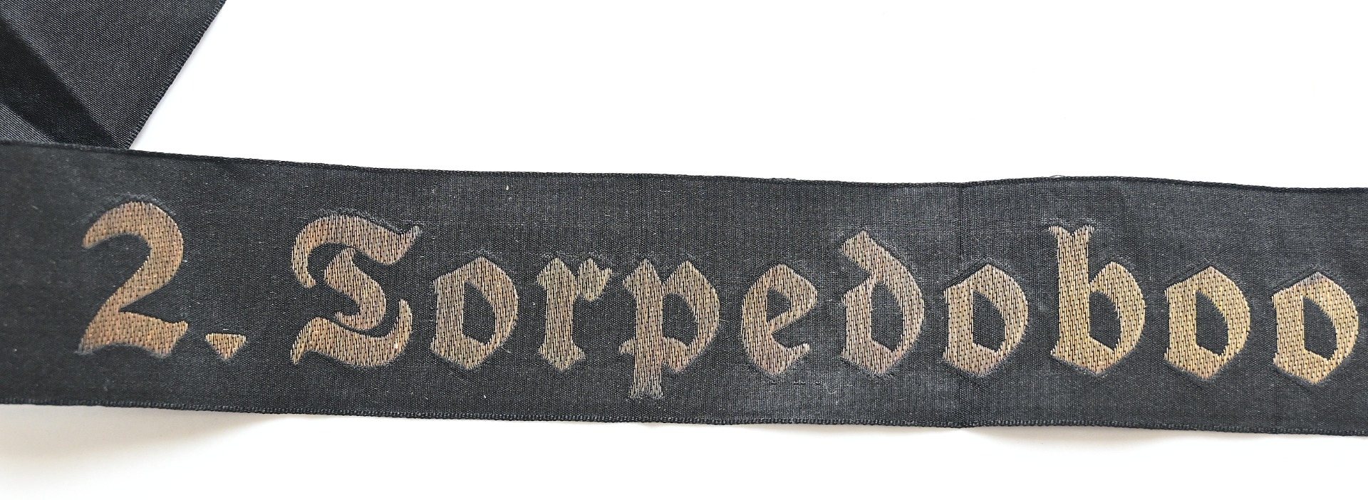Very nice Reichs/Kriegsmarine Torpedo Flottille related cap tally in used, but very good condition.