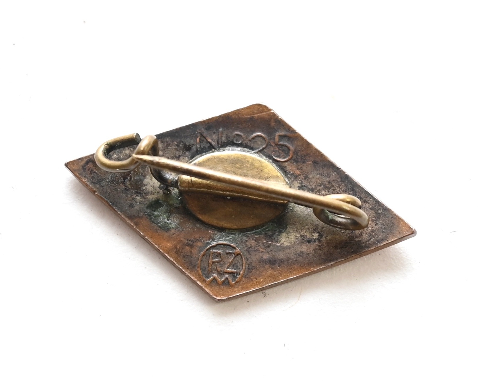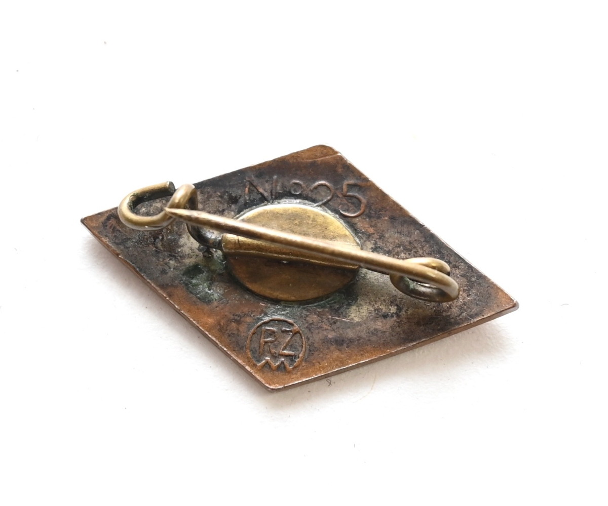 This early abzeichen shows overall normal signs of wear. It's complete with pin on the back. Nicely marked 'No25' and 'RZM'.