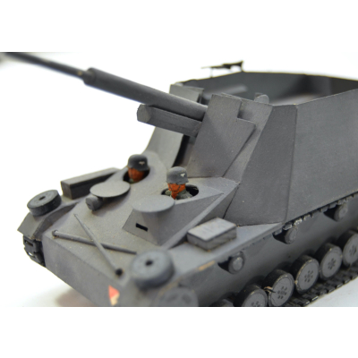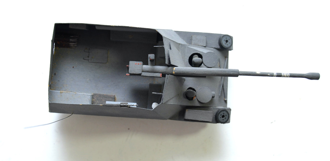 The model was build by a young Dutch man. He started building these models during the war, hiding for the Germans in in the City of Leeuwarden (Netherlands). He used, among else, magazines like the 'Signaal' and 'Die Wehrmacht' as reference material. The size is approx: 13cm * 6cm * 5,5cm.