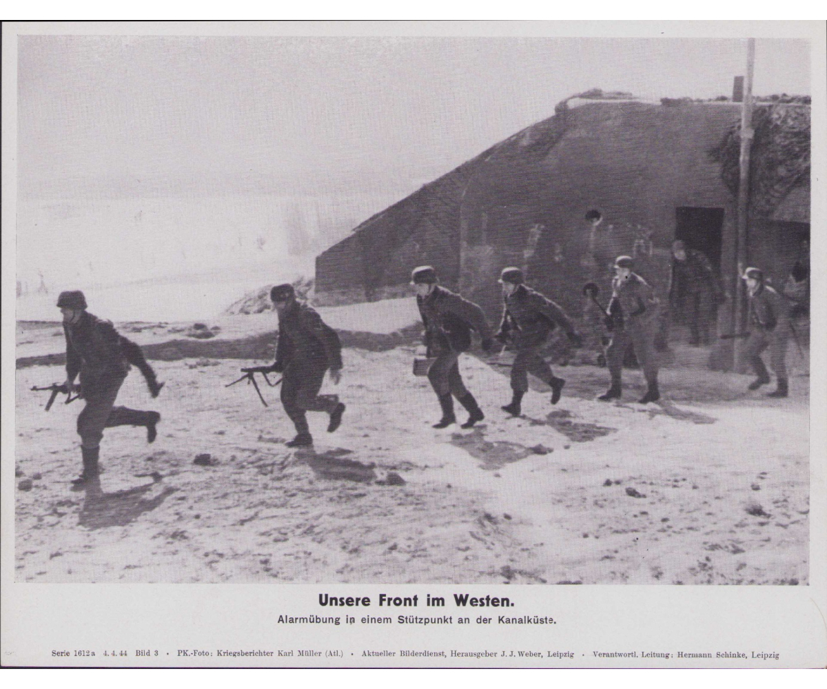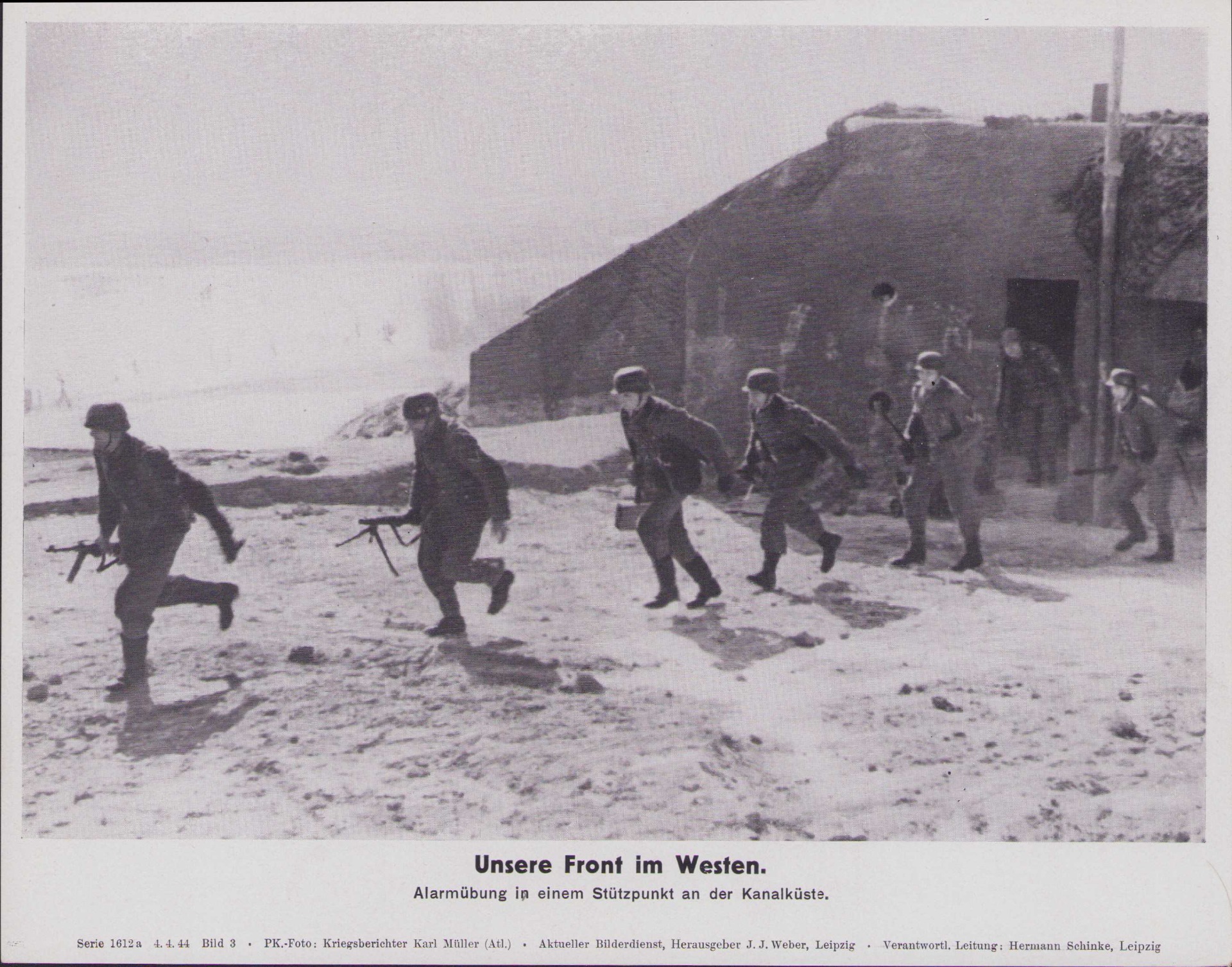 The photo shows overall normal signs of storage wear. Here a squad is running out of their Atlantik wall bunker to get into position during a training-alarm.