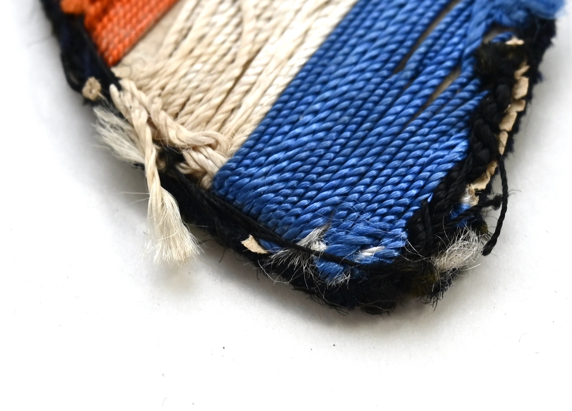 These shields were worn on the the left arm by the members of the 'SS-Freiwilligen-Legion-Niederlande' right above the cufftitle or just under the eagle, from mid-to-late 1941 until about the end of 1943. However, there are periodic photos that even after 1943 these shields were still in use.
