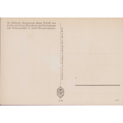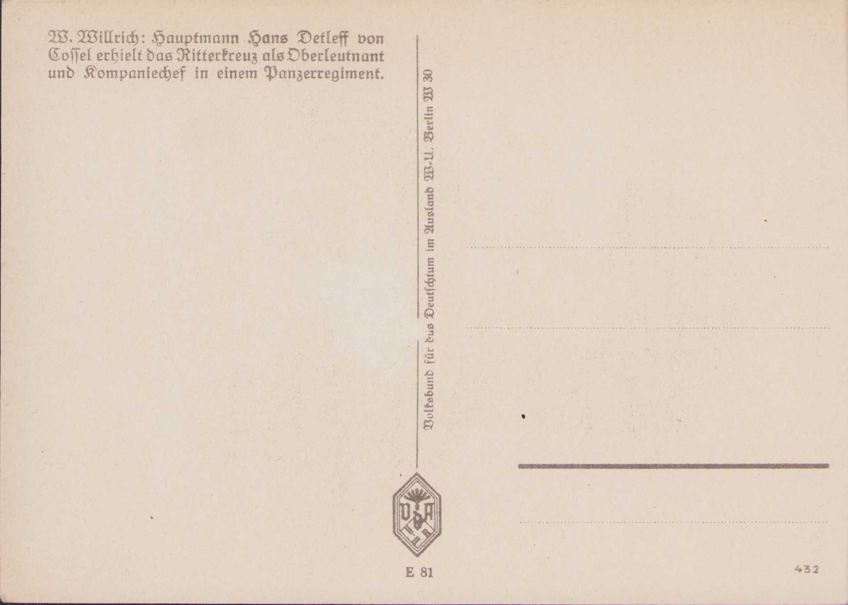 Very nice postcard of the Willrich series of Hauptmann Hans Detleff von Cossel in good condition.