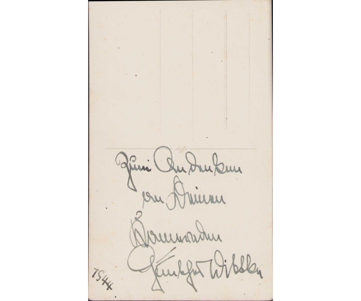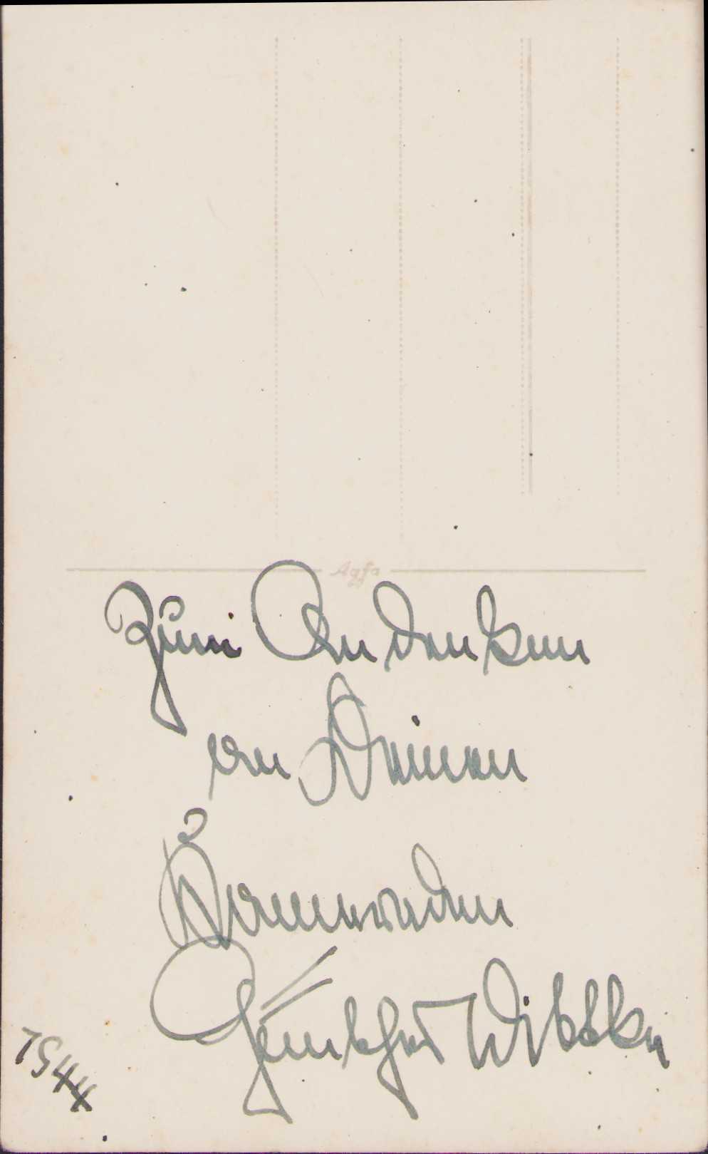 The portrait shows overall normal signs of storage wear. The young man/boy is wearing his combat tunic. On his breastpocket it appears he's wearing a HJ mitgliedsabzeichen. Handwritten message on the back. Dated 1944.