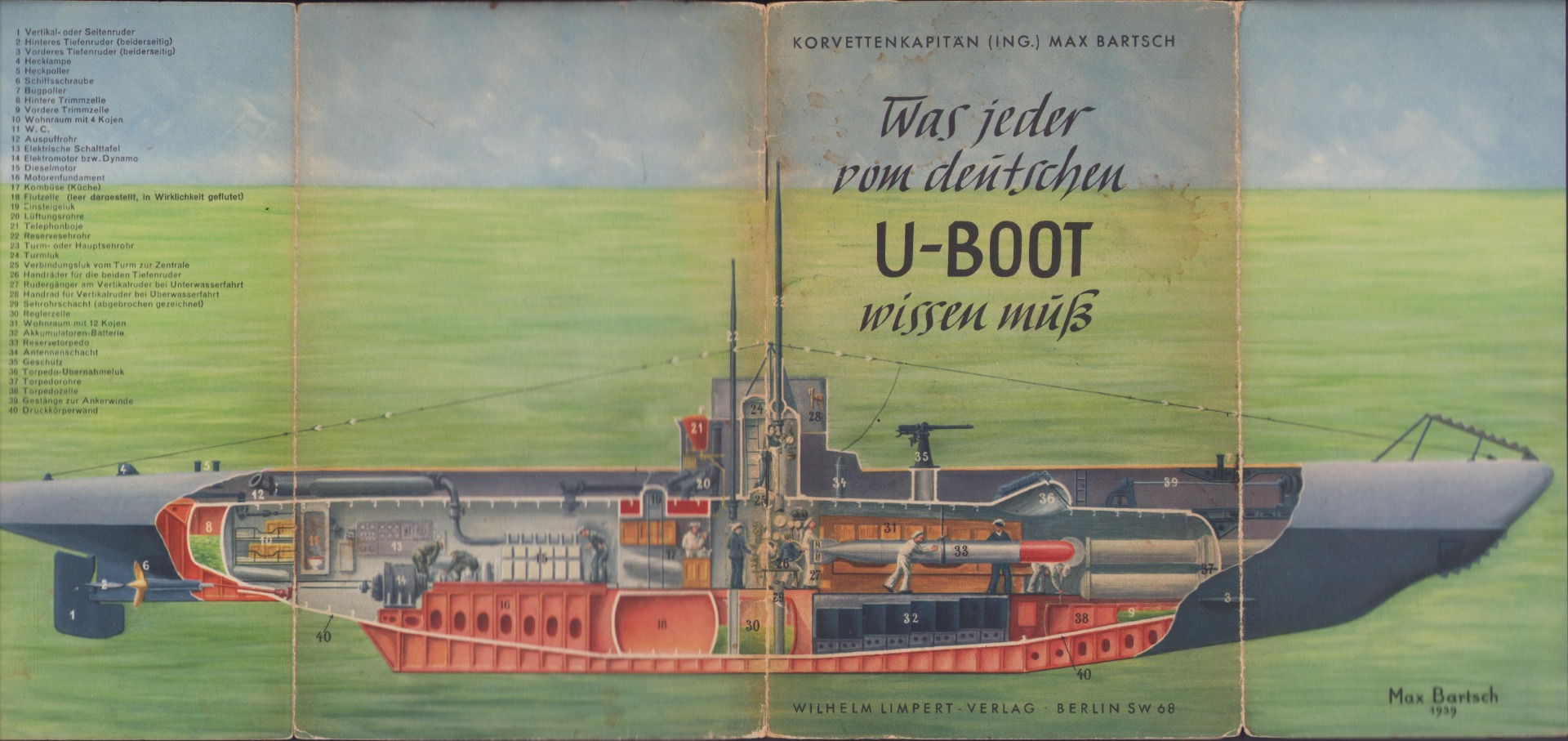 The booklet shows overall normal signs of wear. Some pages more then others. It's solid, but should of course be handled with care. It's complete with all 40 pages. Written by Korvettenkapitän (ING) Max Bartsch. Printed in 1941.
