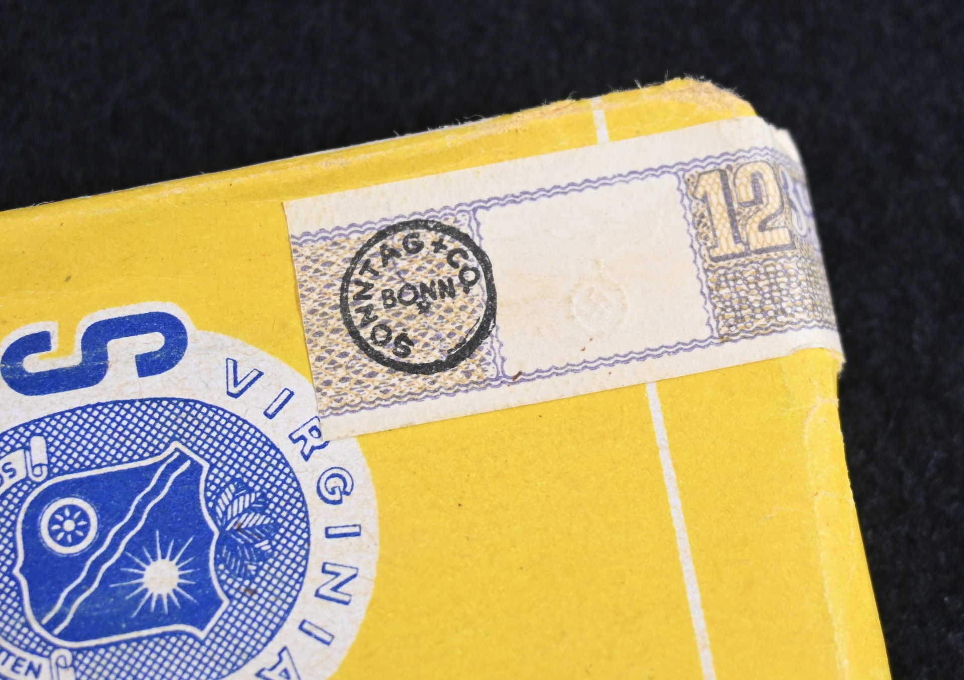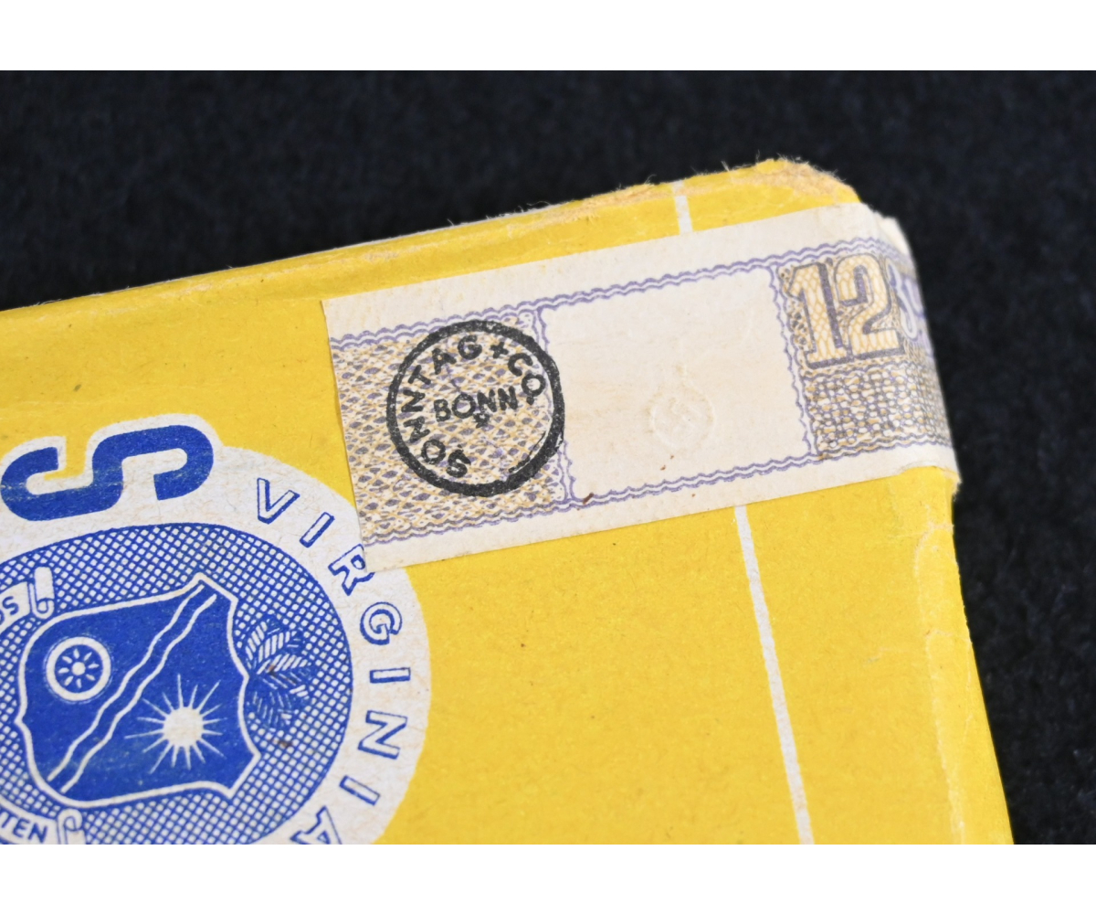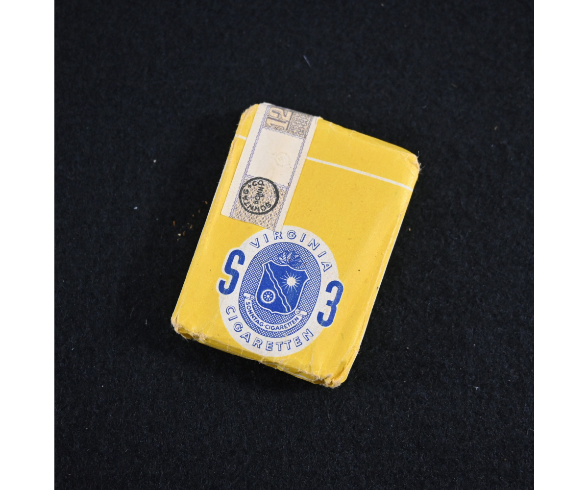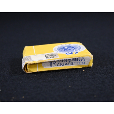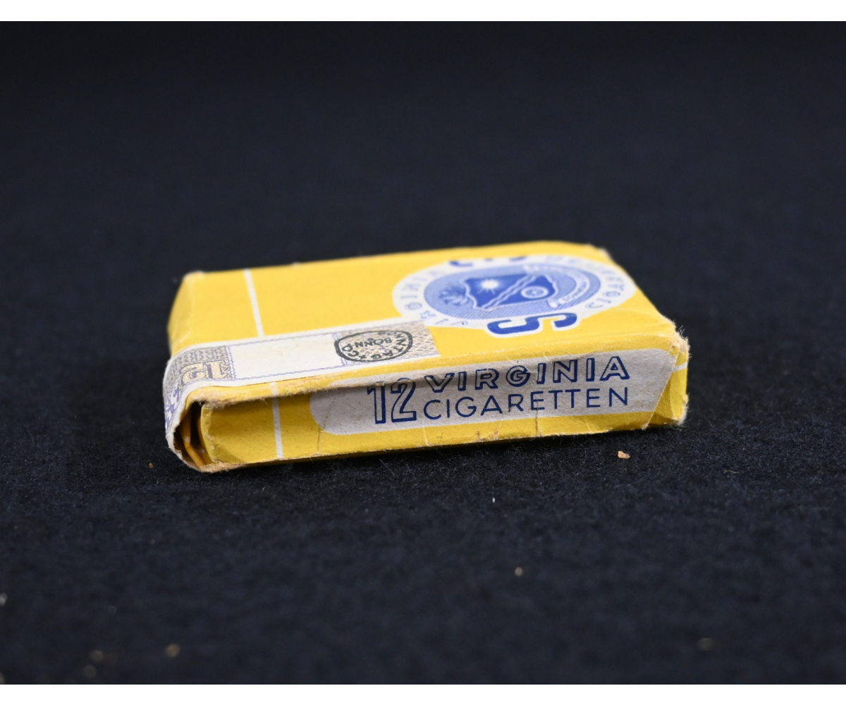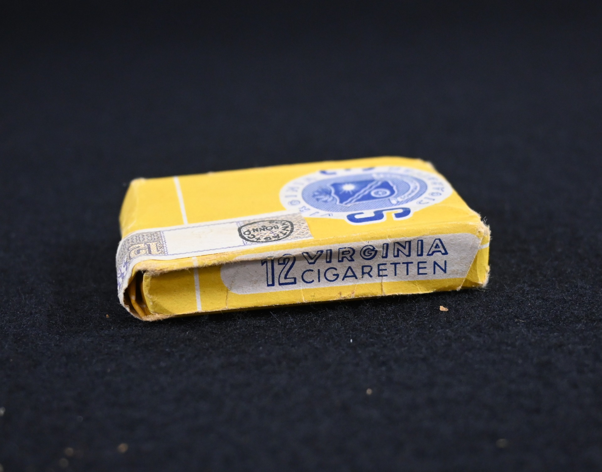 The pack shows overall normal signs of storage wear. Complete with all 12 cigarettes.