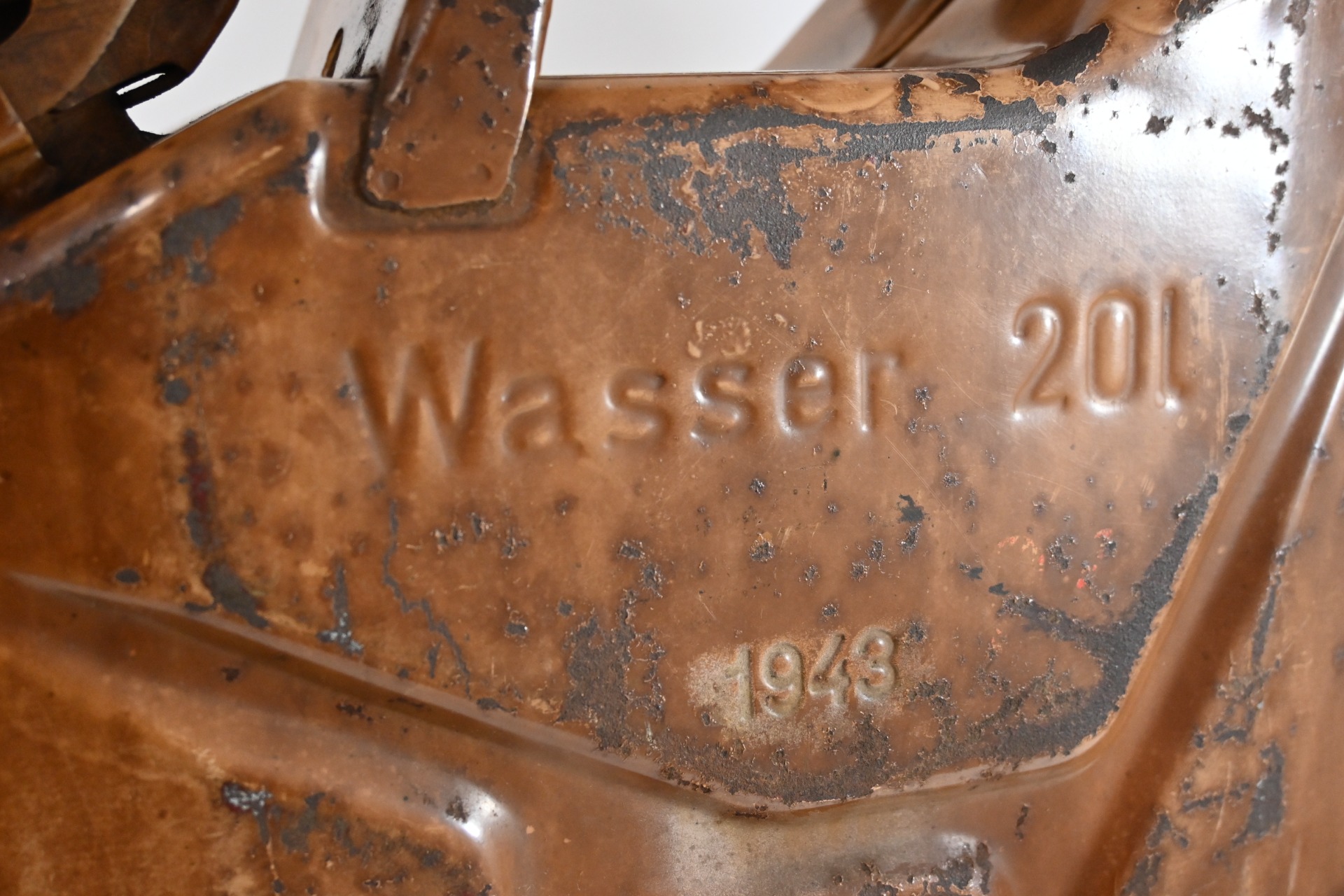 Nice tan colored Wehrmacht issued water of Wasser jerrycan in used, but well preserved condition.