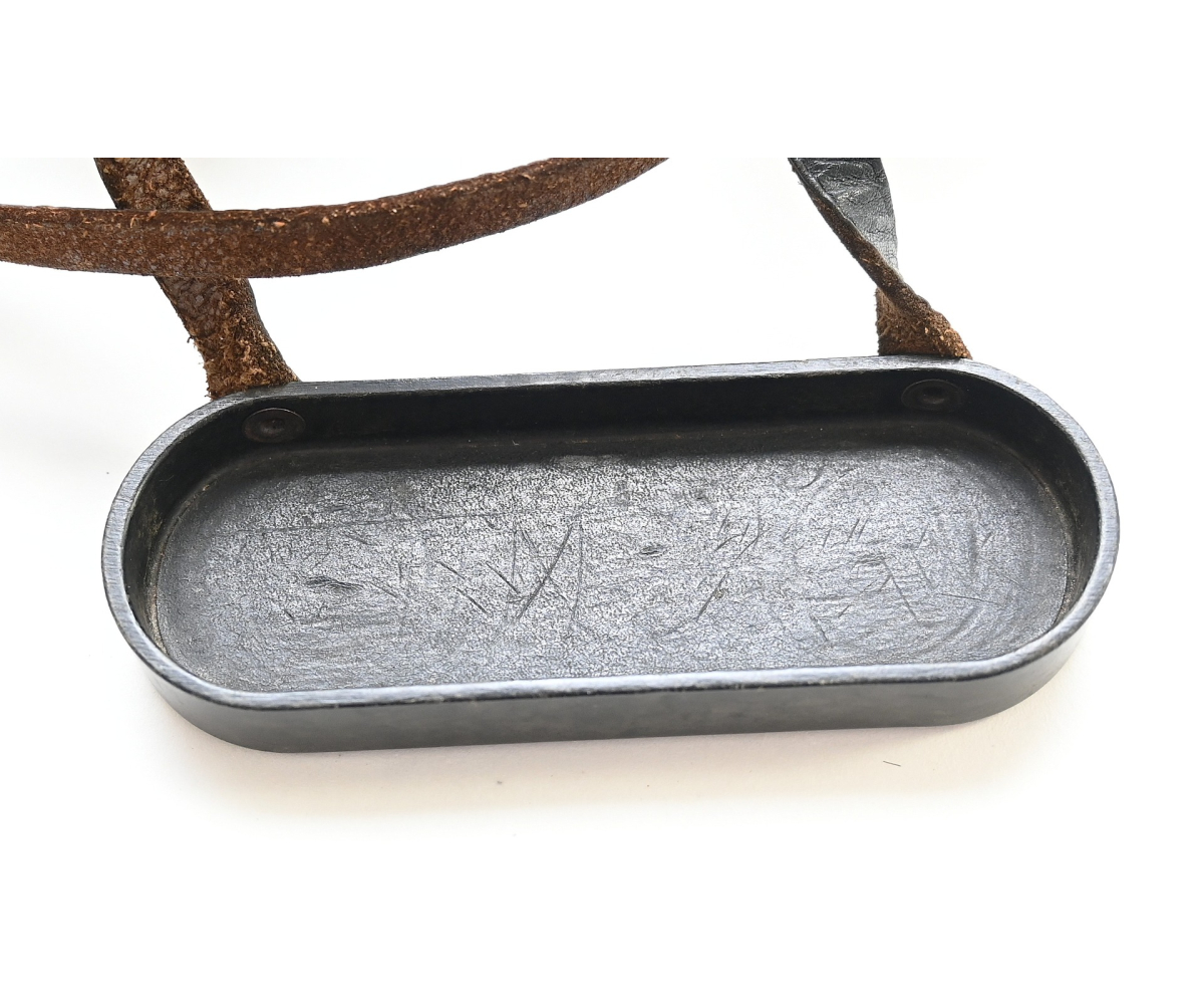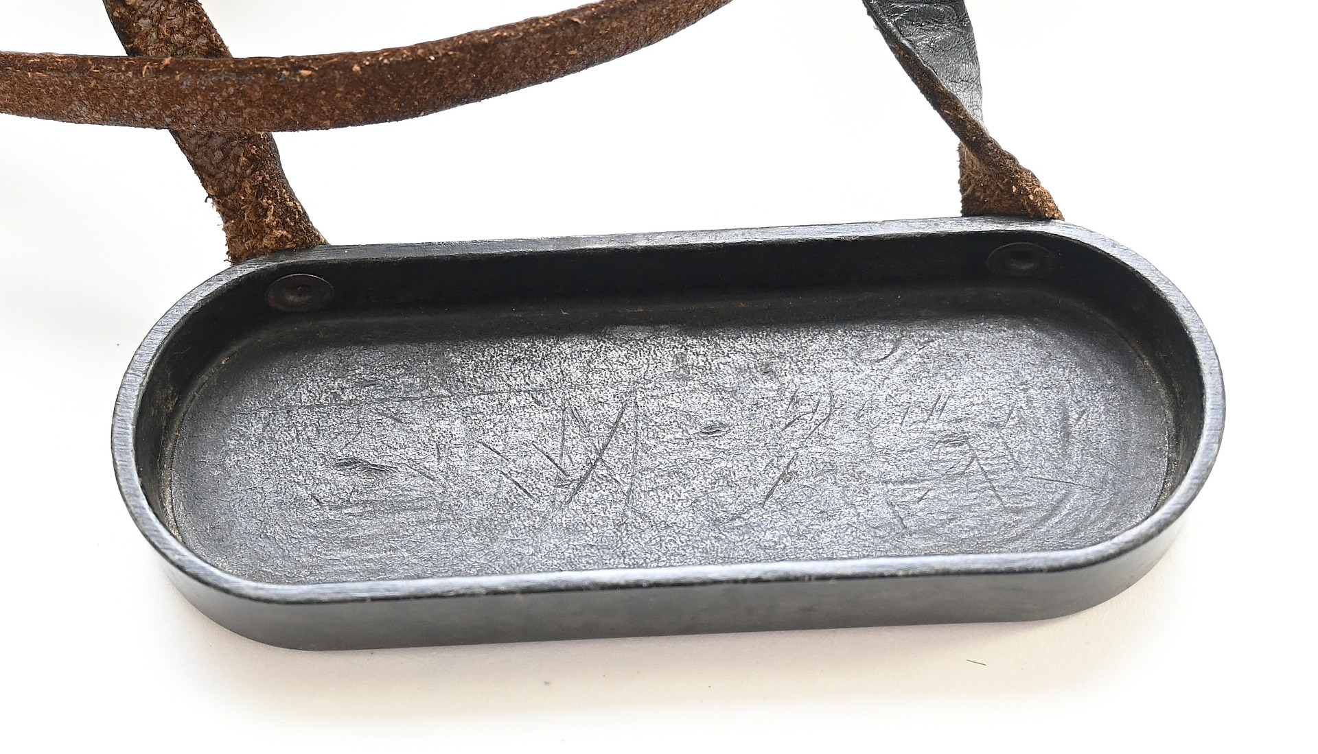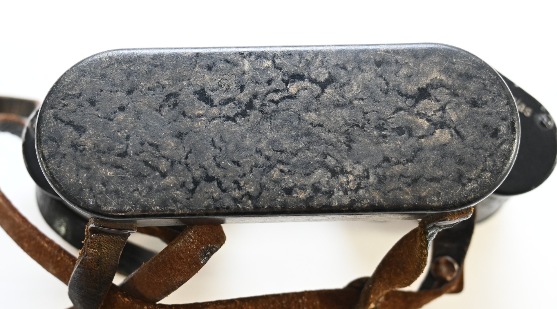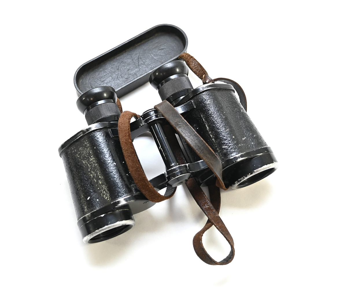 The binos comes with an original black leather strap and the brownish bakelite lens cover. The leather of the strap is supple and solid and the cover is intact.