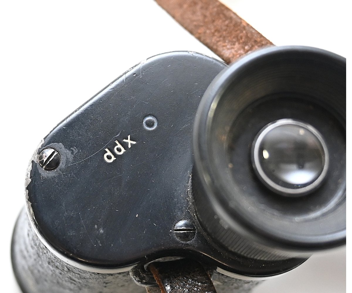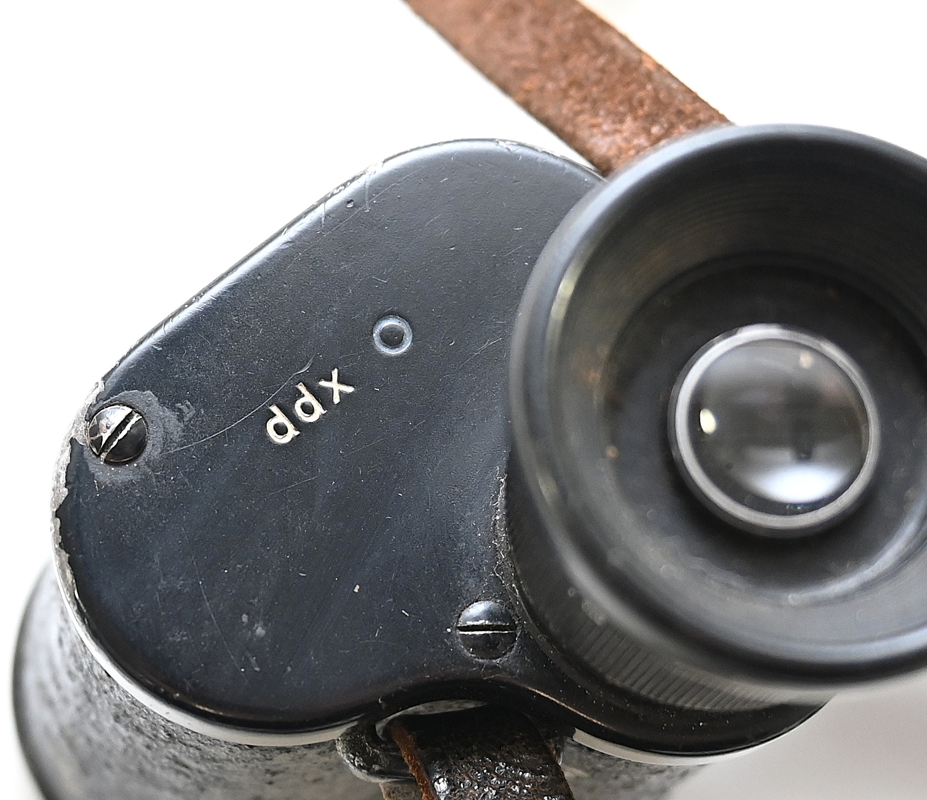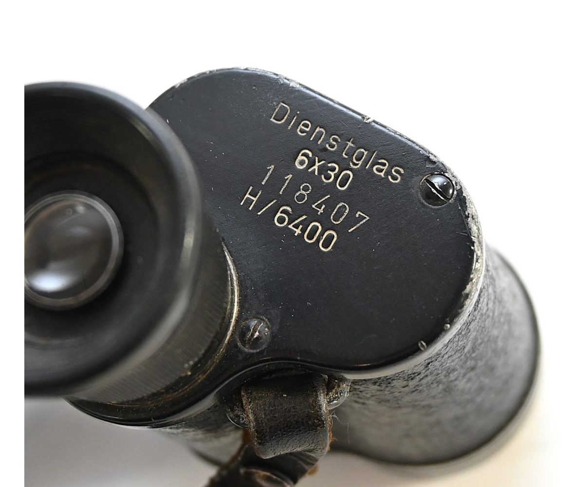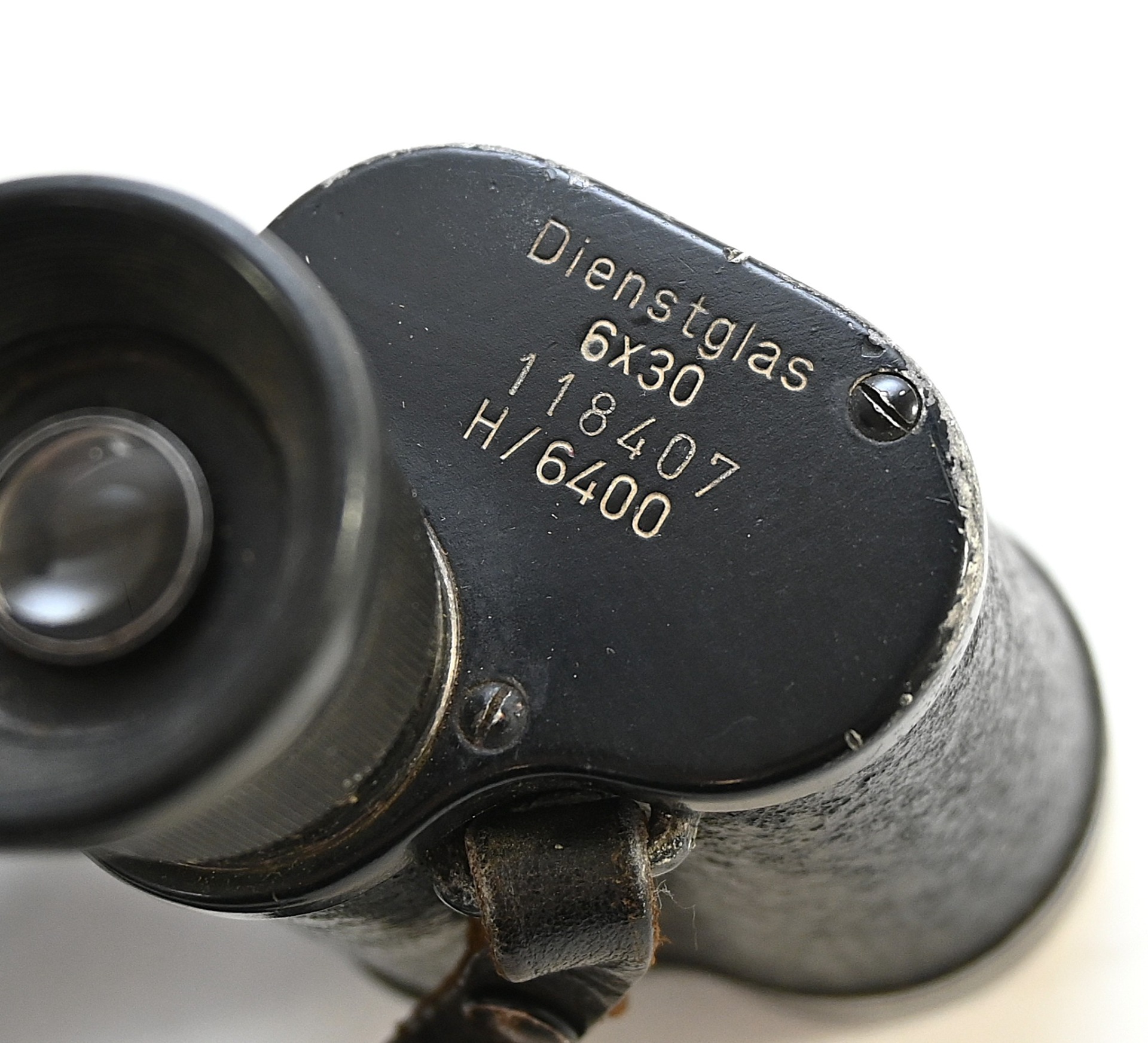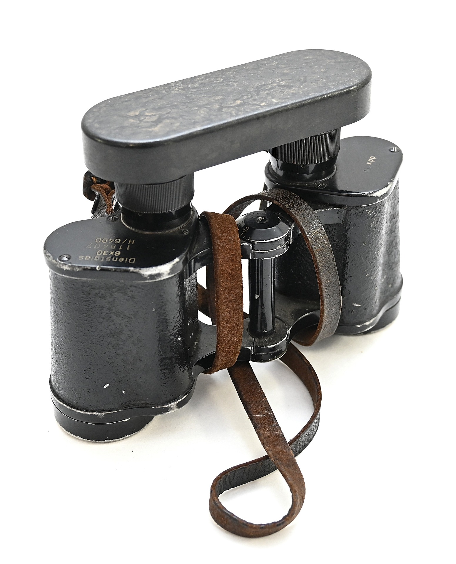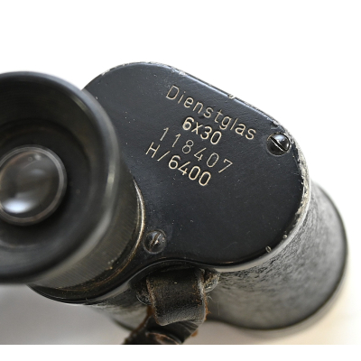 The binoculars show overall signs of wear. Both lenses are in working order. That means you can focus them. The visibility is very clear (see photos). There is a strichplatte in the right lens. The right side is marked with the number ''118407'', ''6x30'' ,''Dienstglas'' and 'H/6400'. The right side is maker with 'ddx'. which means the manufacturer was Voigtlander.