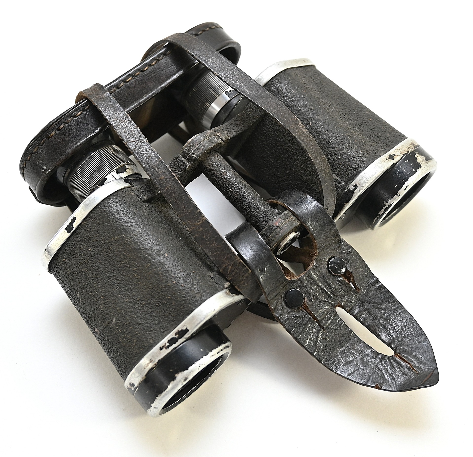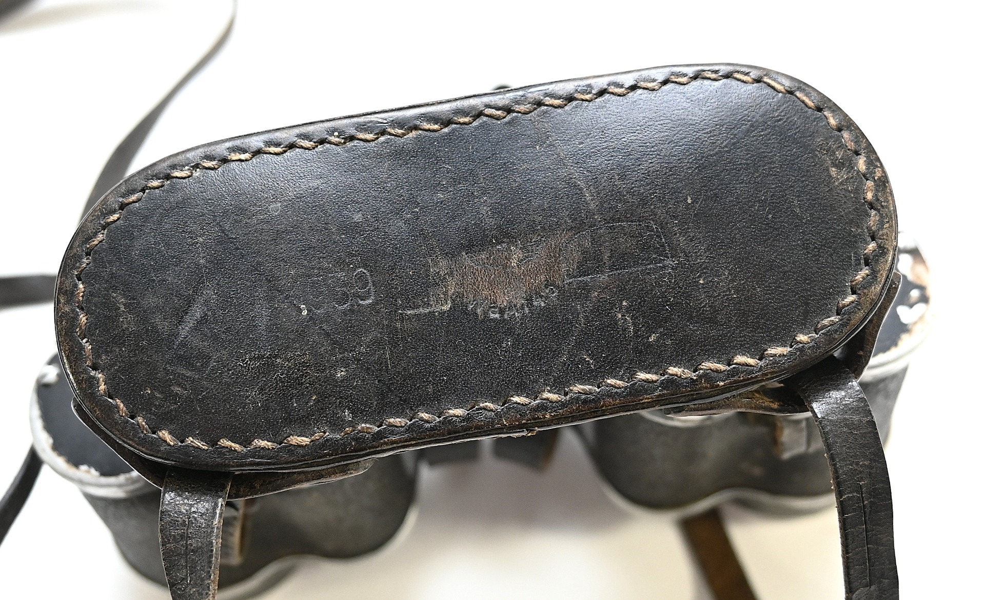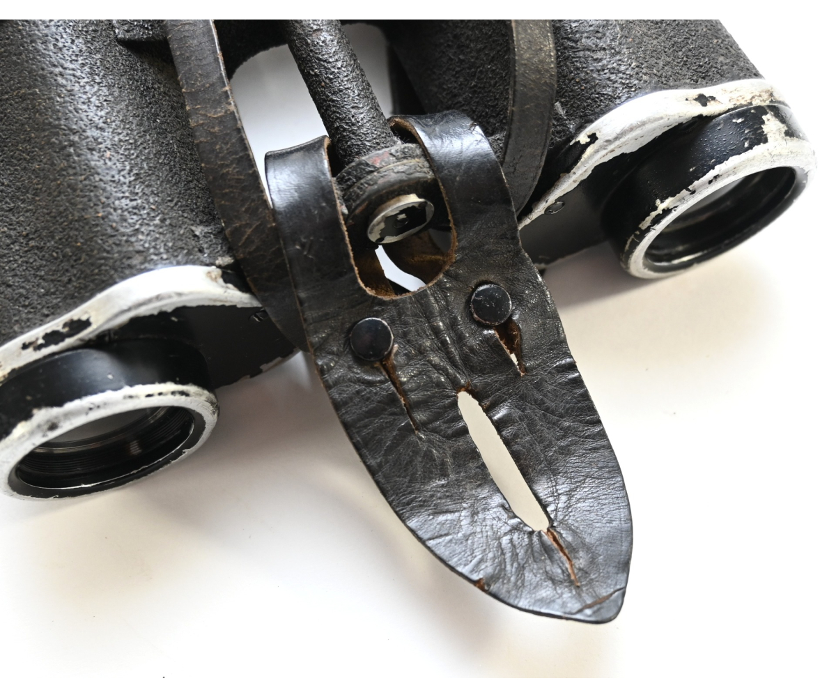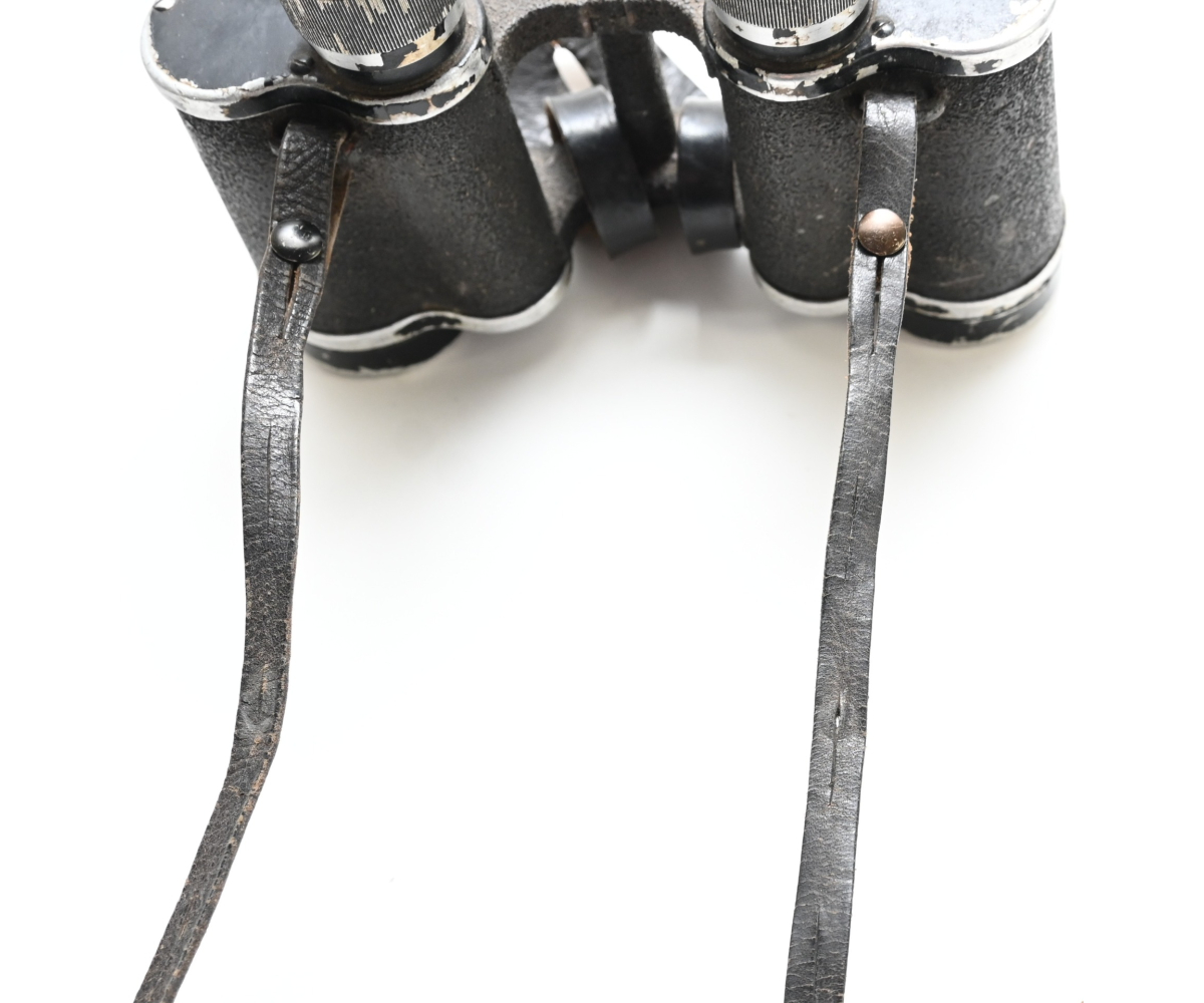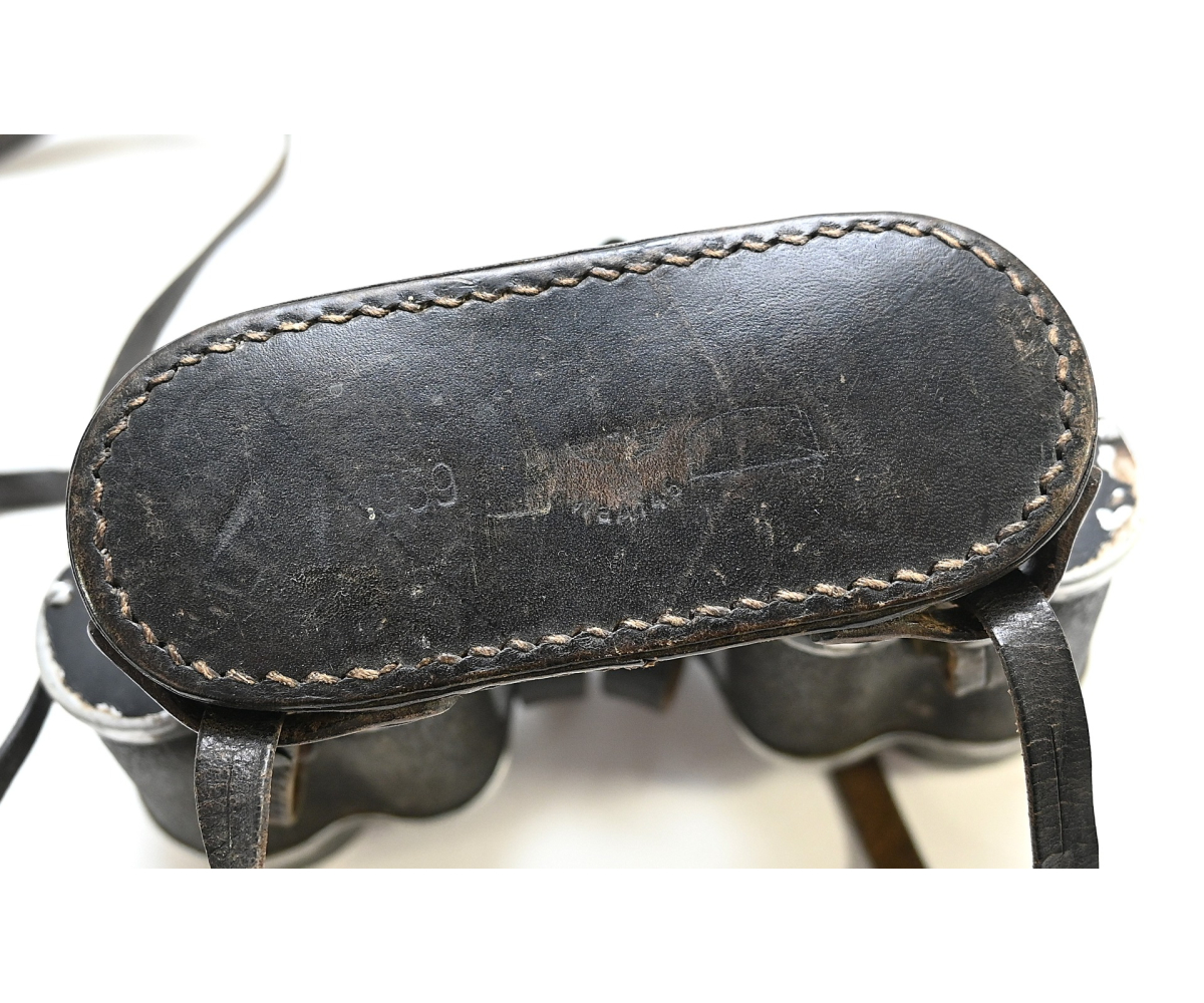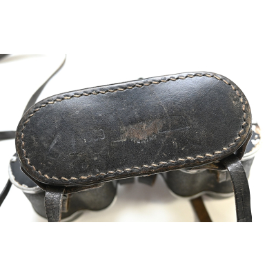 The set comes with it's black leather carrying strap, leather lens cover (which is dated 1939, WaA marked and has a vague Carl Zeiss makers logo) and leather button flap or 'tragelasche'.