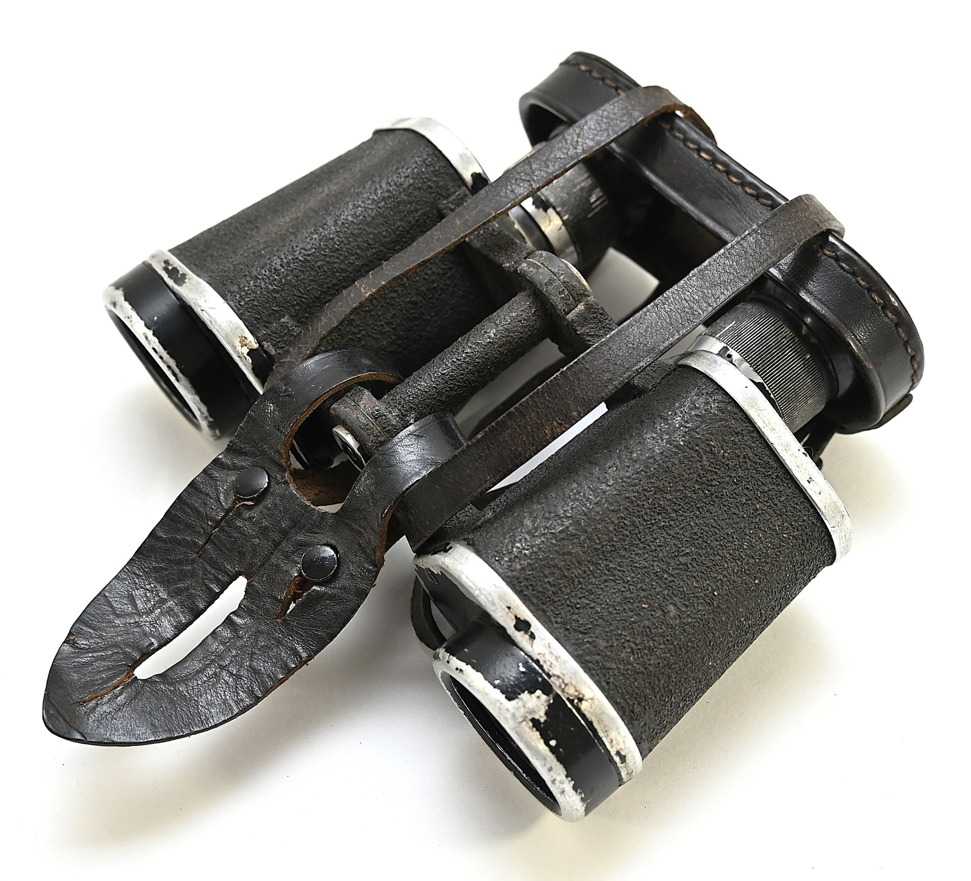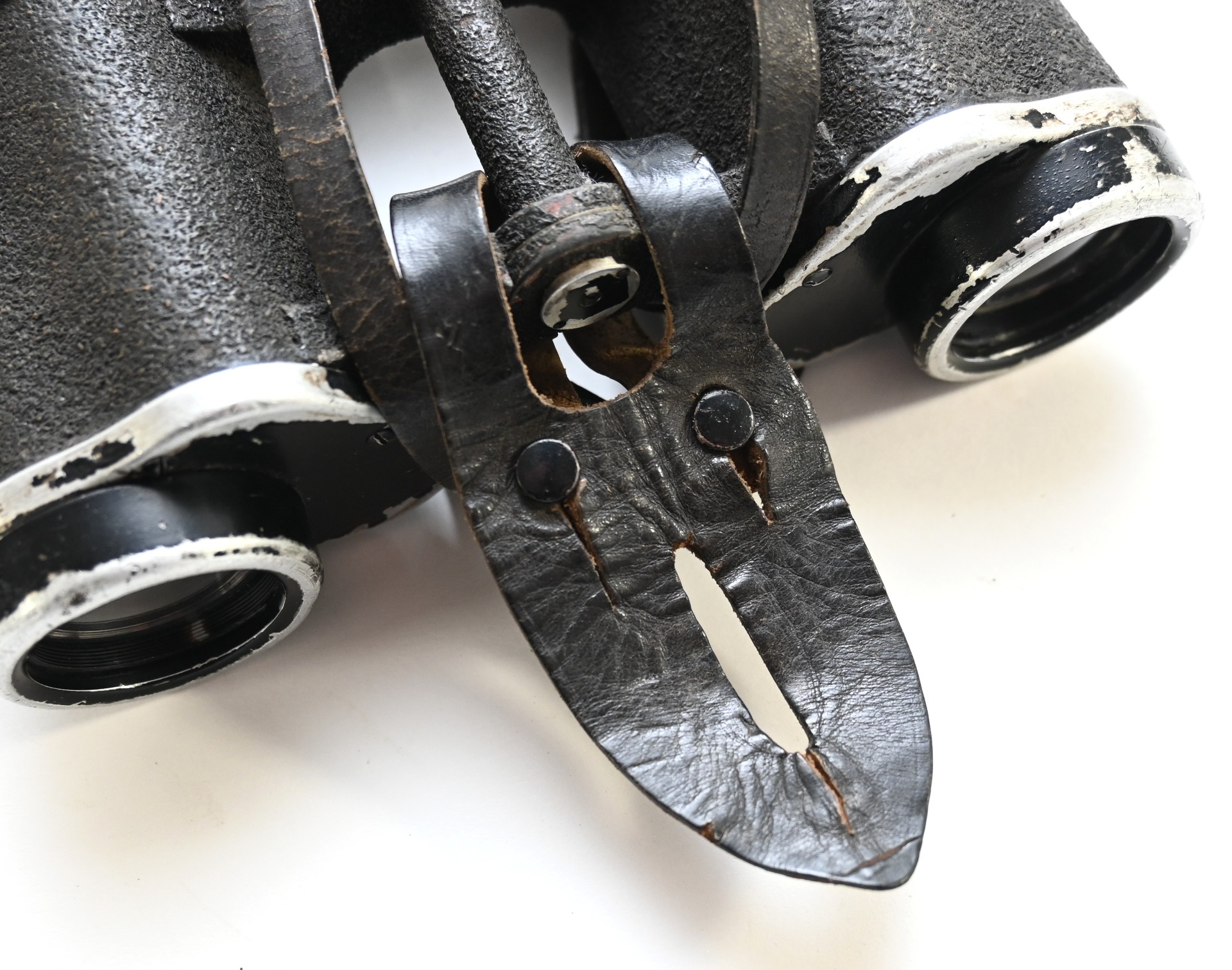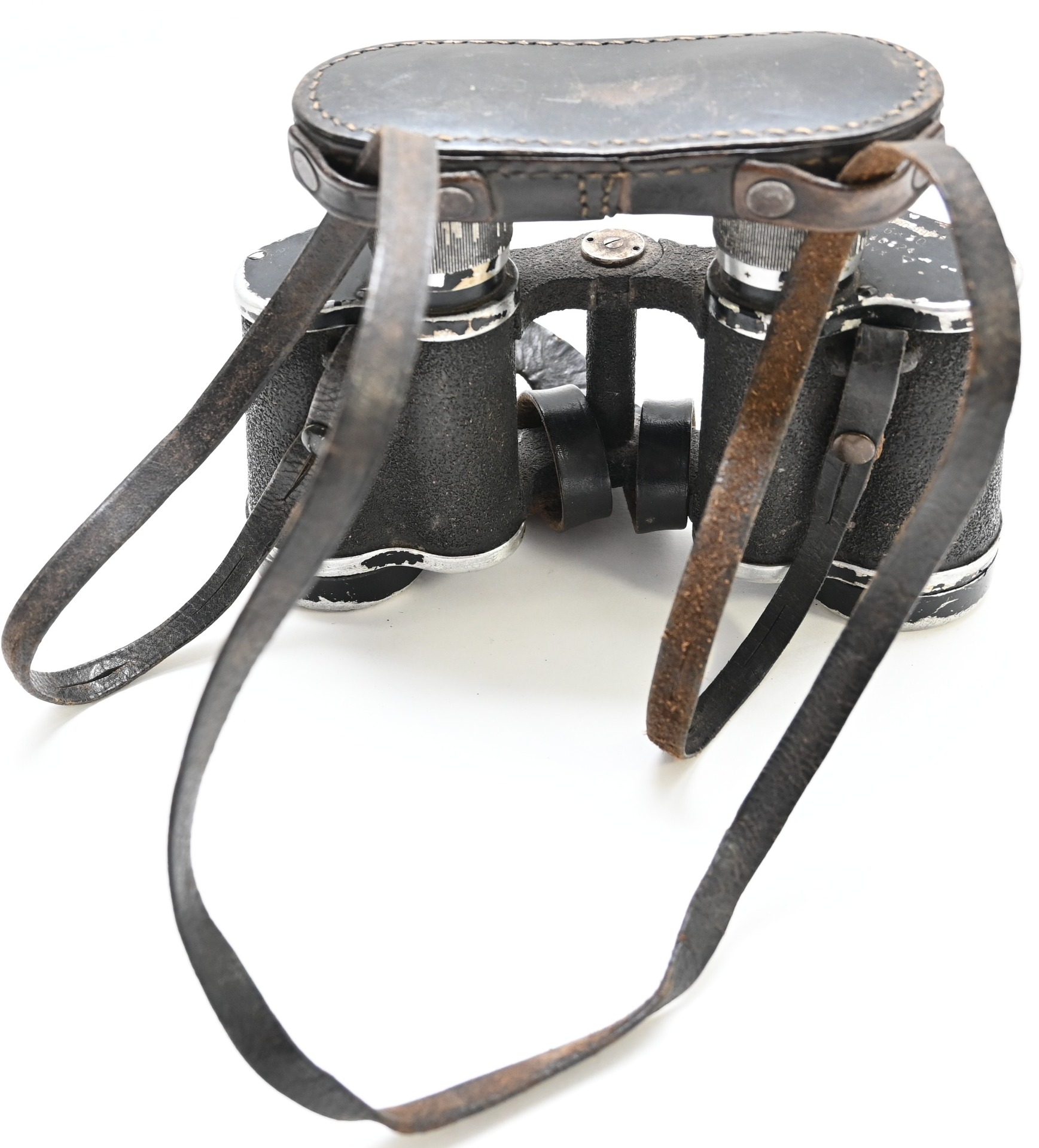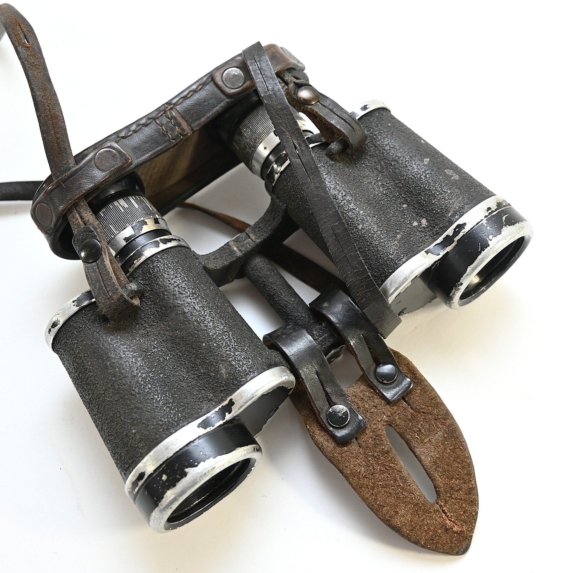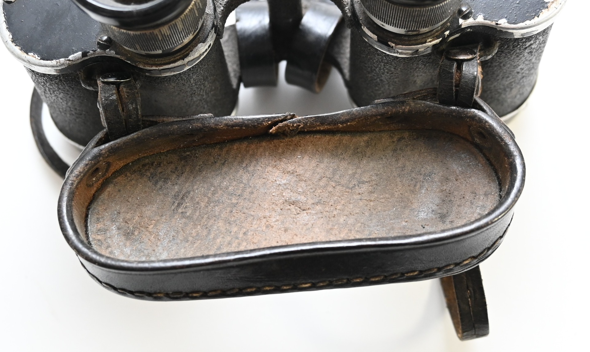 The set comes with it's black leather carrying strap, leather lens cover (which is dated 1939, WaA marked and has a vague Carl Zeiss makers logo) and leather button flap or 'tragelasche'.