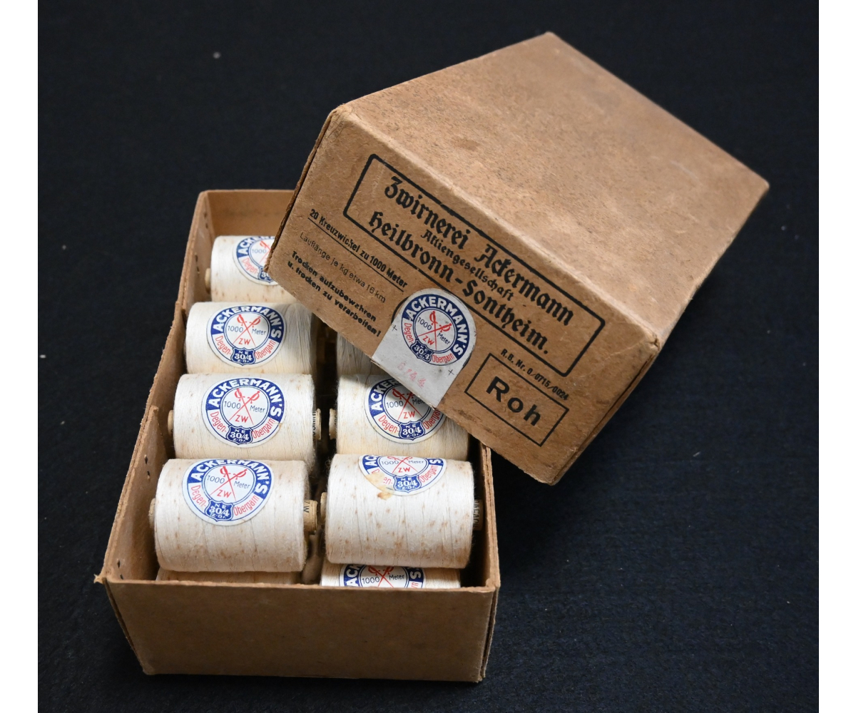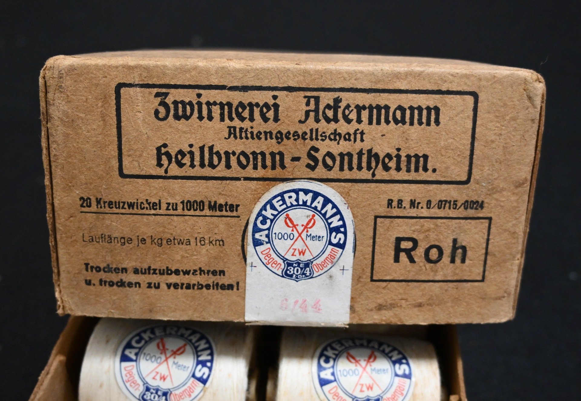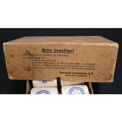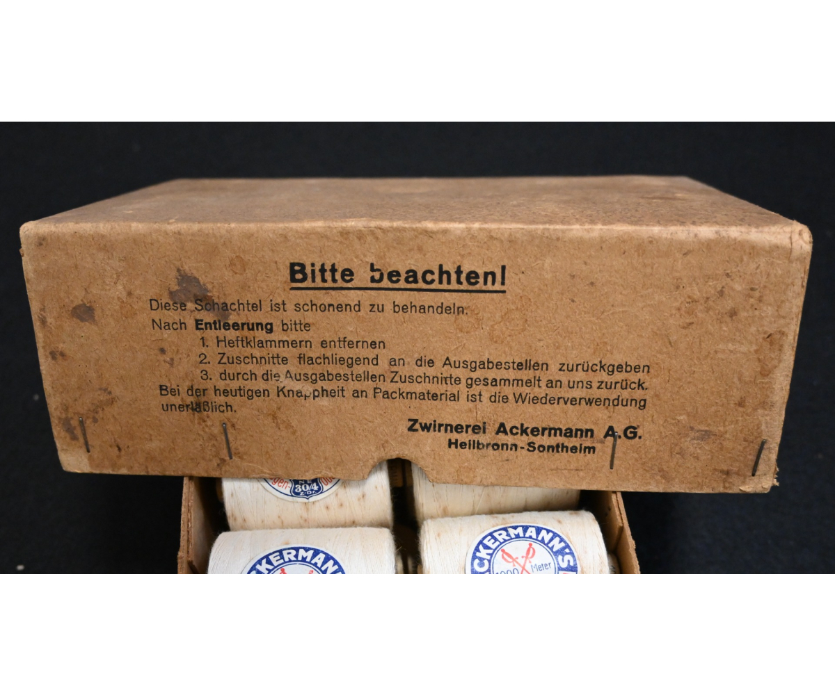 Straight from the original ('06/1944' dated and R.B.Nr. marked) box. Issued by the famous brand 'Zwirnerei Ackermann Aktiengesellschaft' from 'Heilbronn-Sontheim'.