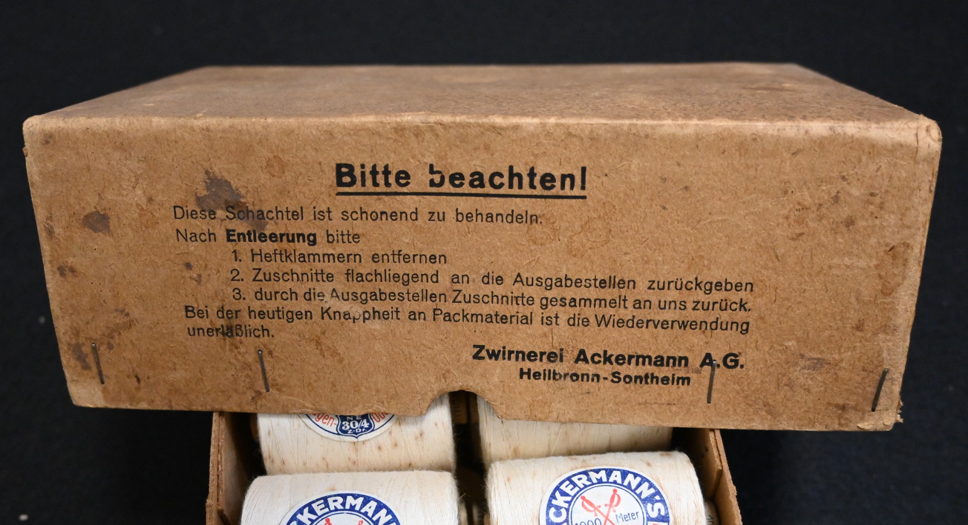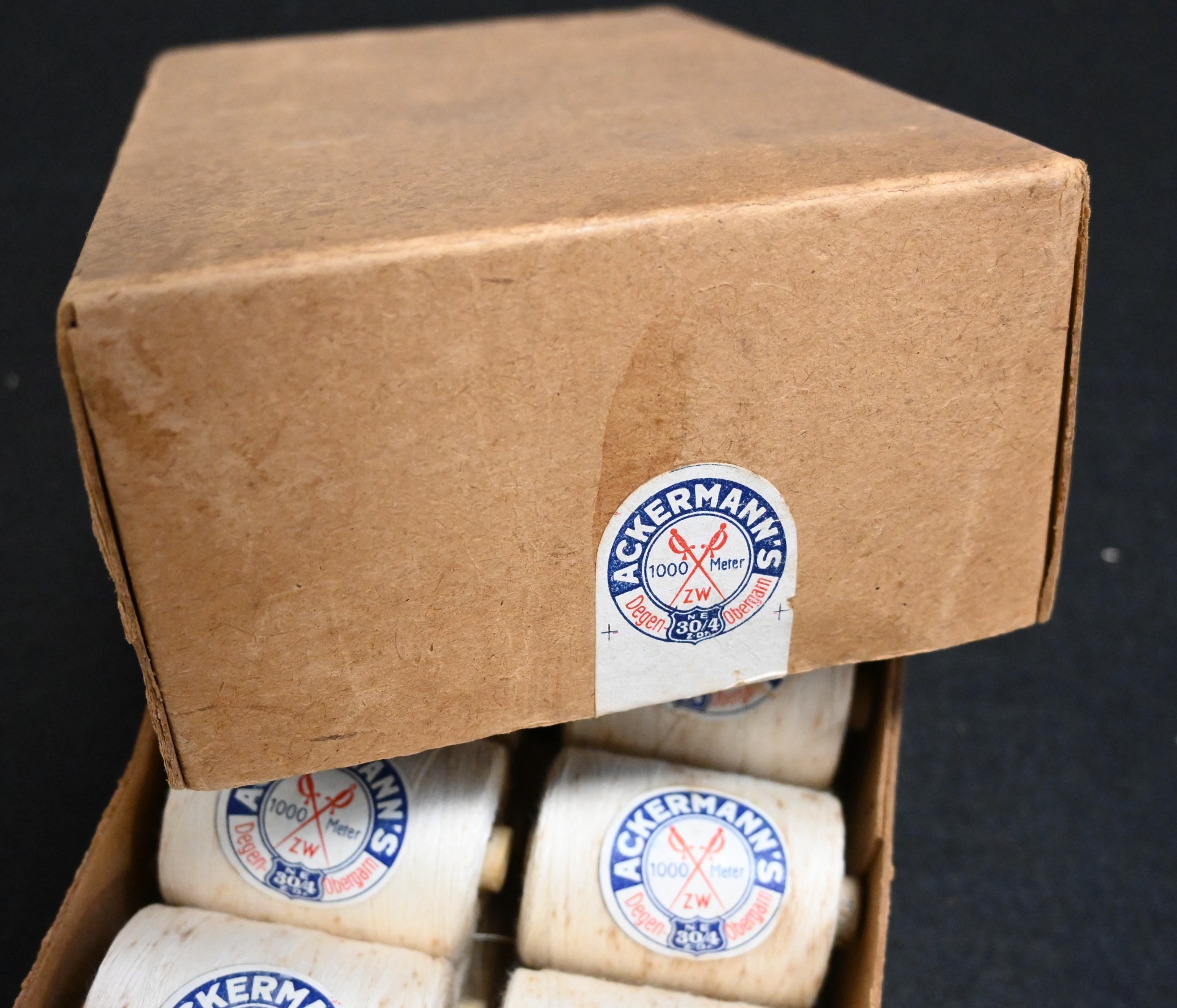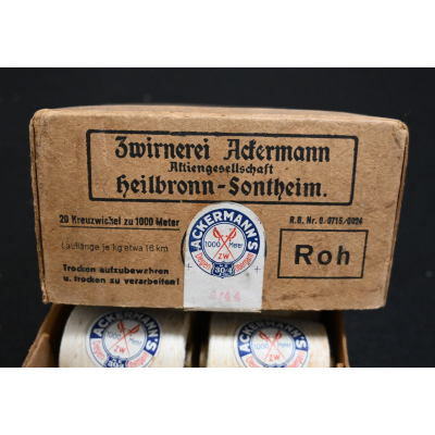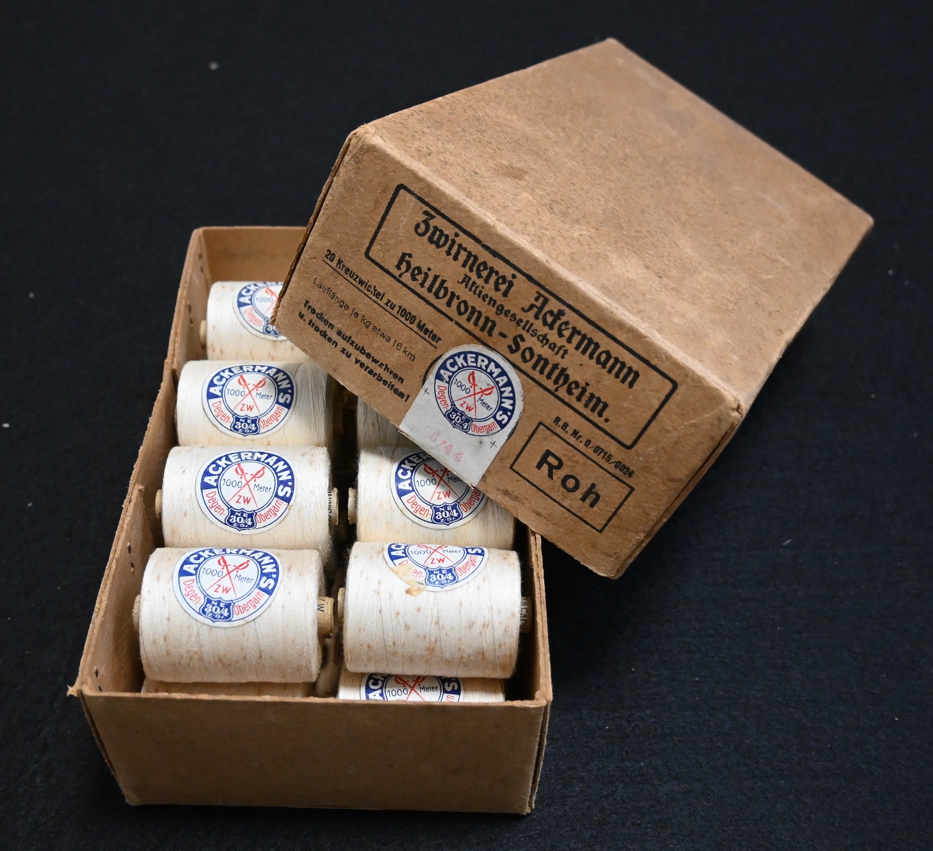 Straight from the original ('06/1944' dated and R.B.Nr. marked) box. Issued by the famous brand 'Zwirnerei Ackermann Aktiengesellschaft' from 'Heilbronn-Sontheim'.