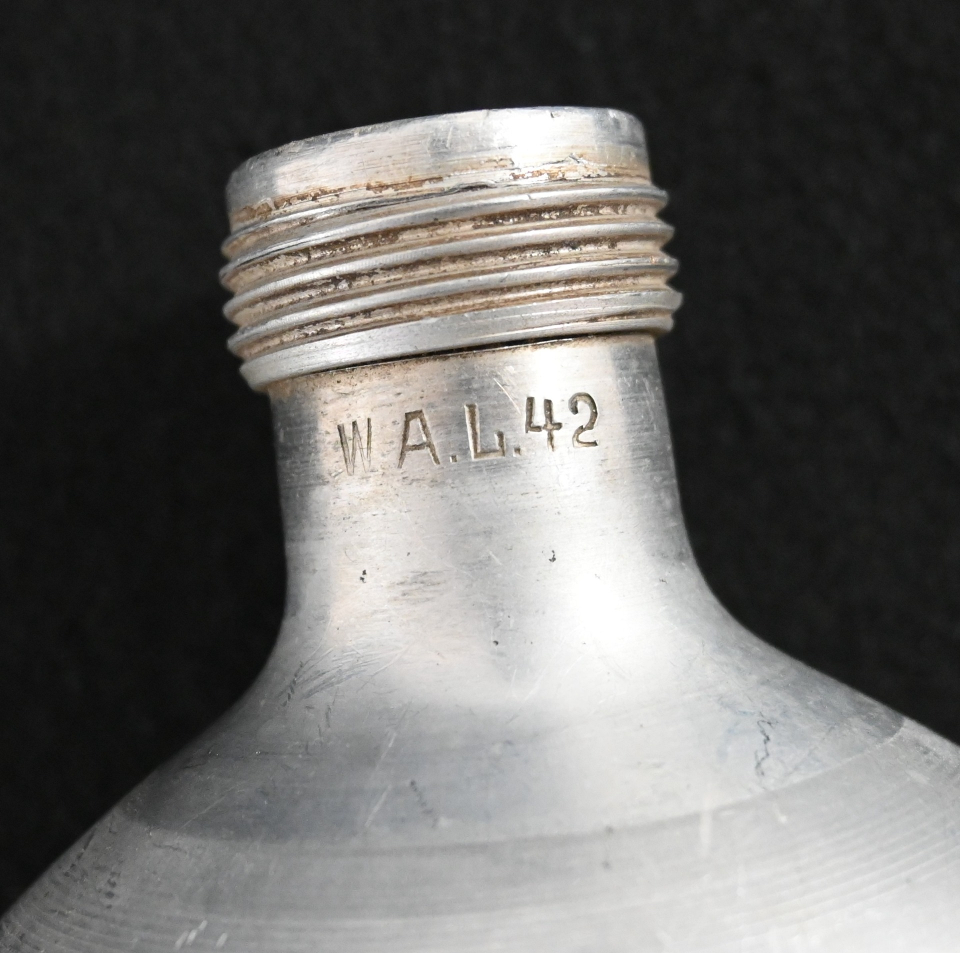 The bottle shows overall normal signs of wear. Nicely marked 'W.A.L.42' which means it was produced by Westfalische Aluminium Industrie, Junger & Co from Lüdenscheid.