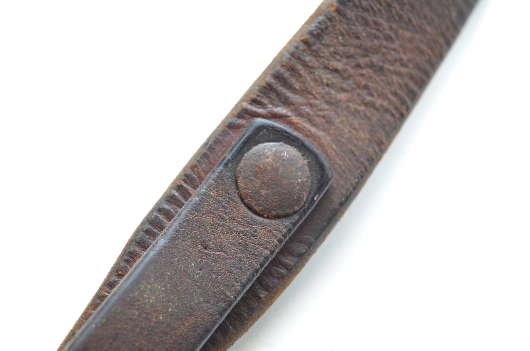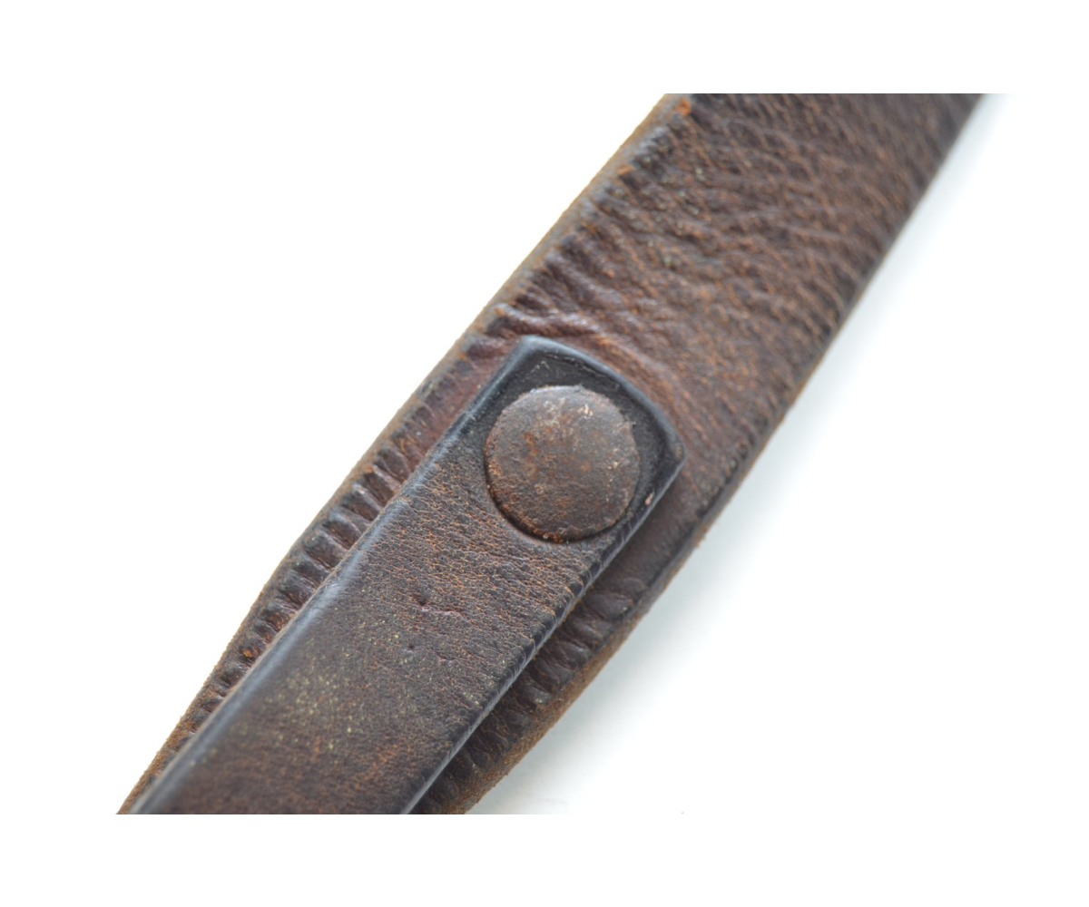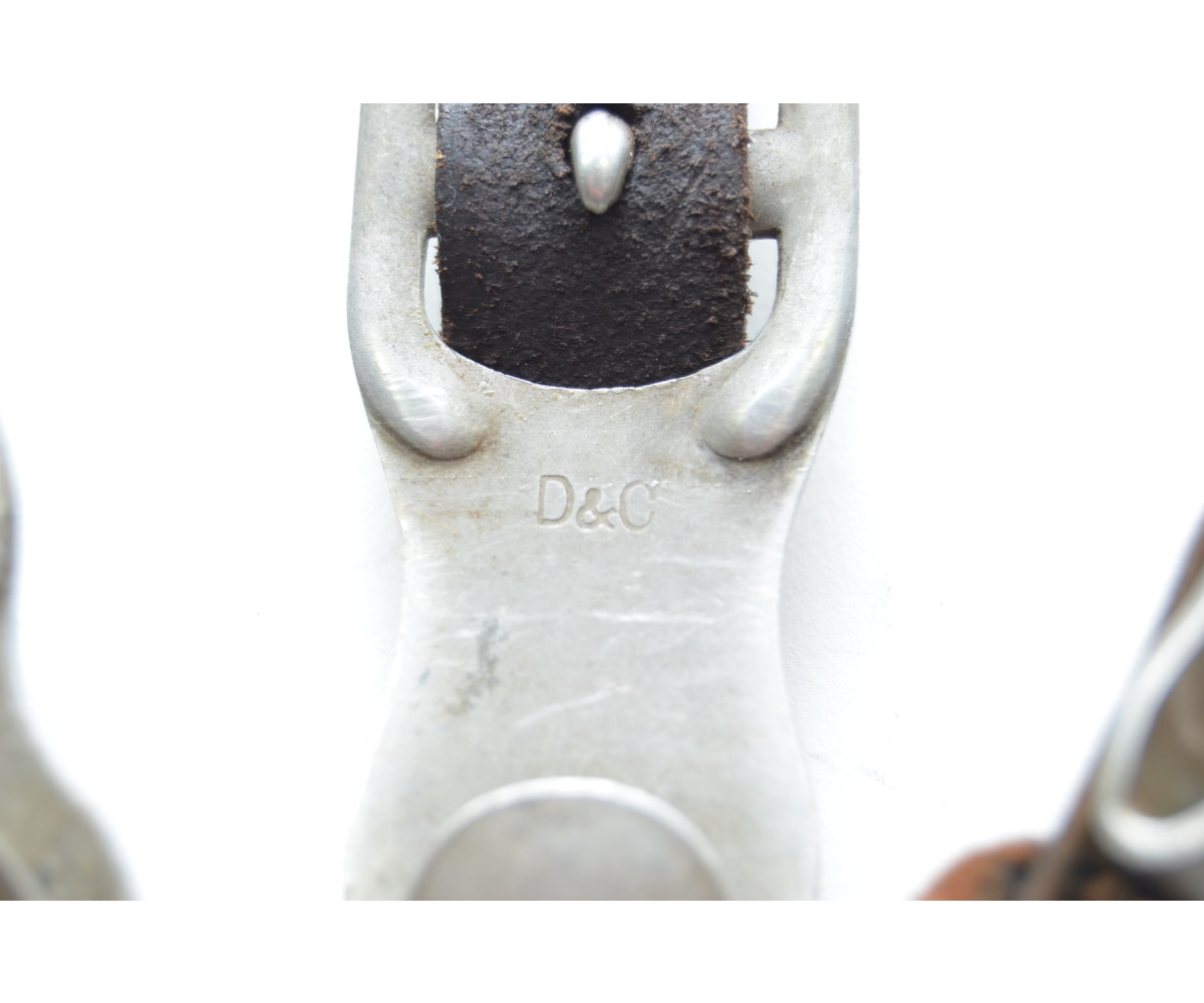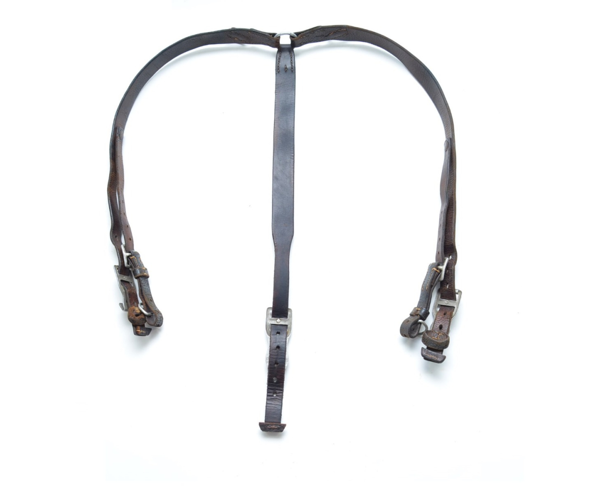 The straps shows overall normal signs of wear. The leather is supple, all parts are present and there are no damages. There ar no visible markings on the leather to be found. The aluminium hooks are marked with ''D&C''. Nice and early produced y-straps that are not easy to find.