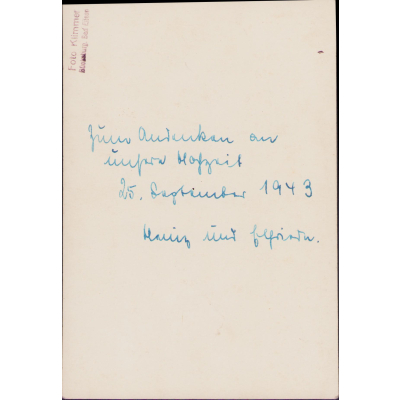 On the back there is a handwritten message. It's dated 25 September 1943.