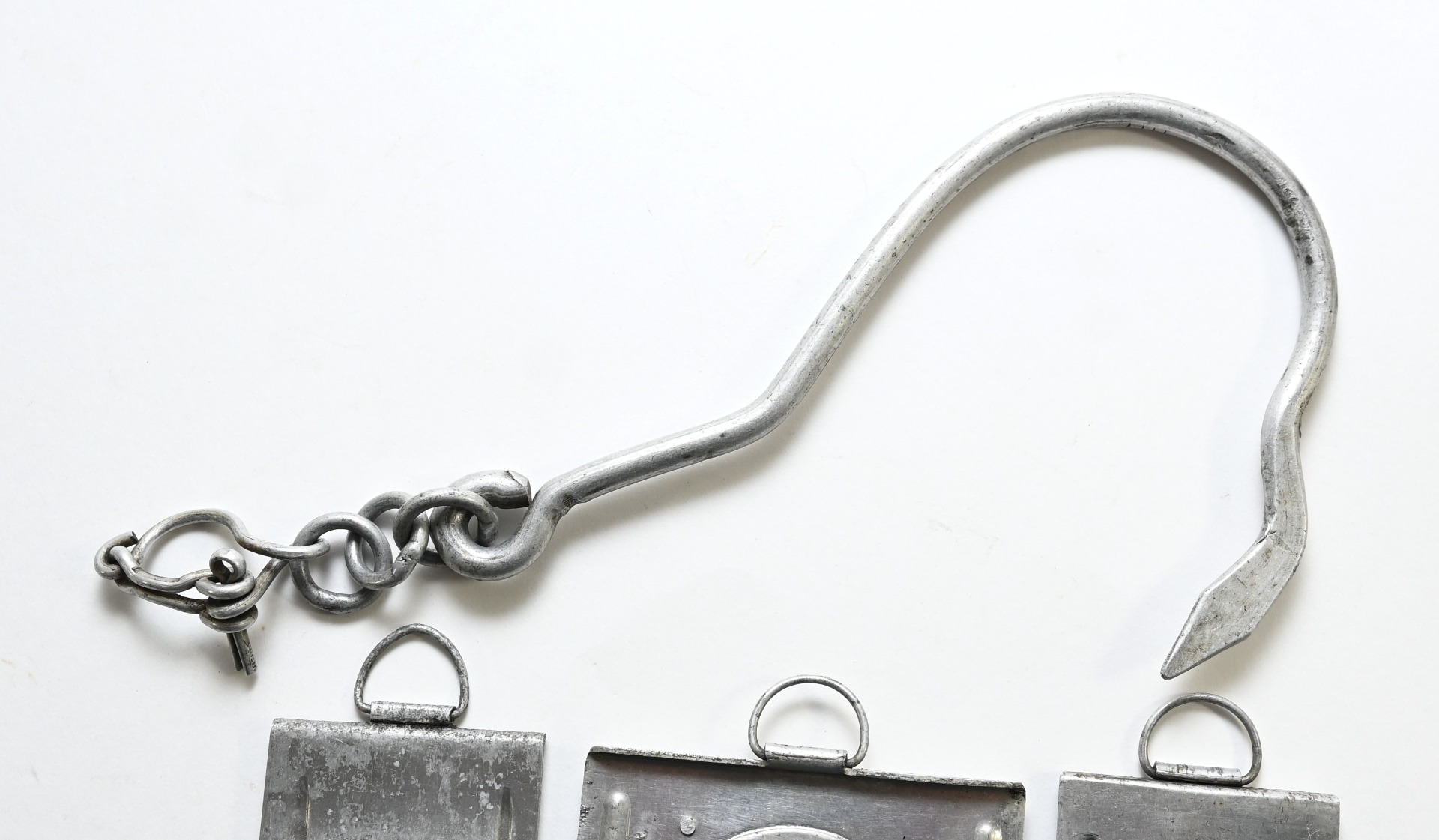 Very nice set of Wehrmacht bakelite lantern black out shades and hook in used, but good condition.