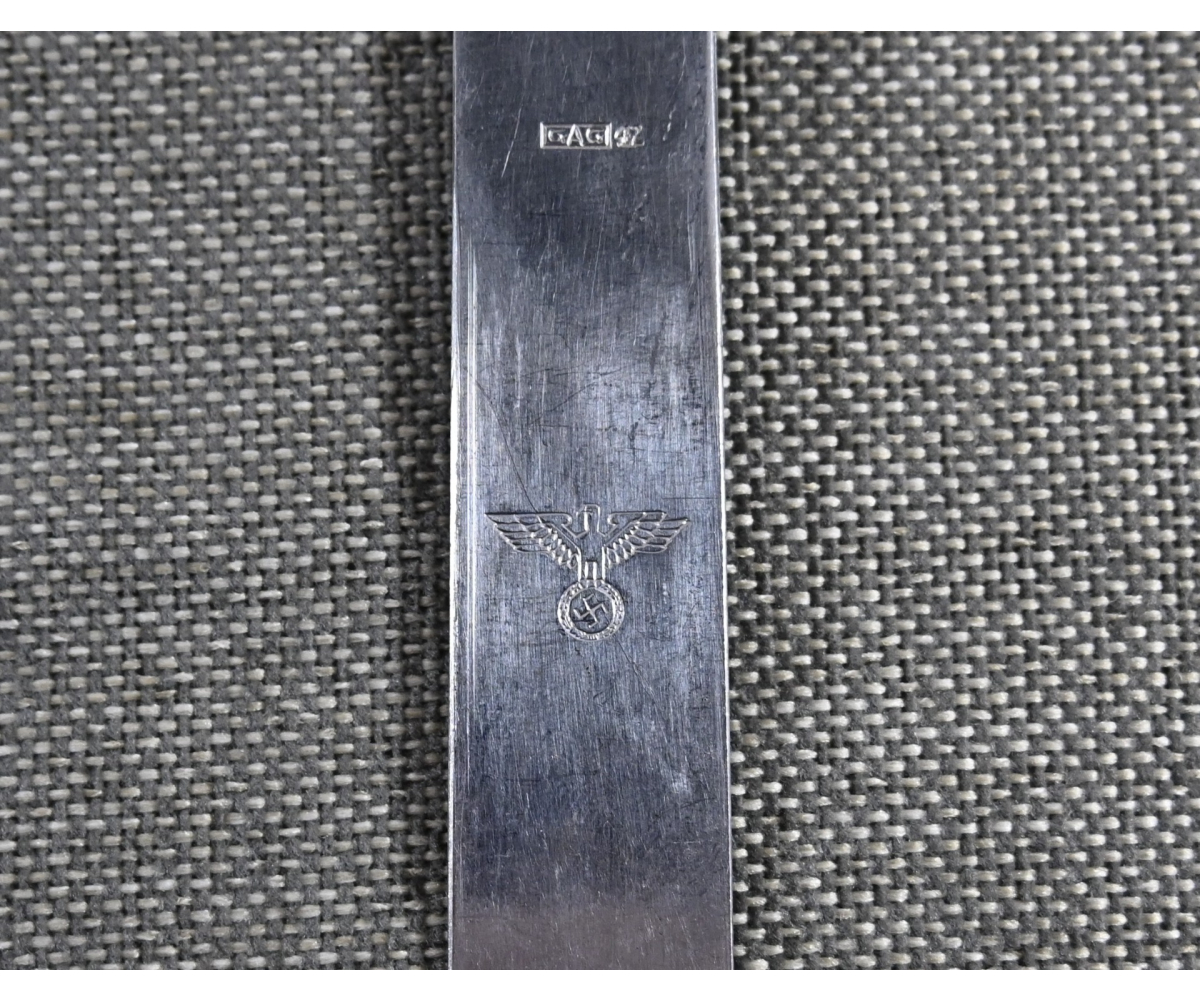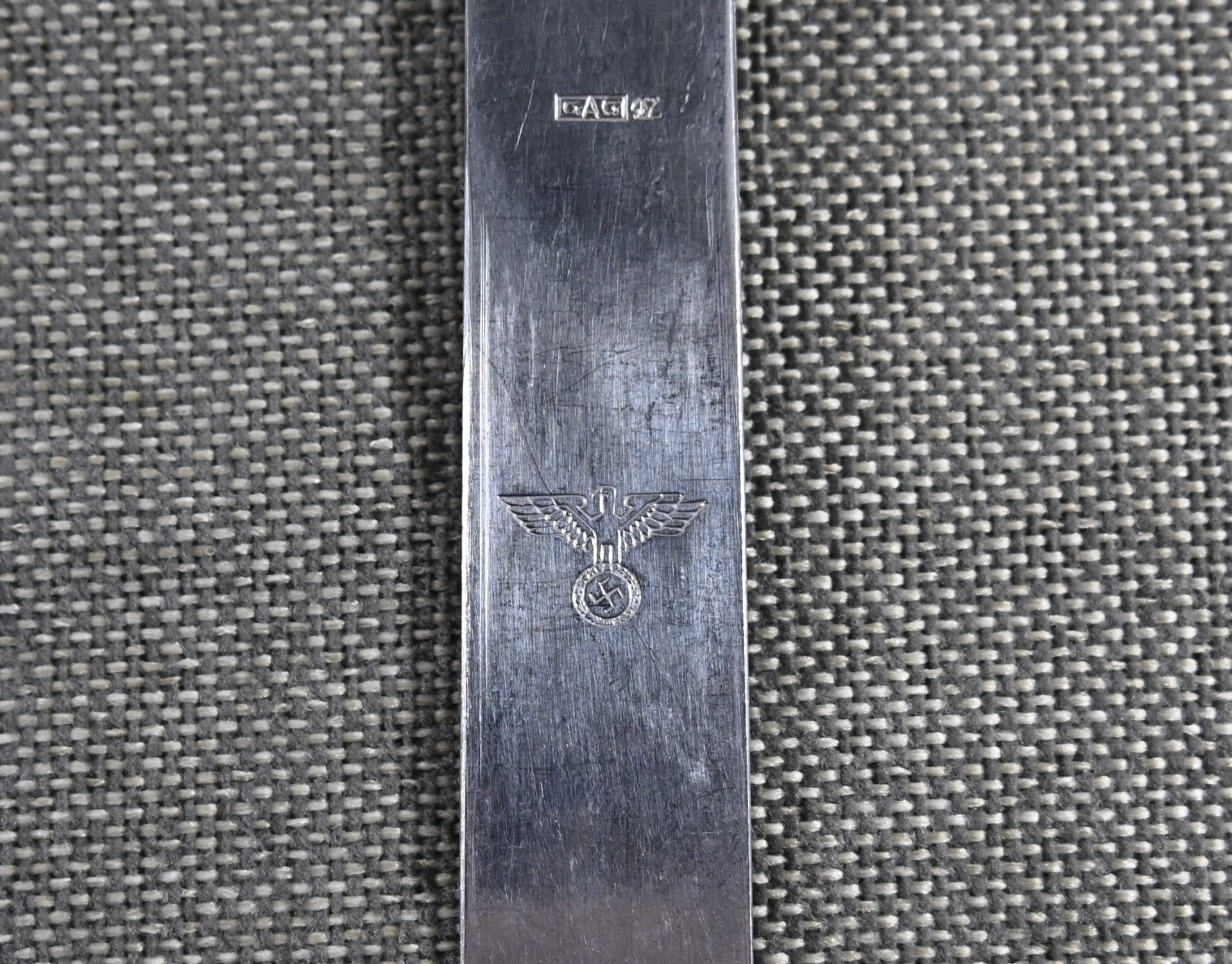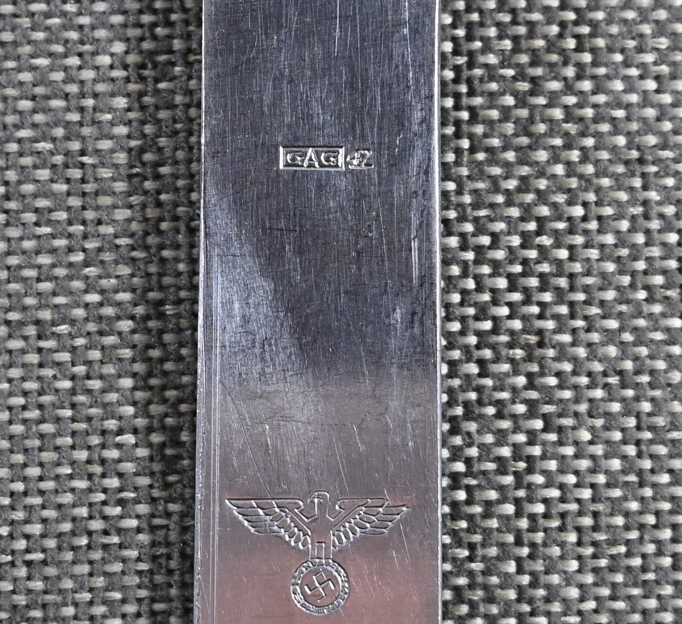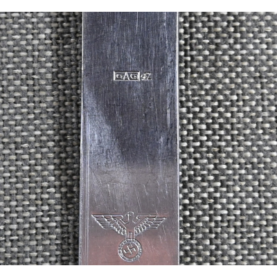 The fork shows overall minor signs of wear. Marked with the heer eagle, maker marked 'gAg' and dated '42' (1942).