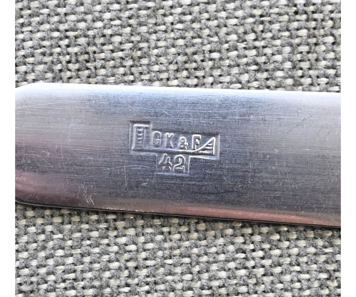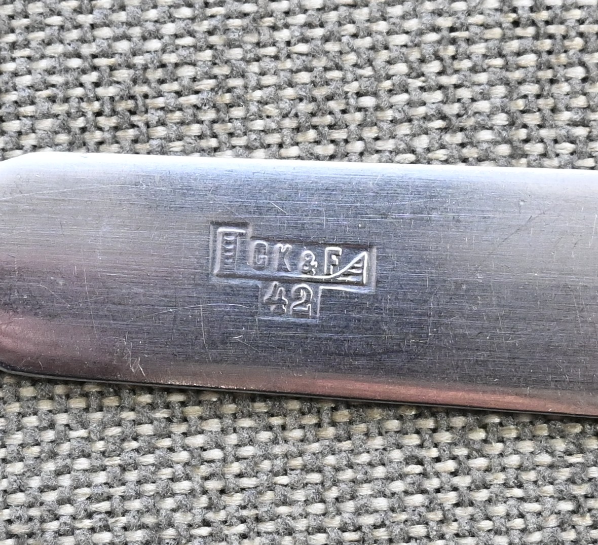 The spoon shows overall normal signs of wear. Marked with the heer eagle, maker marked 'G.K.&F.' and dated '42' (1942).