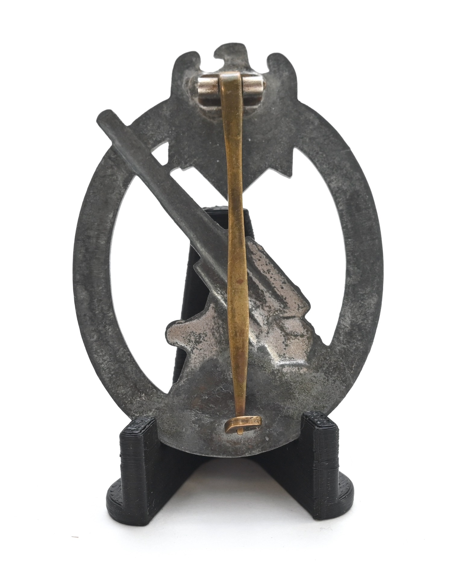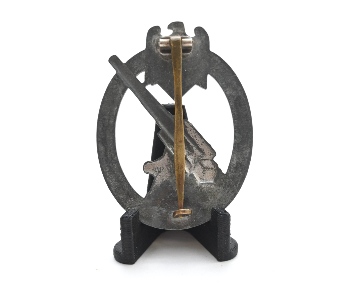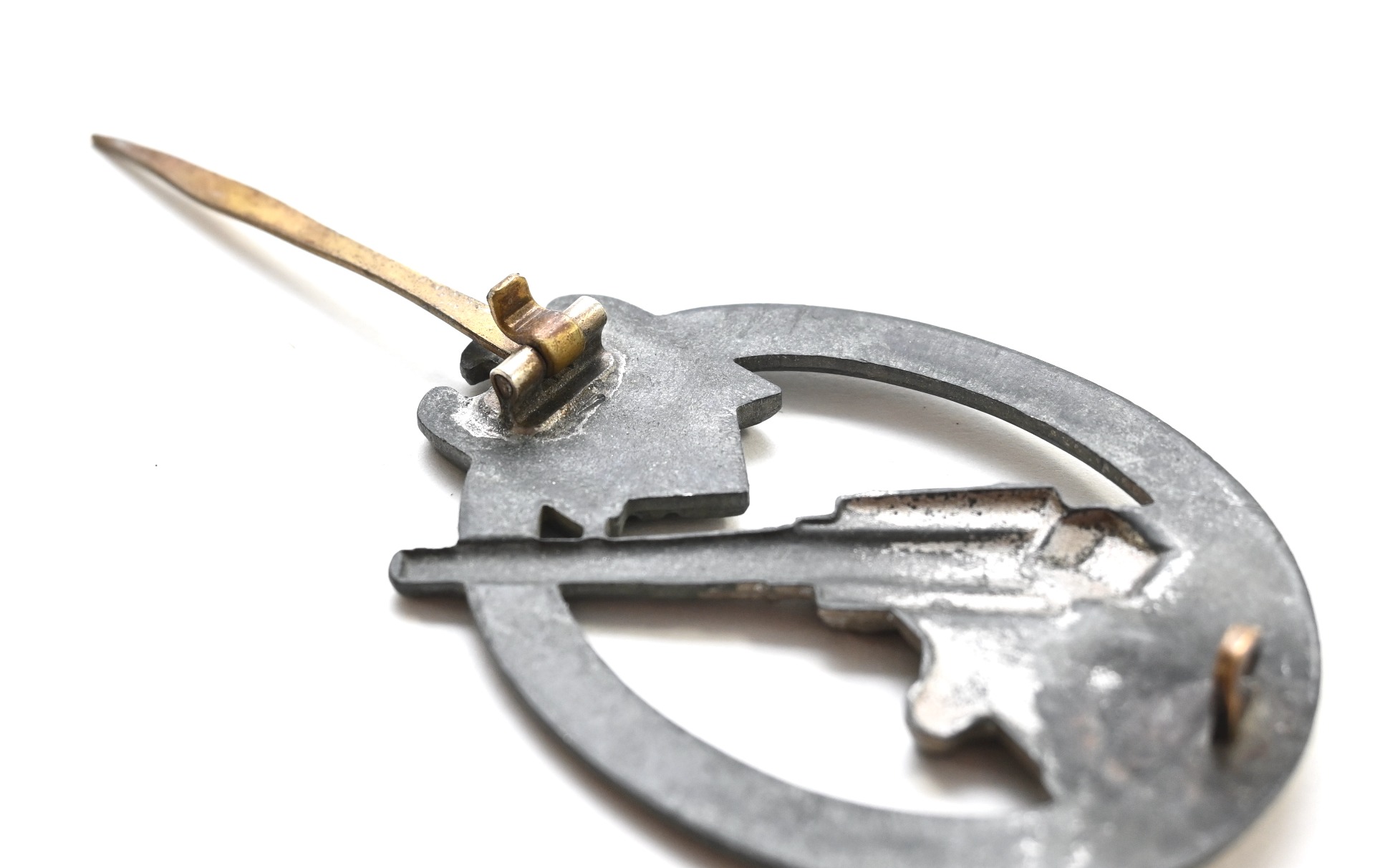 This zinc badge is in excellent condition and clear of damage. It's complete with working pin and catch. Not visible maker marked, but its closure design on the back is the typical for the maker 'Förster & Barth' from 'Pforzheim'.
