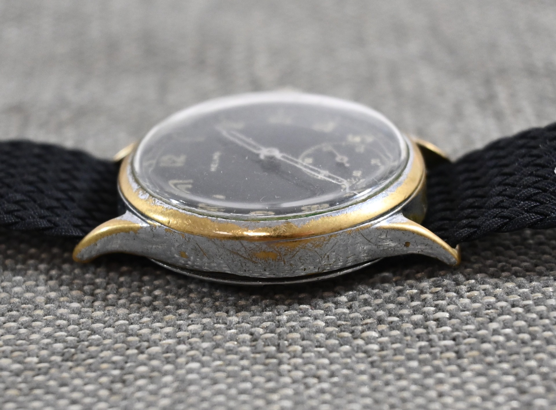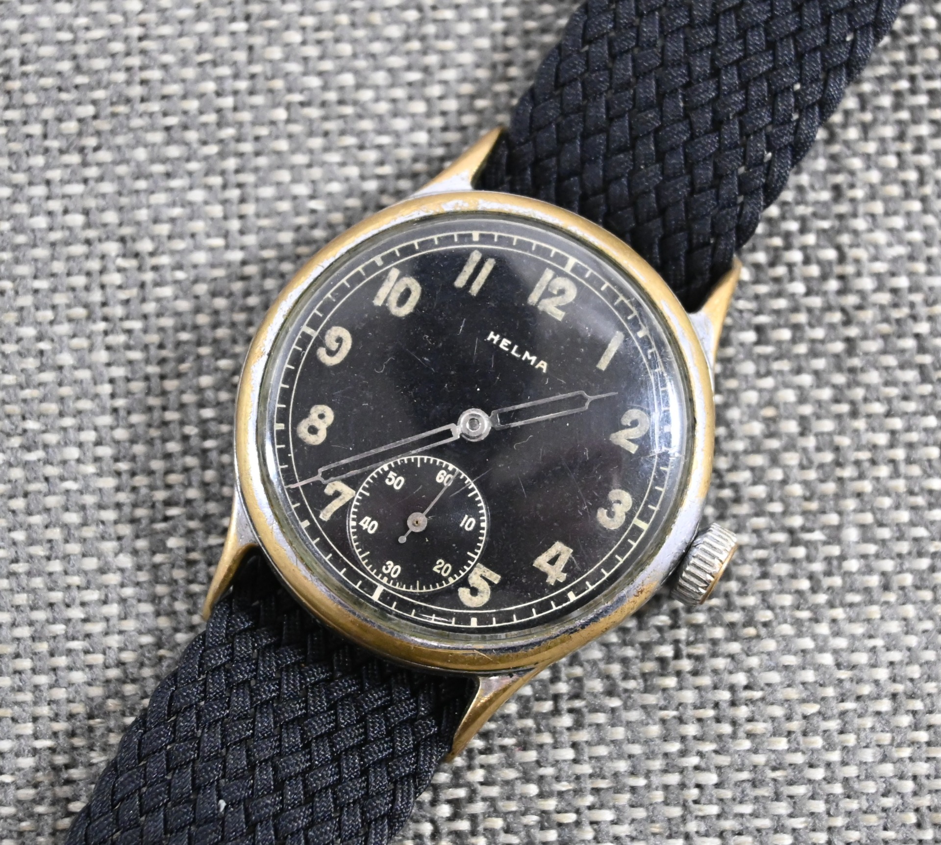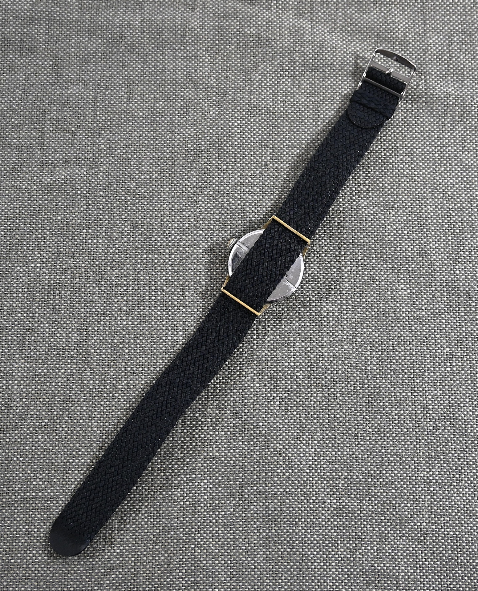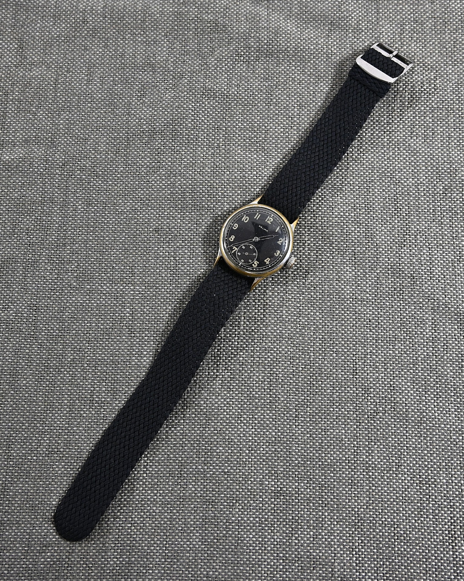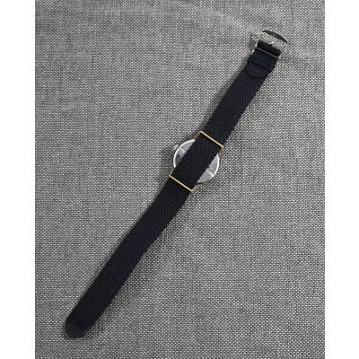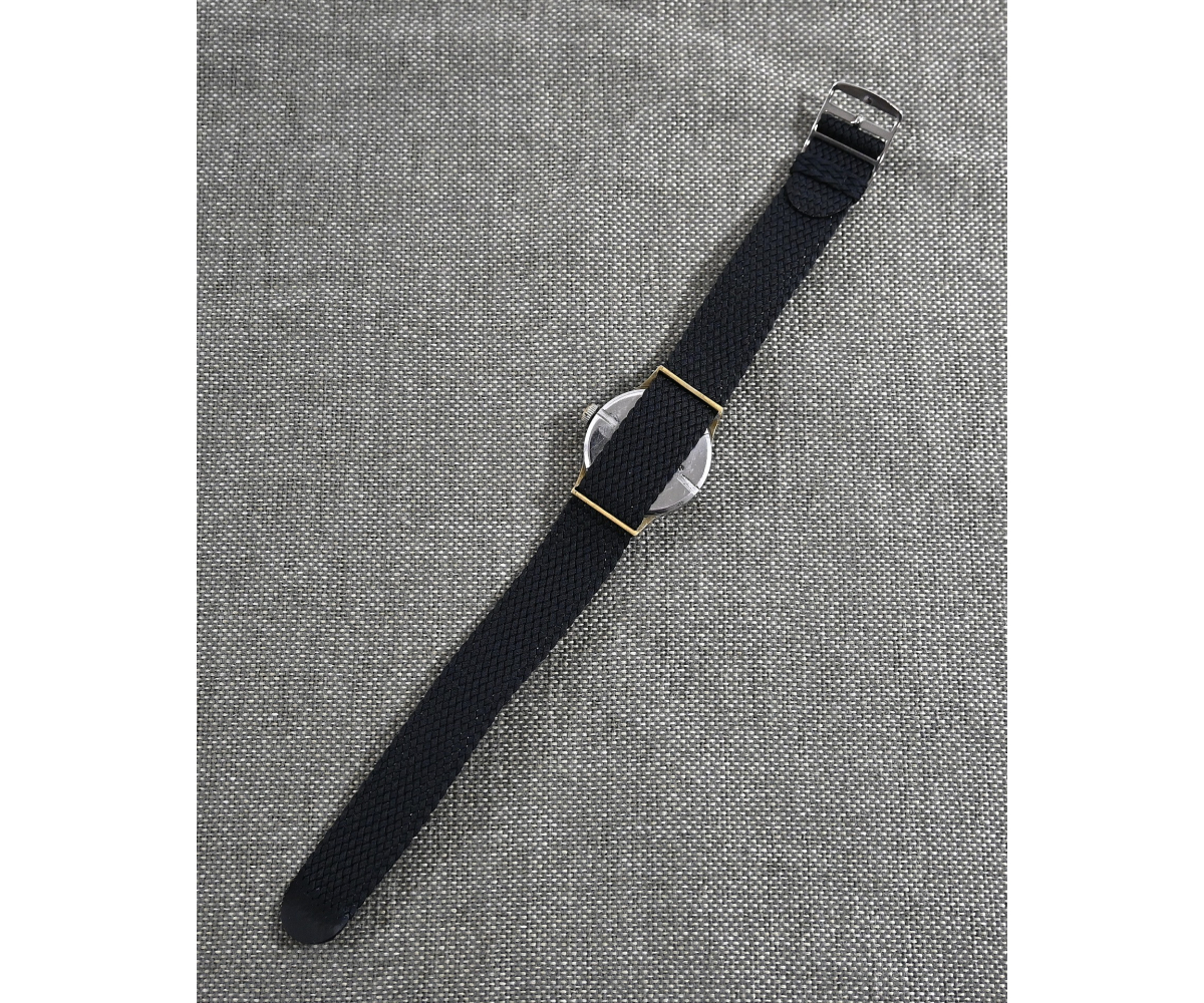 Comes with a replaced wristband, but these perlon ones where also worn during the war.