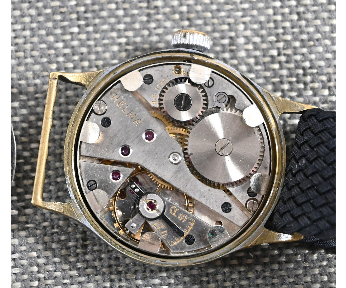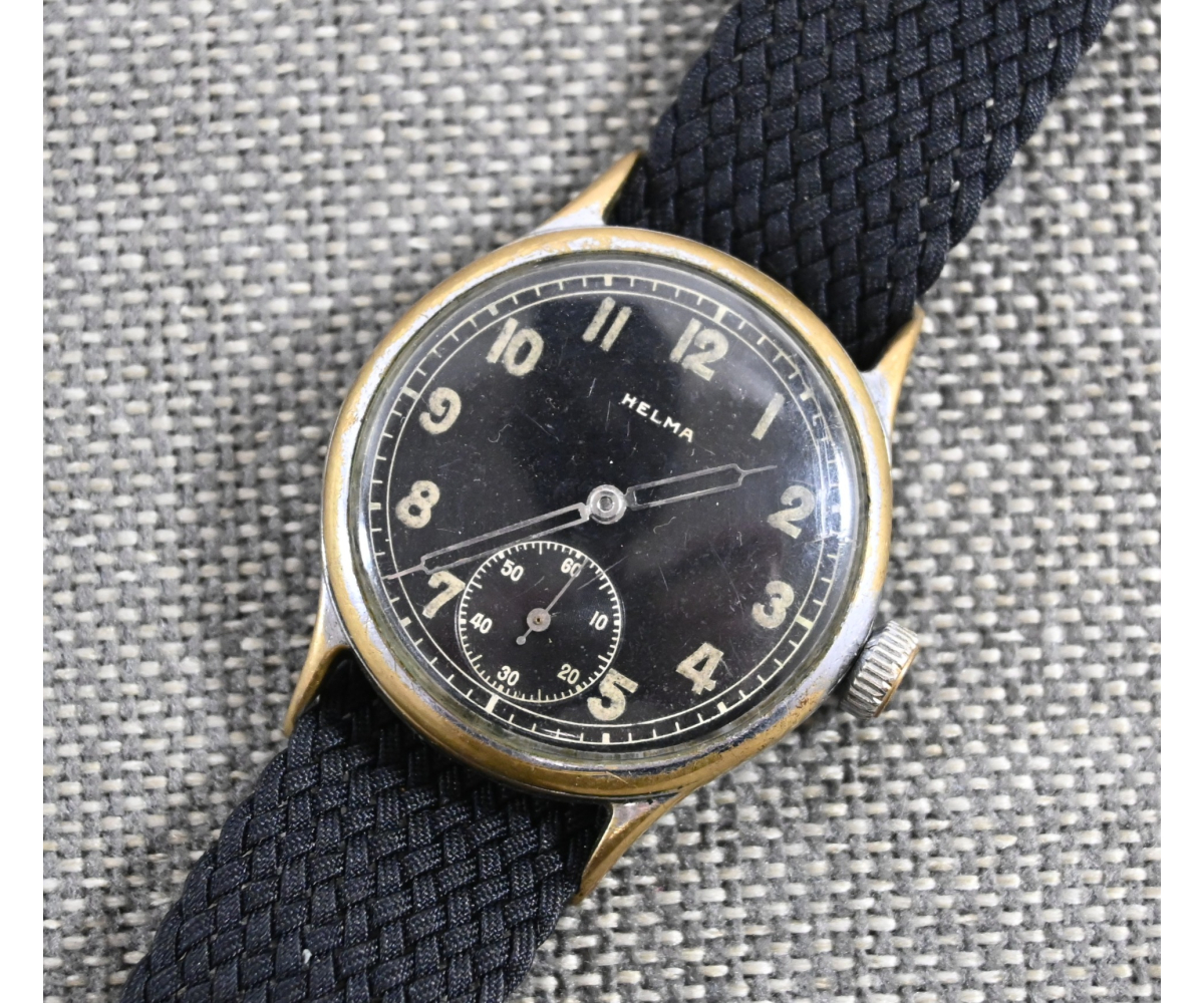It's marked on the back with 'D00933H', or 'Dienstuhr', serial code: '00933' Heeres. The movement is the original Helma issued movement.