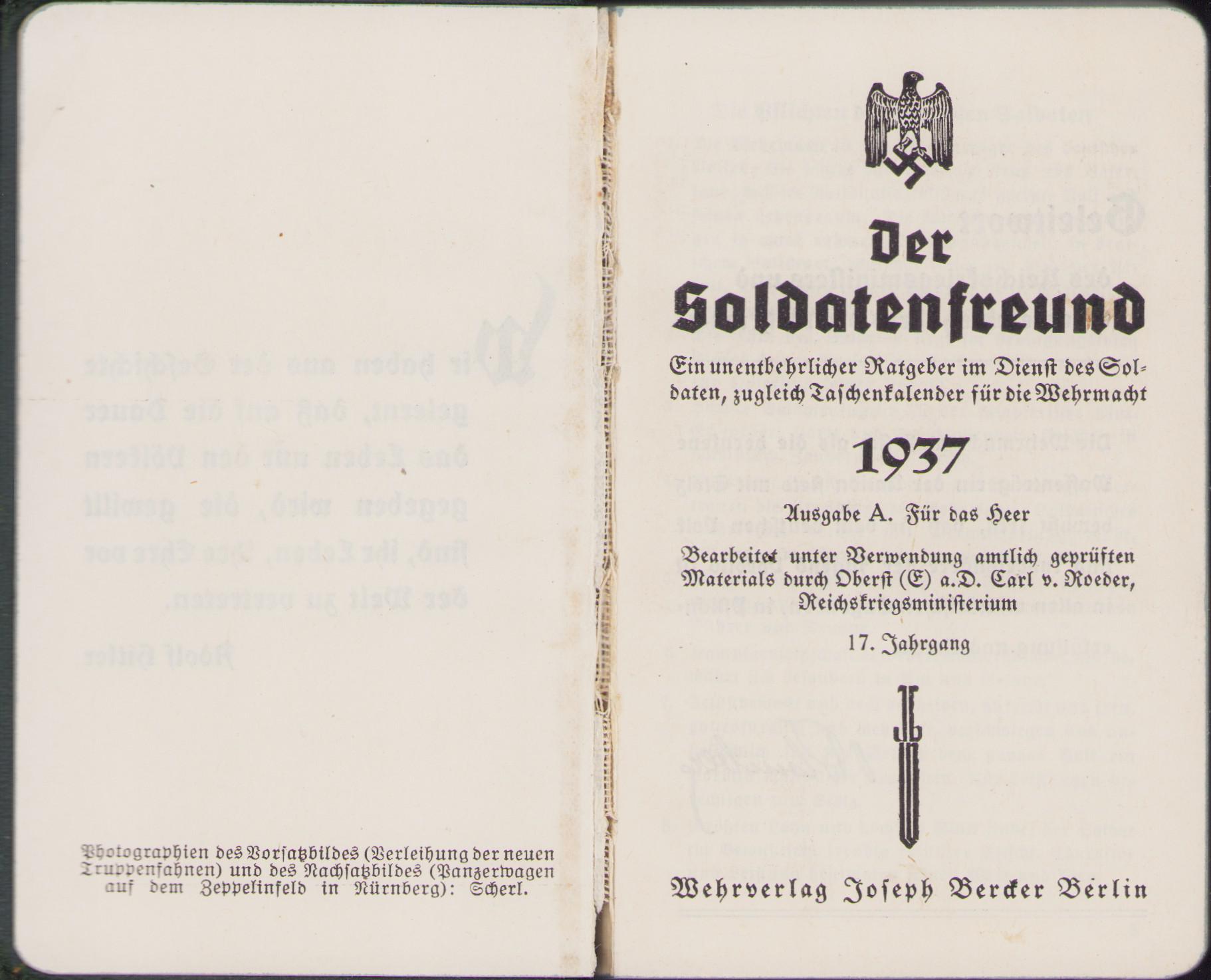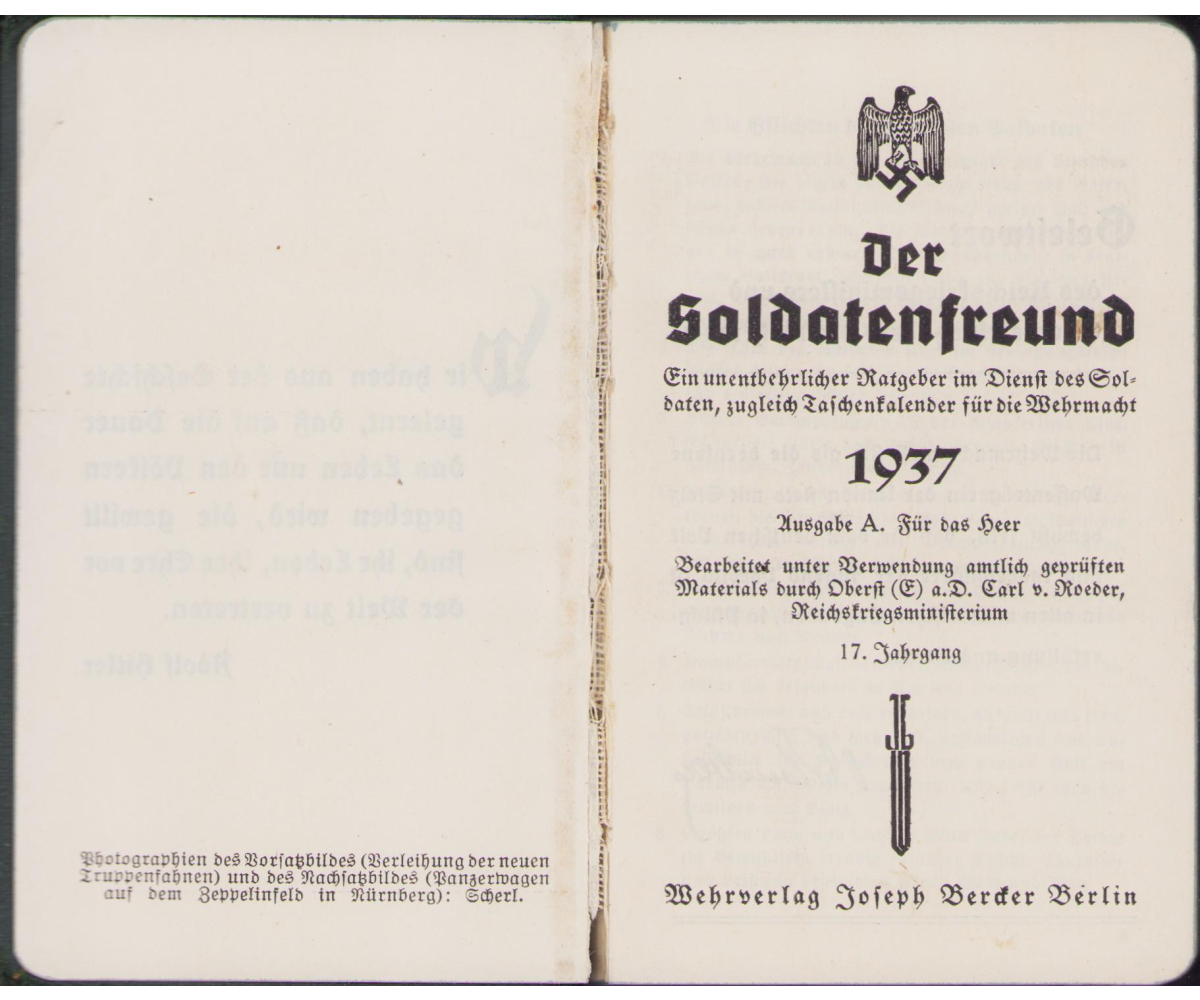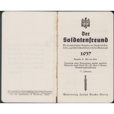 Very nice and hard to find Wehrmacht Heer pocket size kalender of the year 1937.